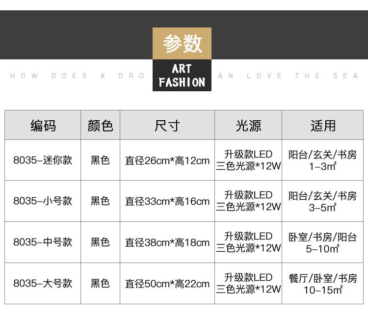 26cm black Golden Edge-12 watt led light source, 33cm black Golden Edge-18 watt led light source, 38cm black G...