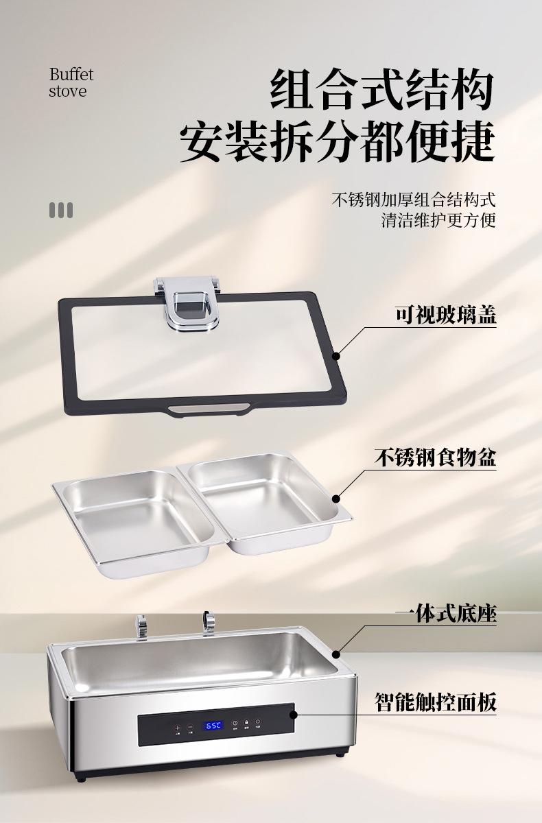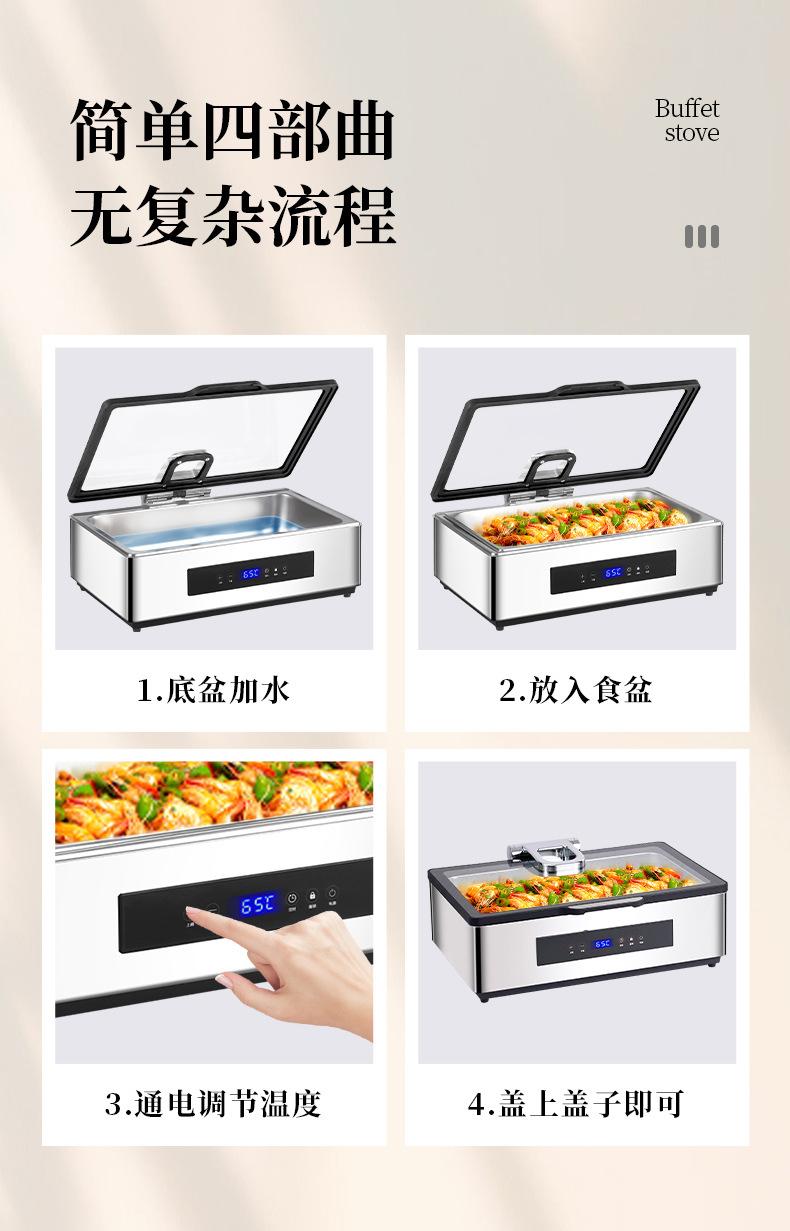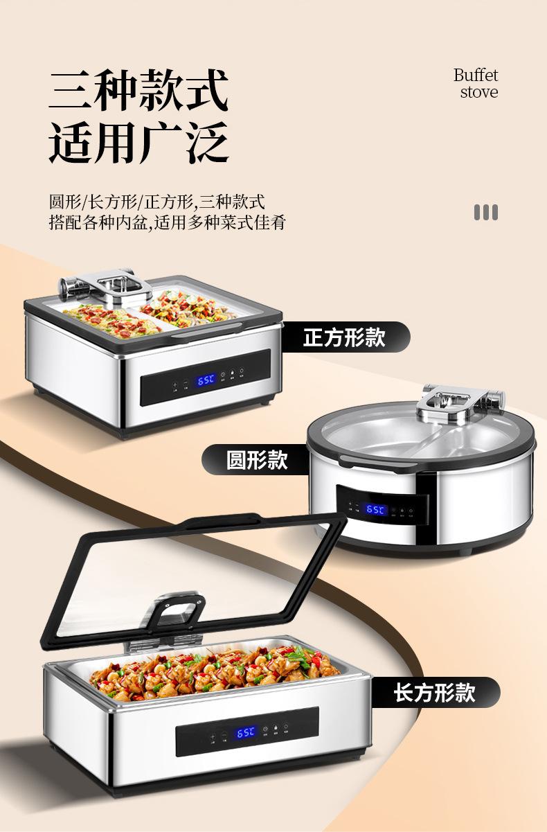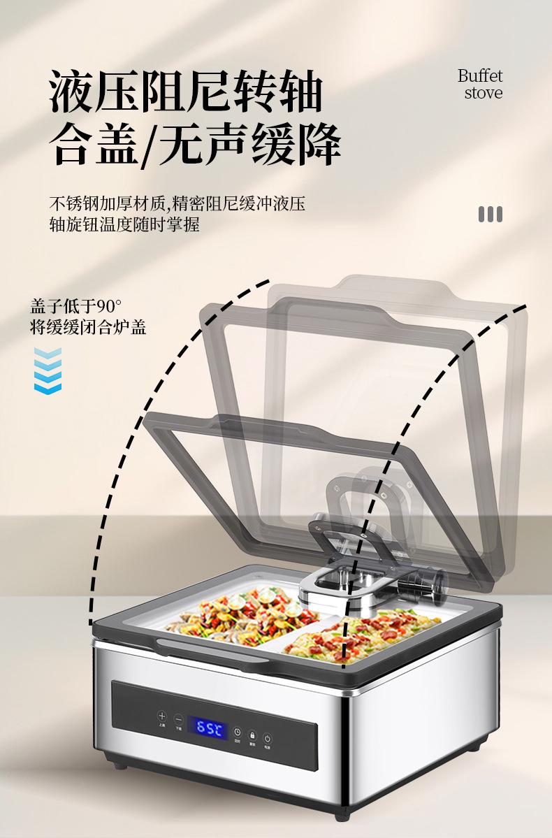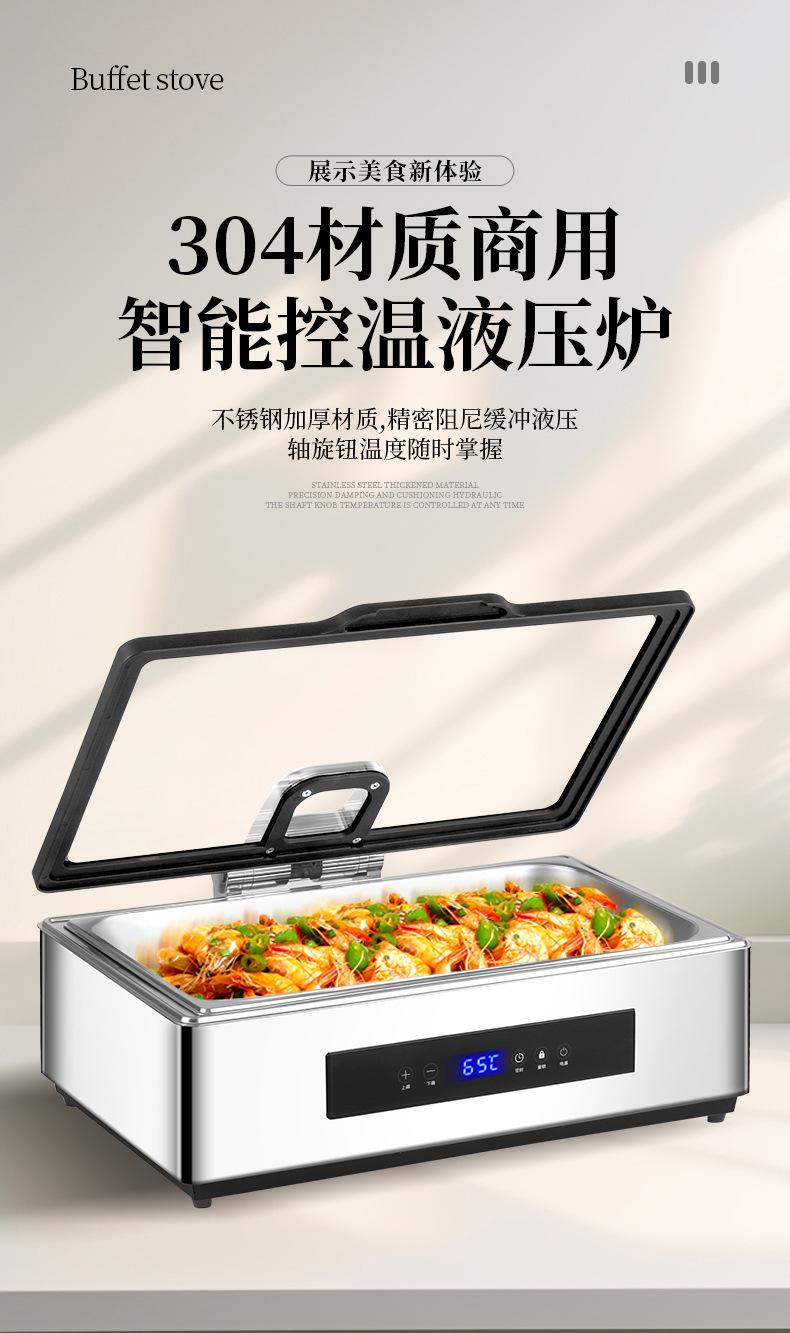 Yuancai Acero Inoxidable 304 Estufa Hidráulica para Buffet Estufa Visual Buffy Estufa Eléctrica de Aislamiento Calefactor Vajilla para Mesa de Hotel Cadena