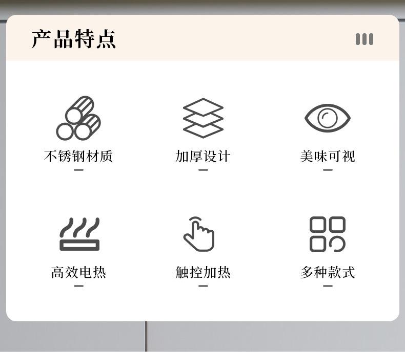 Luxury 304 round single compartment 6 liters/touch electric heating model, Luxury 304 round divided grid 6 lit...