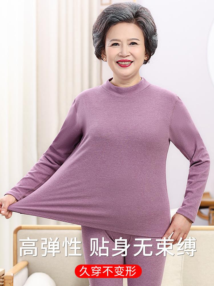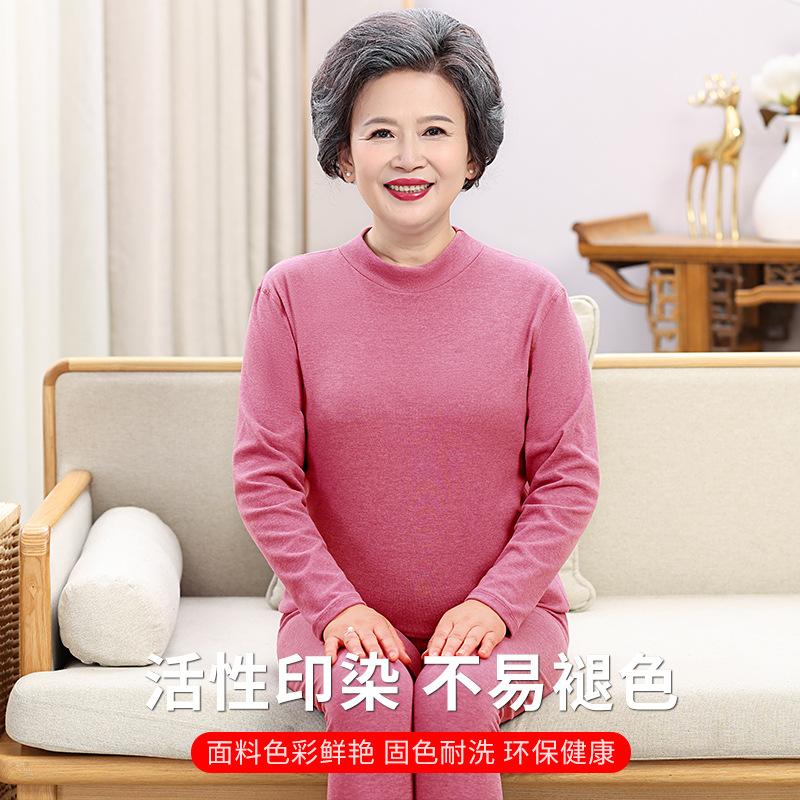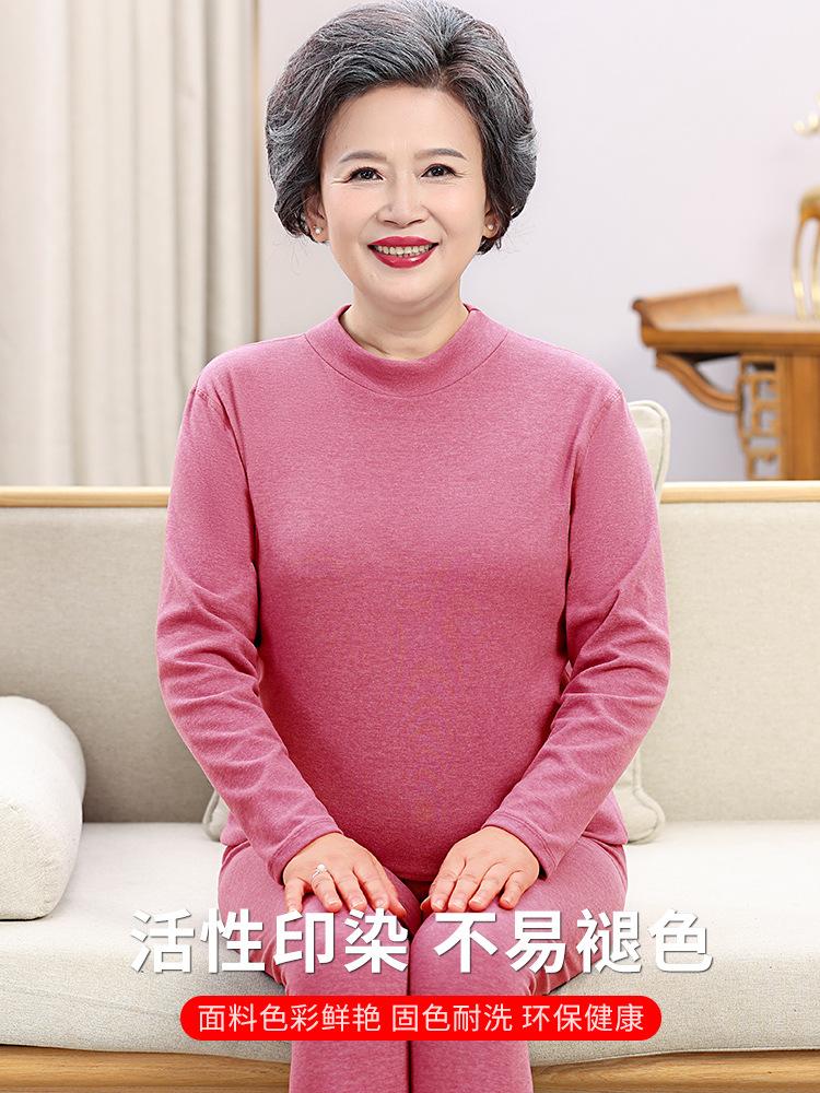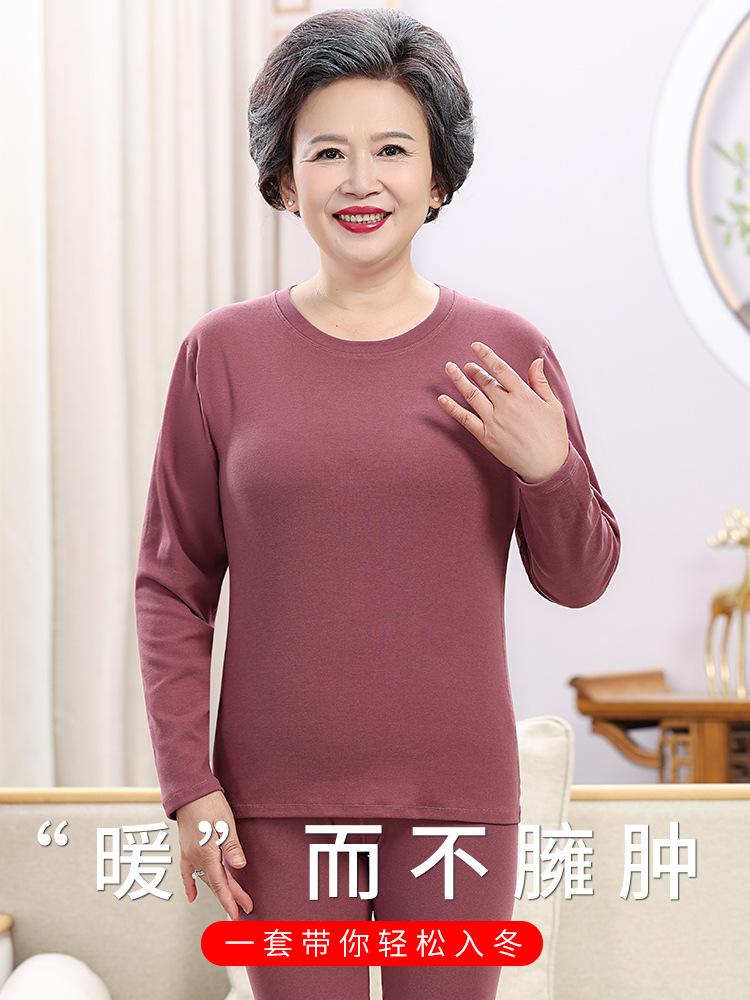 Traje cálido de cuello redondo para mamá, ropa de otoño para personas de mediana edad y mayores, pantalones largos, ropa interior, suéter de algodón
