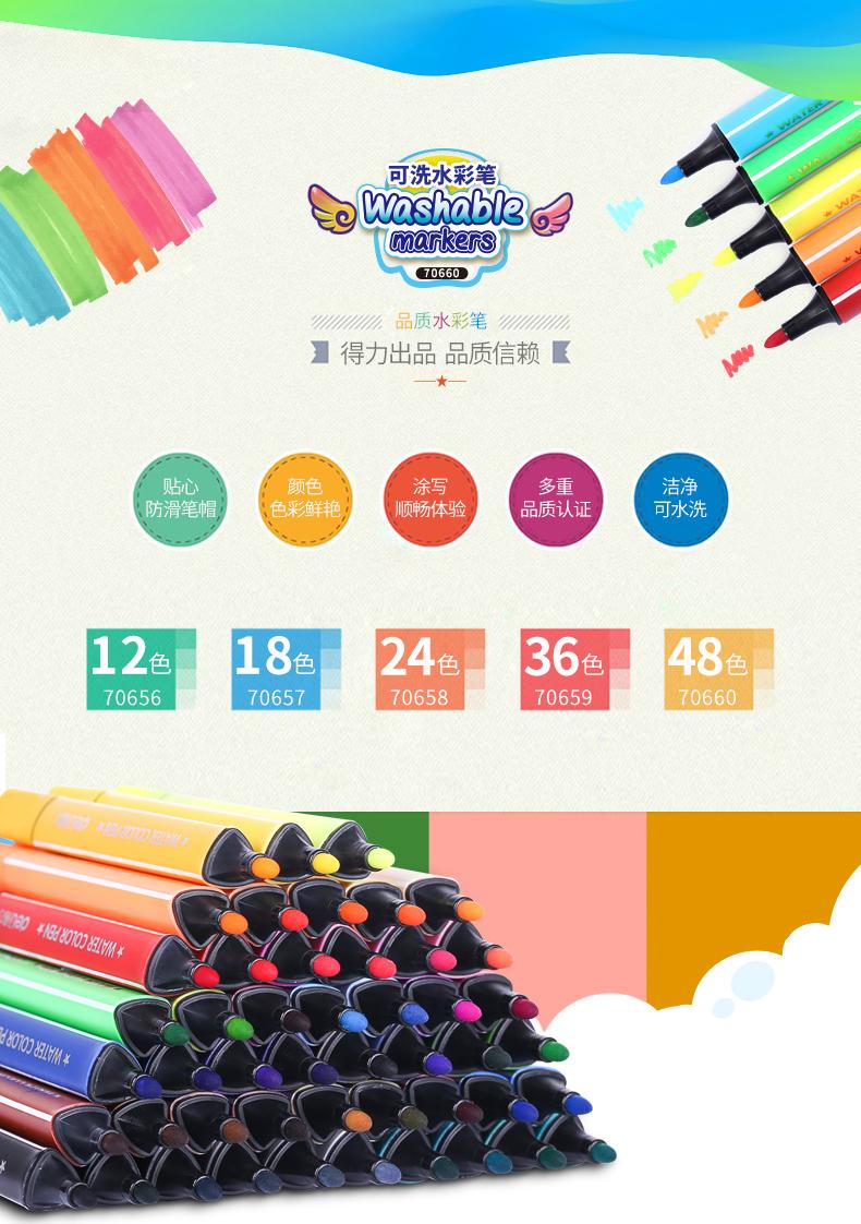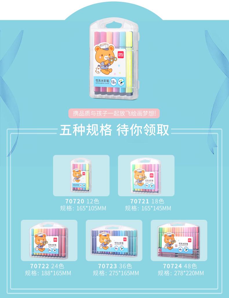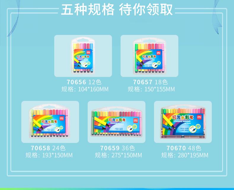 Bolígrafo de acuarela lavable para niños Deli Triangle Rod, de 12 a 48 colores, para pintar en jardín de infantes, para pintar a mano