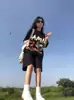 Conjunto deportivo holgado de estilo coreano adelgazante, famoso en Internet, para mujer, de verano, para estudiantes, de manga corta, conjunto de dos piezas europeo y americano.