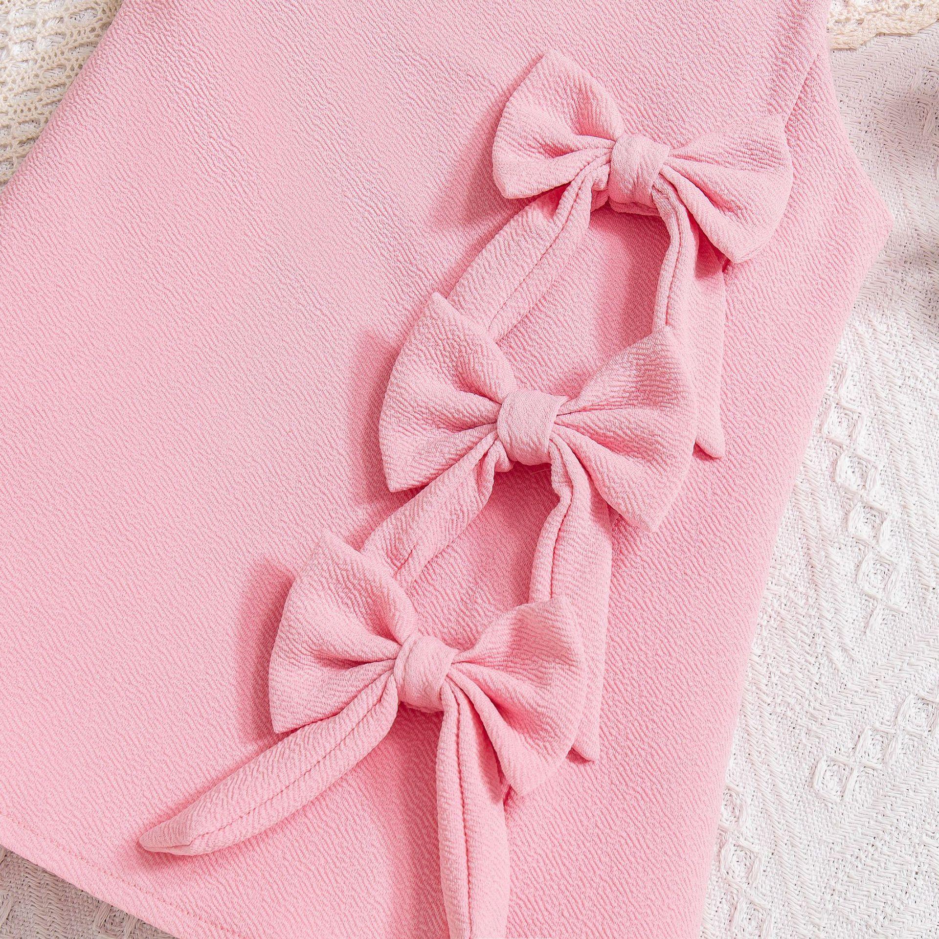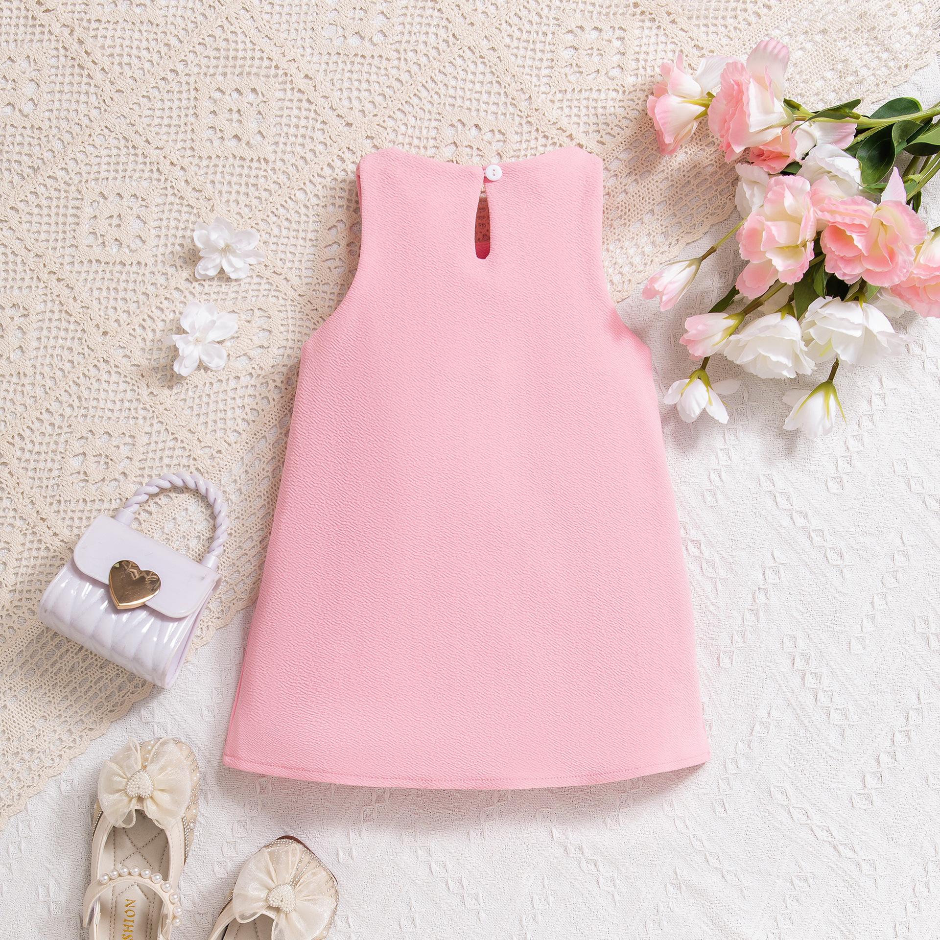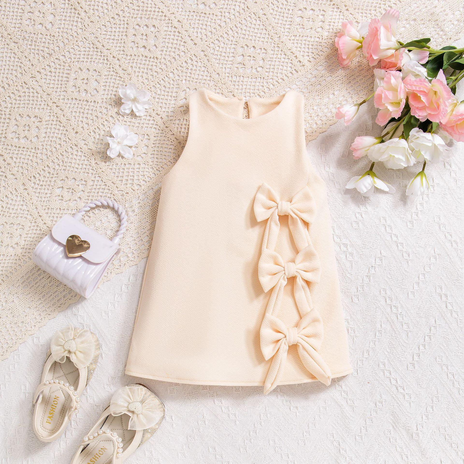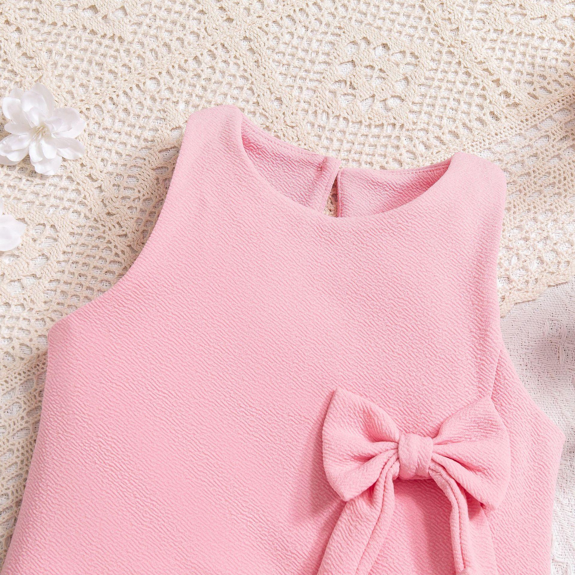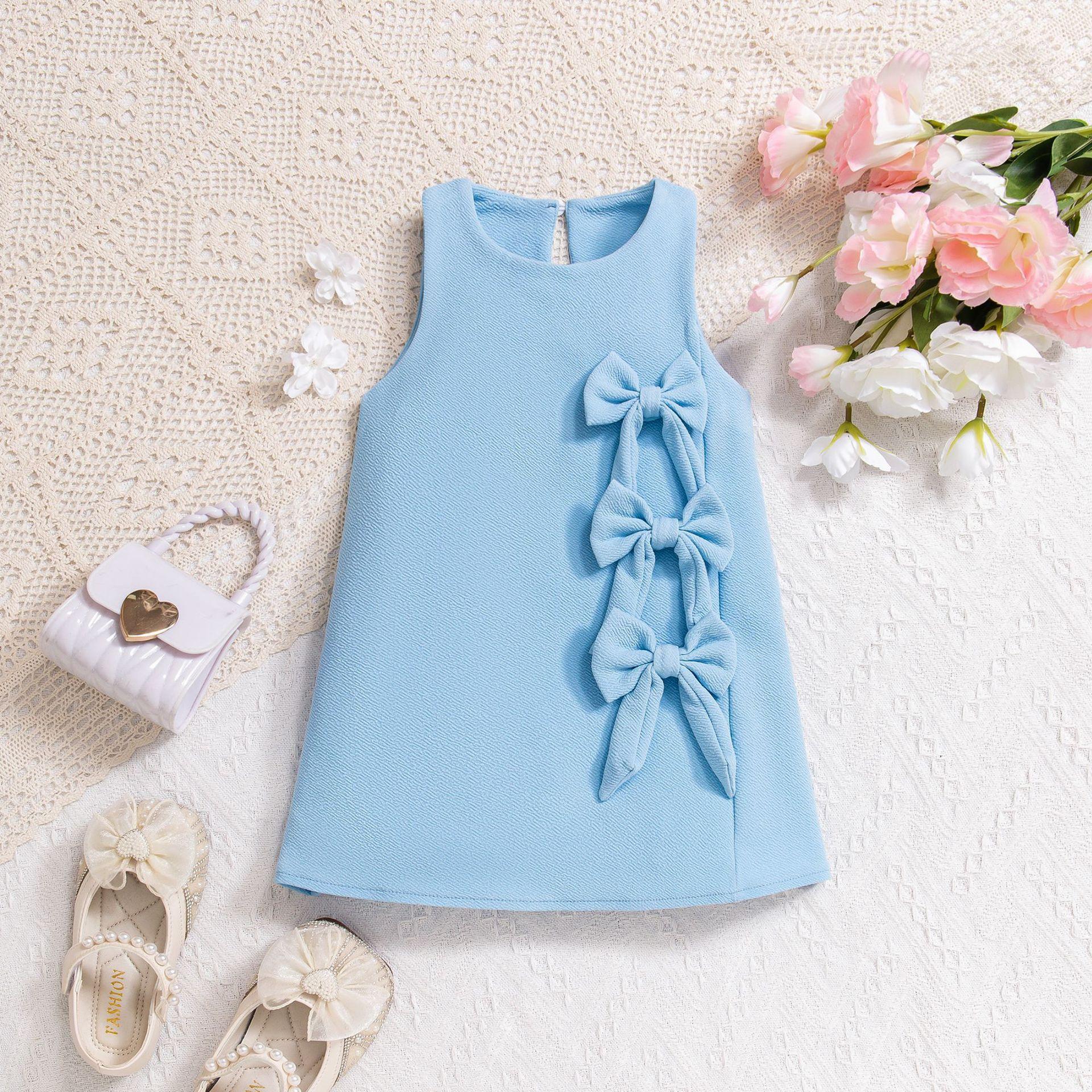 2025 Comercio exterior transfronterizo Europa y Estados Unidos primavera y verano nuevas niñas lindo chaleco sin mangas lazo tridimensional vestido de color sólido