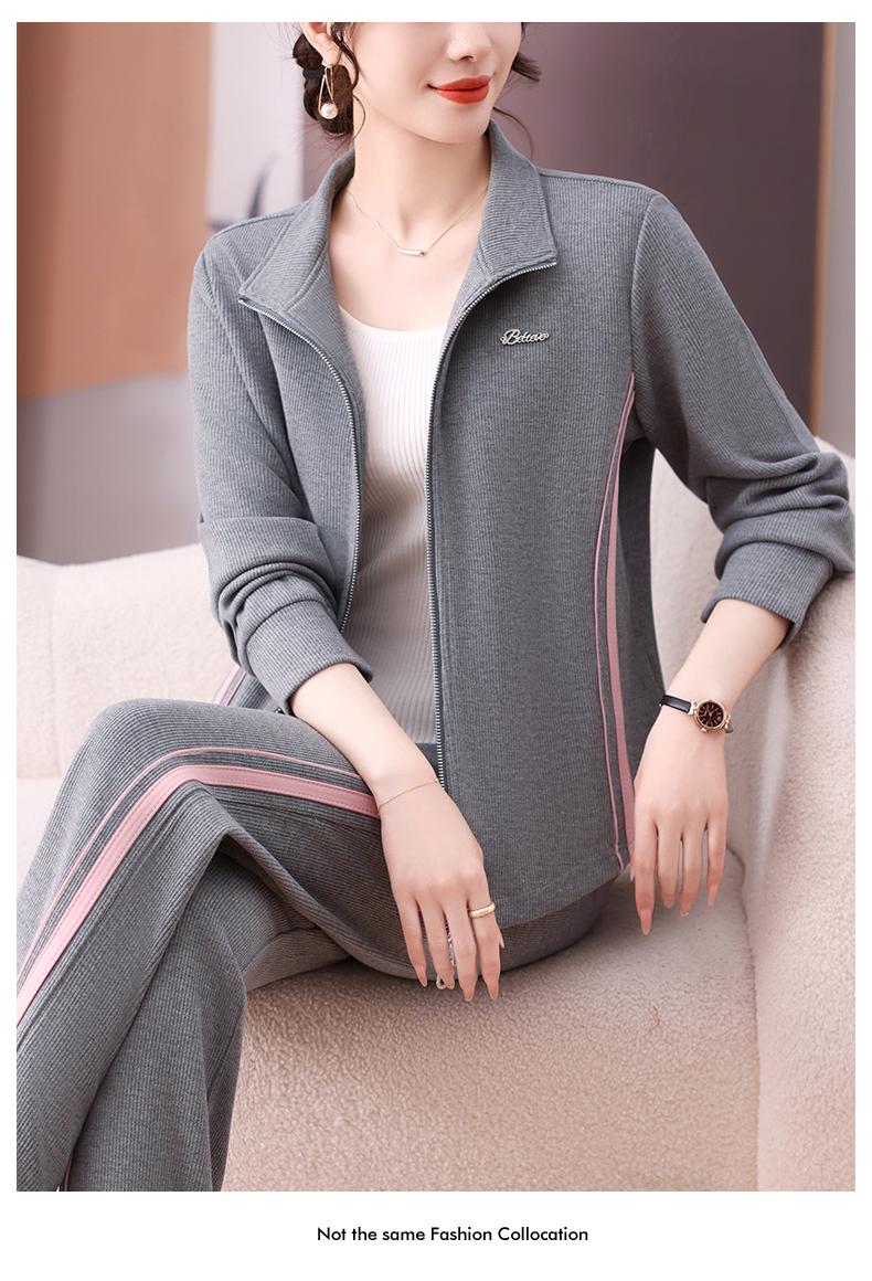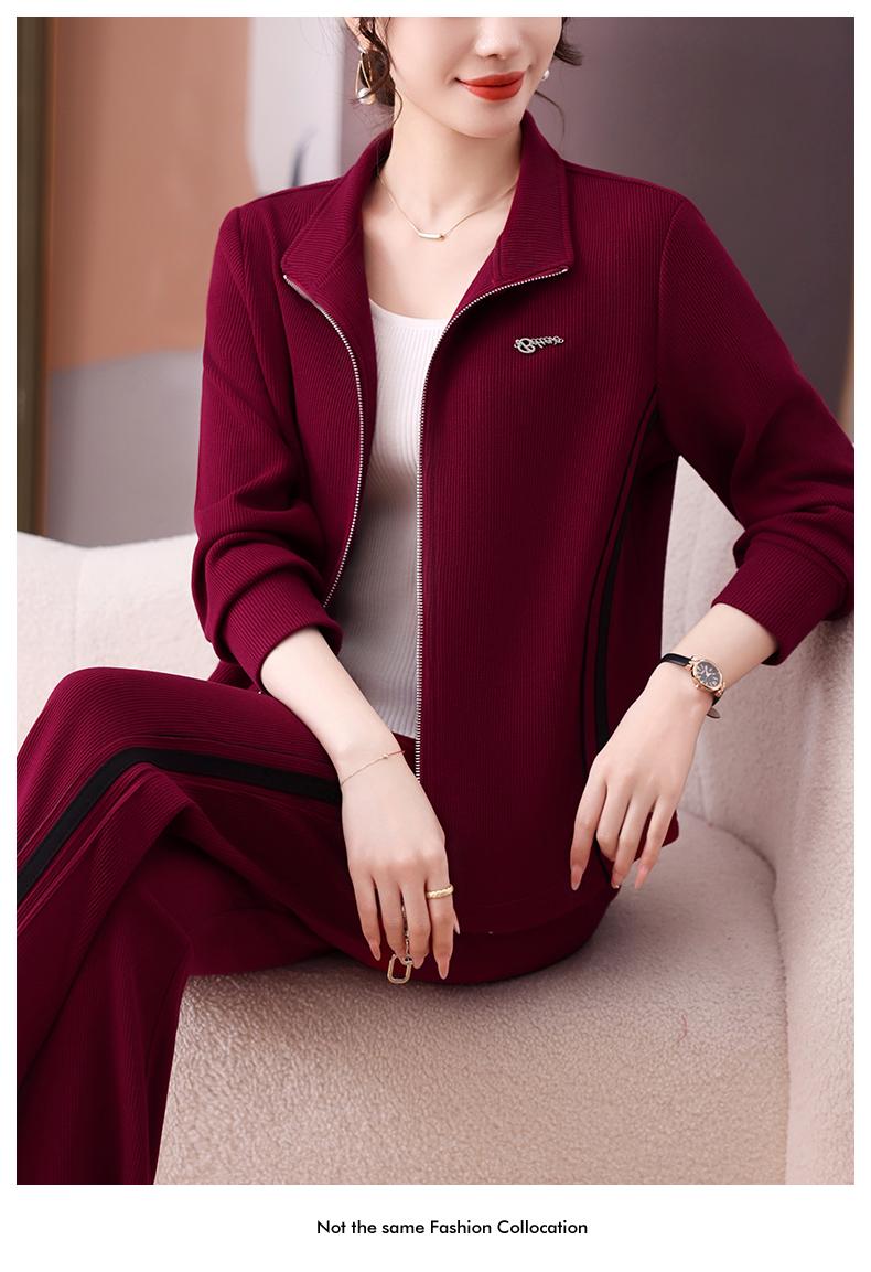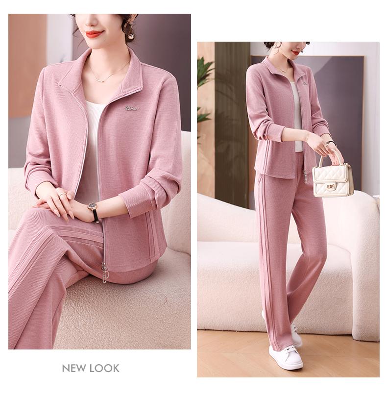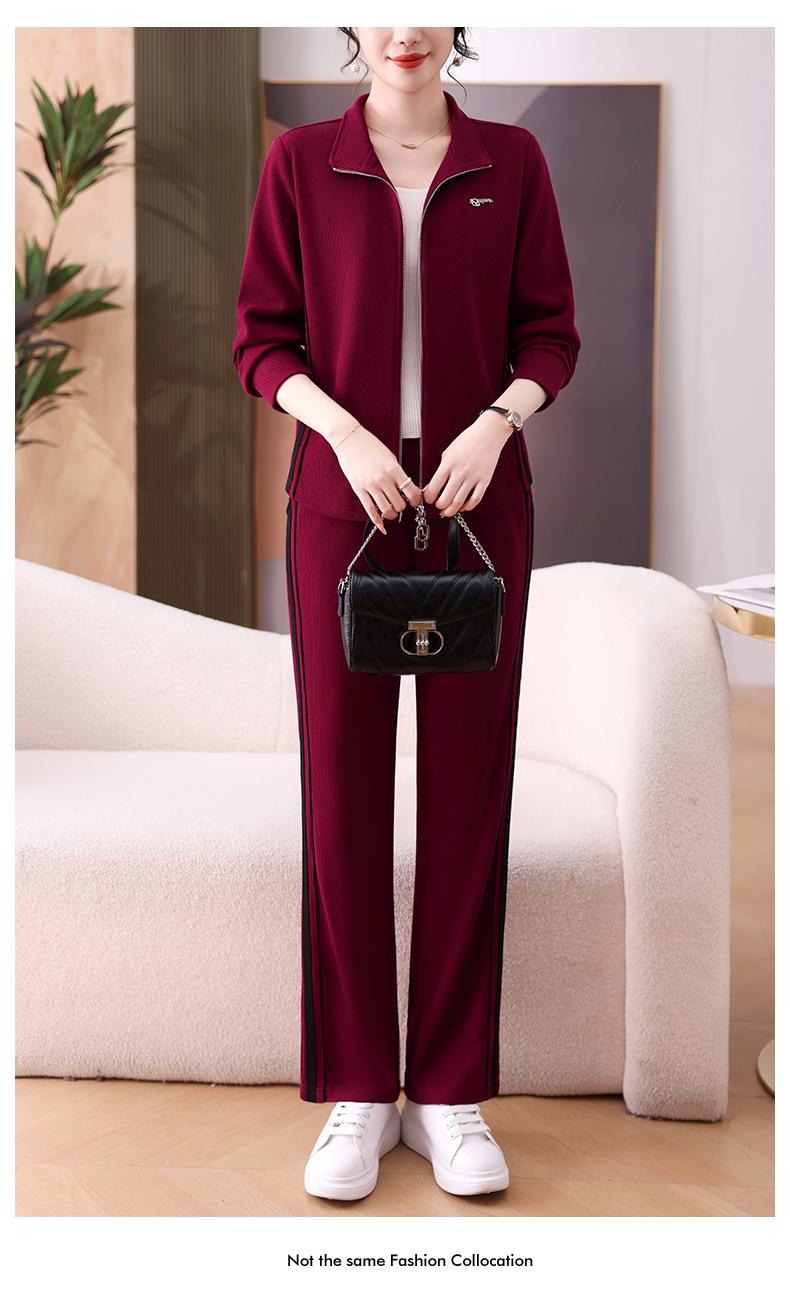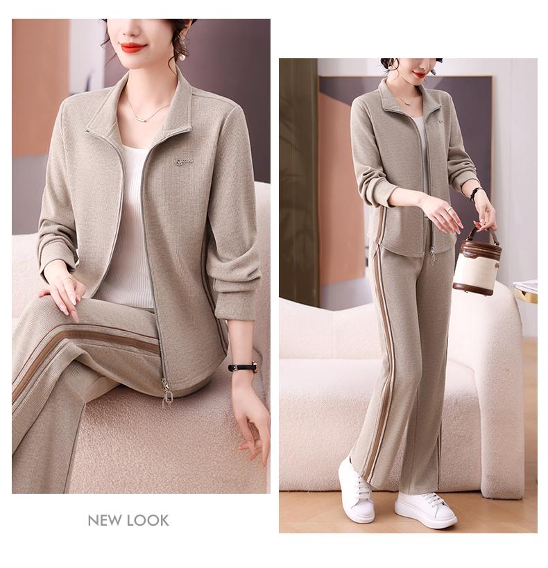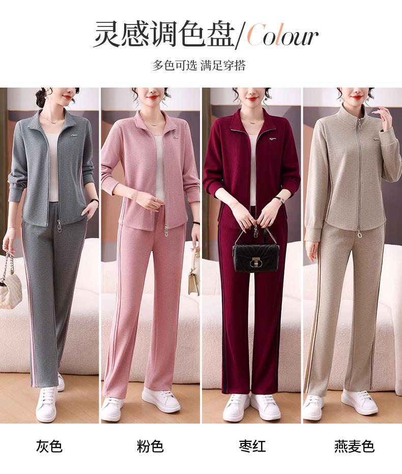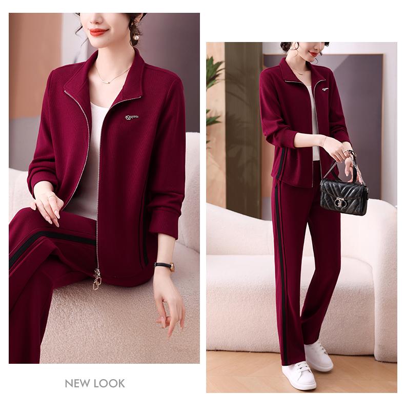 Traje Deportivo de Primavera y Otoño para Mujeres de Mediana Edad 2025 Nuevo Delgado Pantalón Recto Suelto para Correr Casual Conjunto de Dos Piezas
