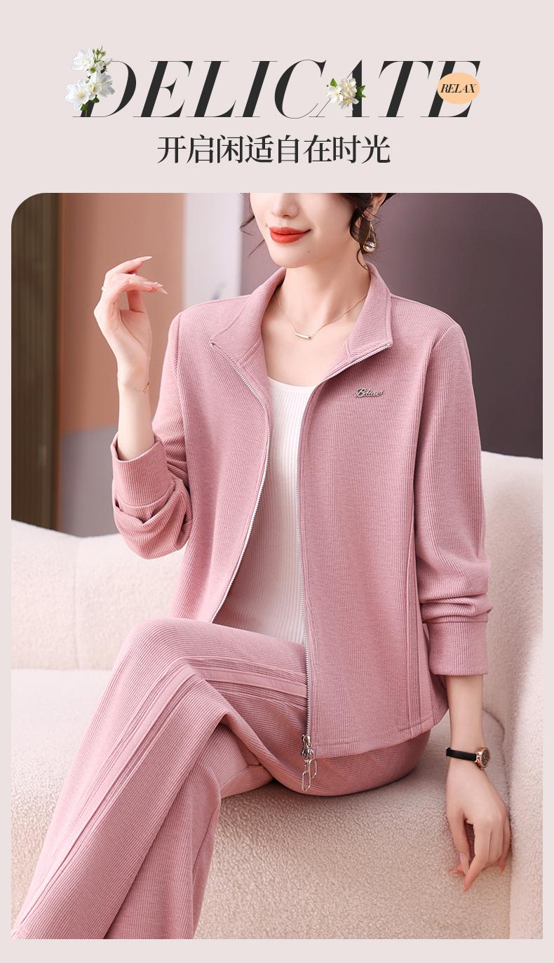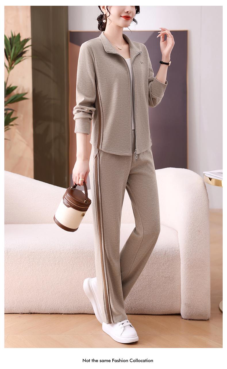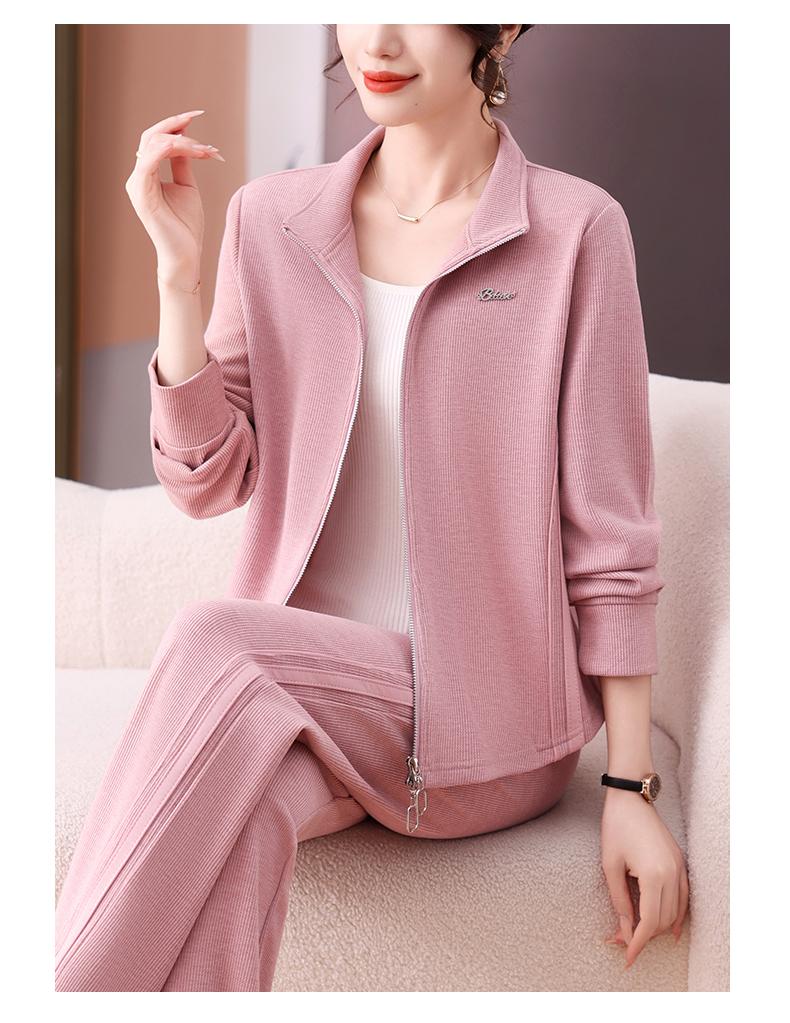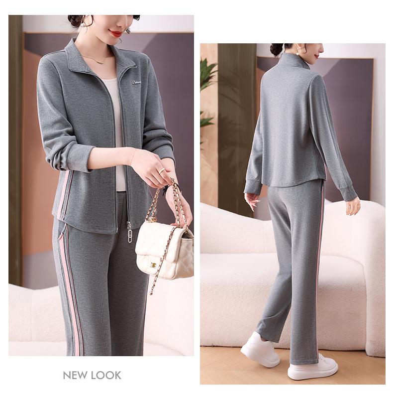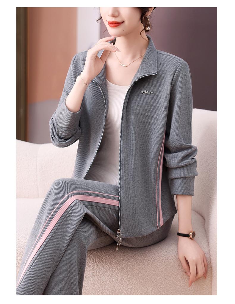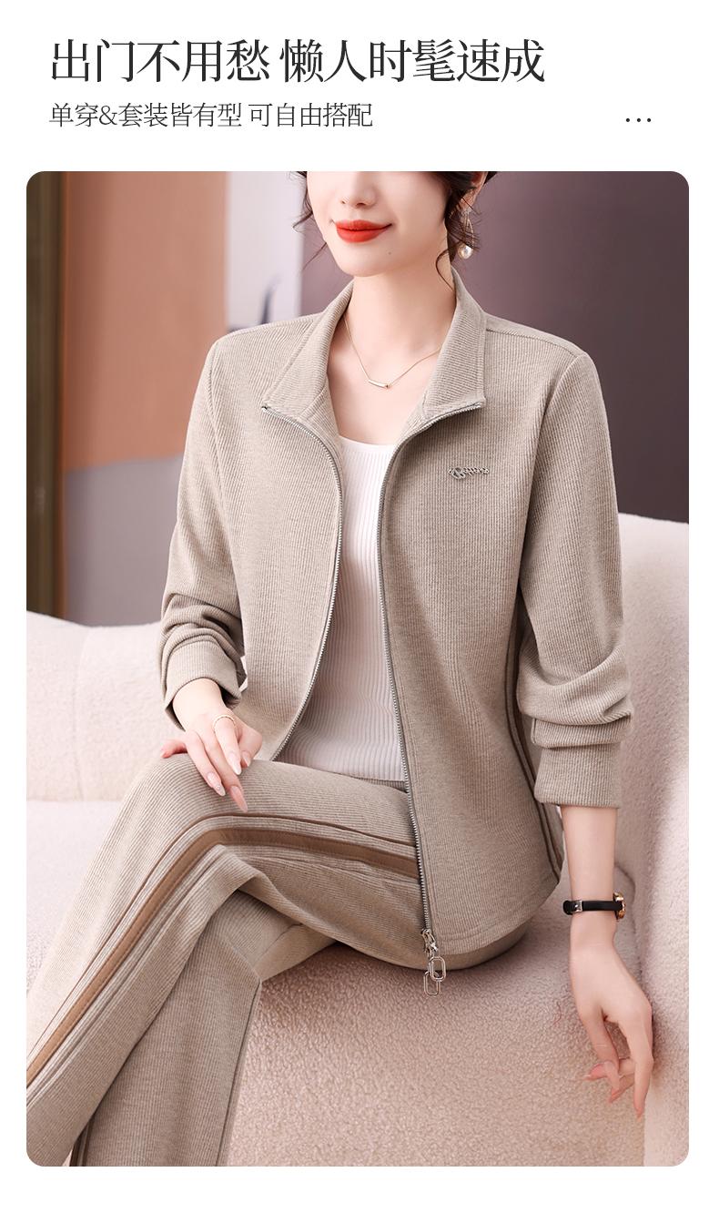 Traje Deportivo de Primavera y Otoño para Mujeres de Mediana Edad 2025 Nuevo Delgado Pantalón Recto Suelto para Correr Casual Conjunto de Dos Piezas