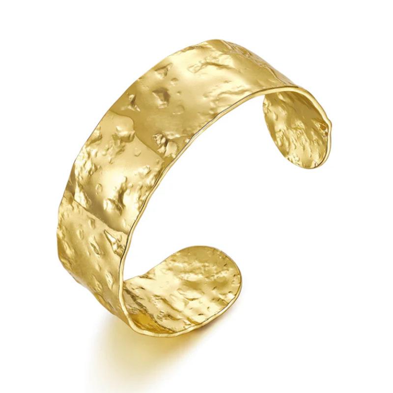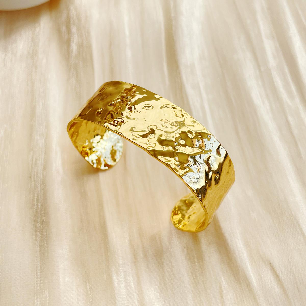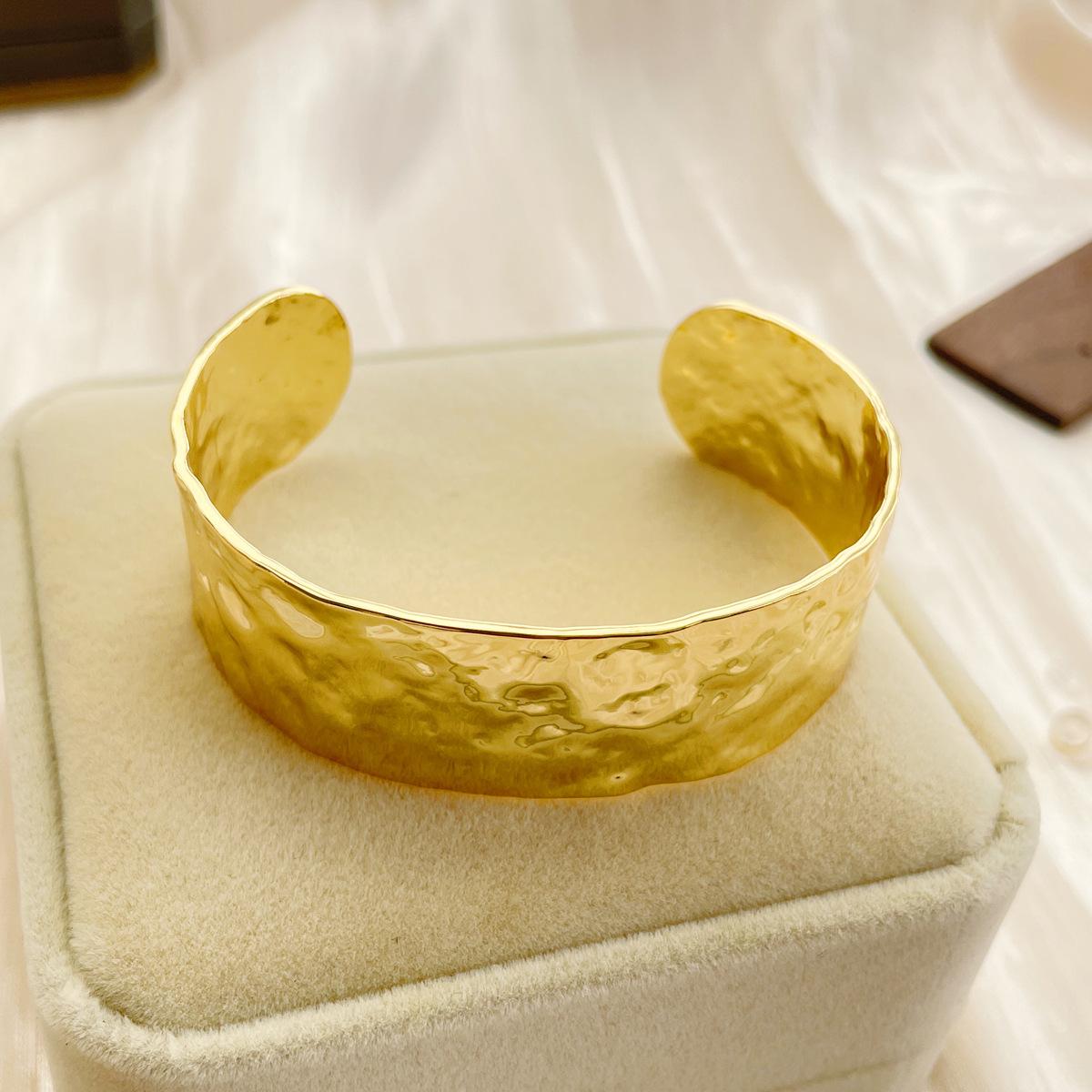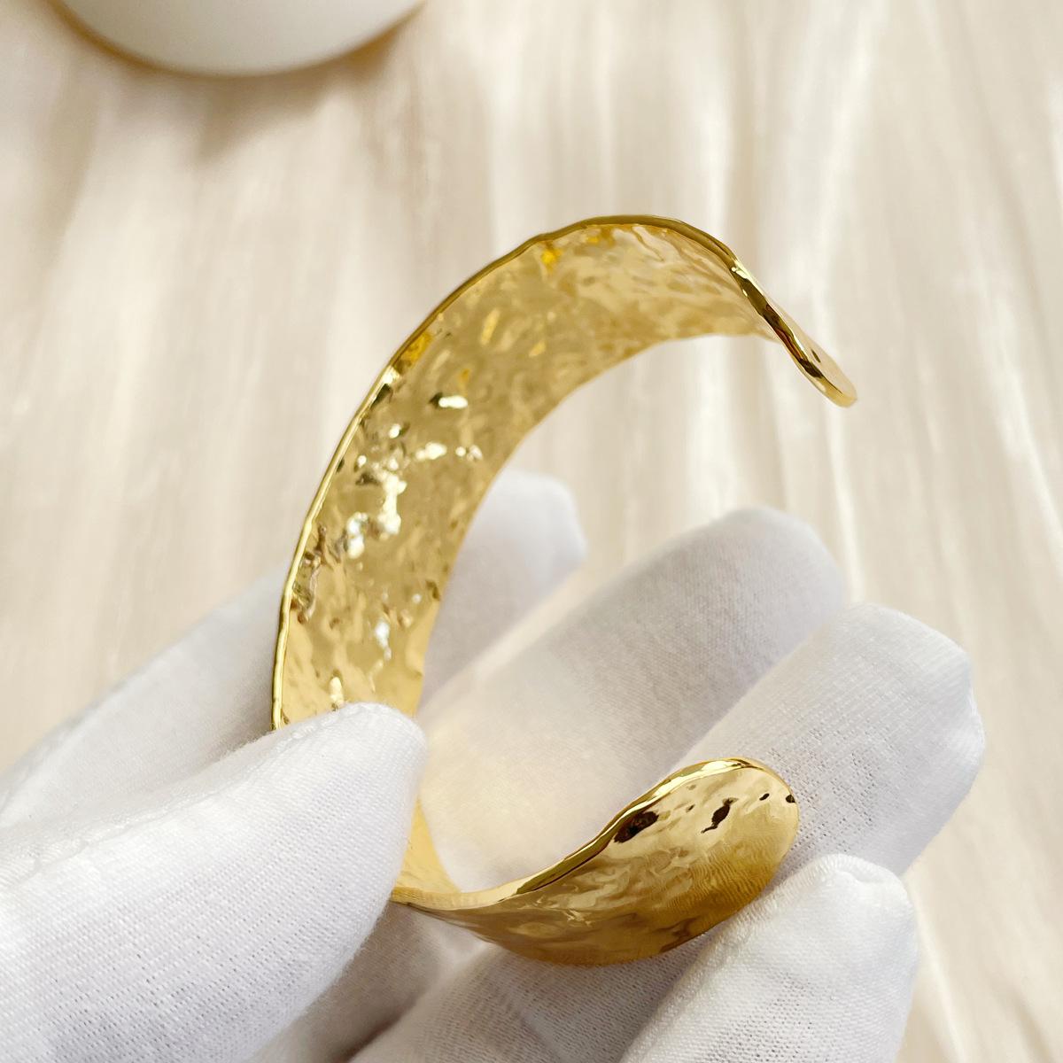 Moda Europea y Americana Pulsera Abierta Simple de Latón Dorado Retro Transfronteriza Belleza de Alta Gama Estilo Negro Ins Pulsera Ancha Exagerada
