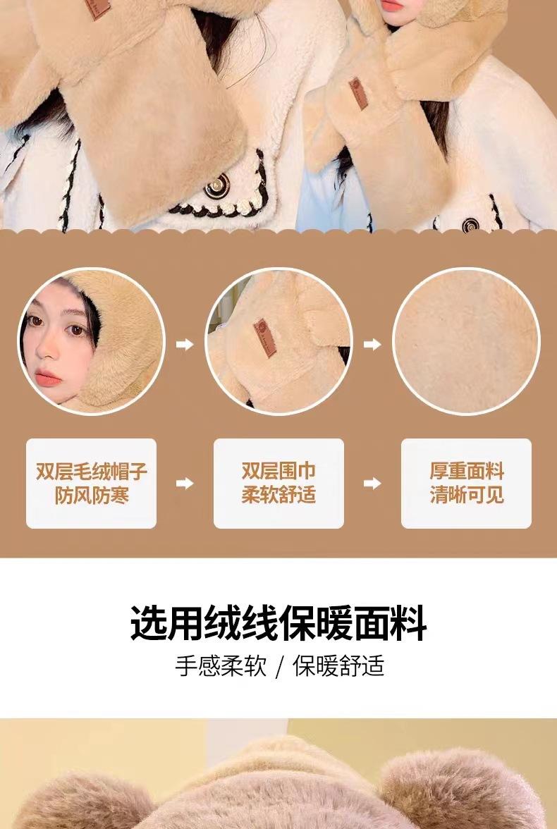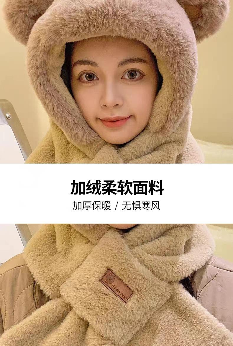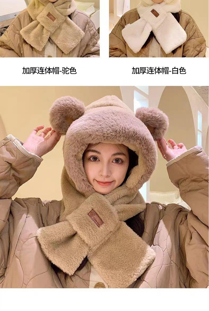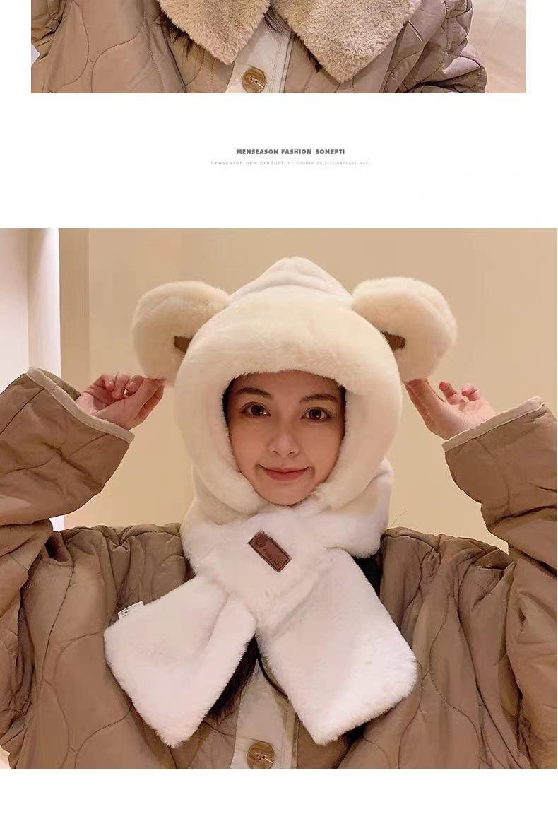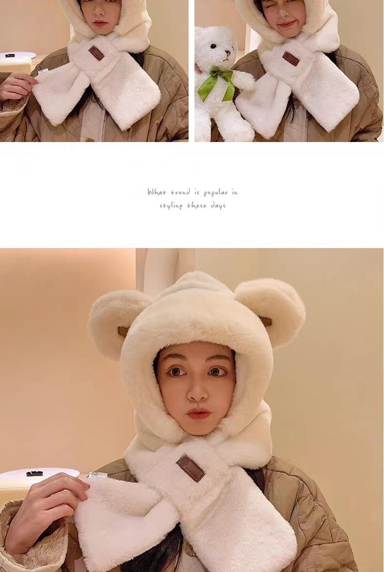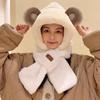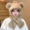 Bufanda con Gorro de Oso de Peluche para Mujer 2023 Nuevo Invierno Guantes Bufanda con Capucha Set de Dos Piezas Cálido