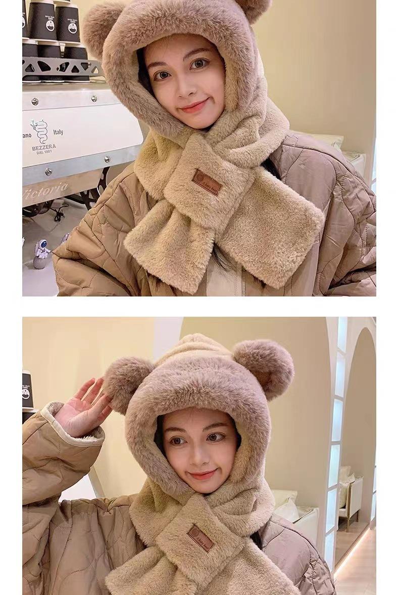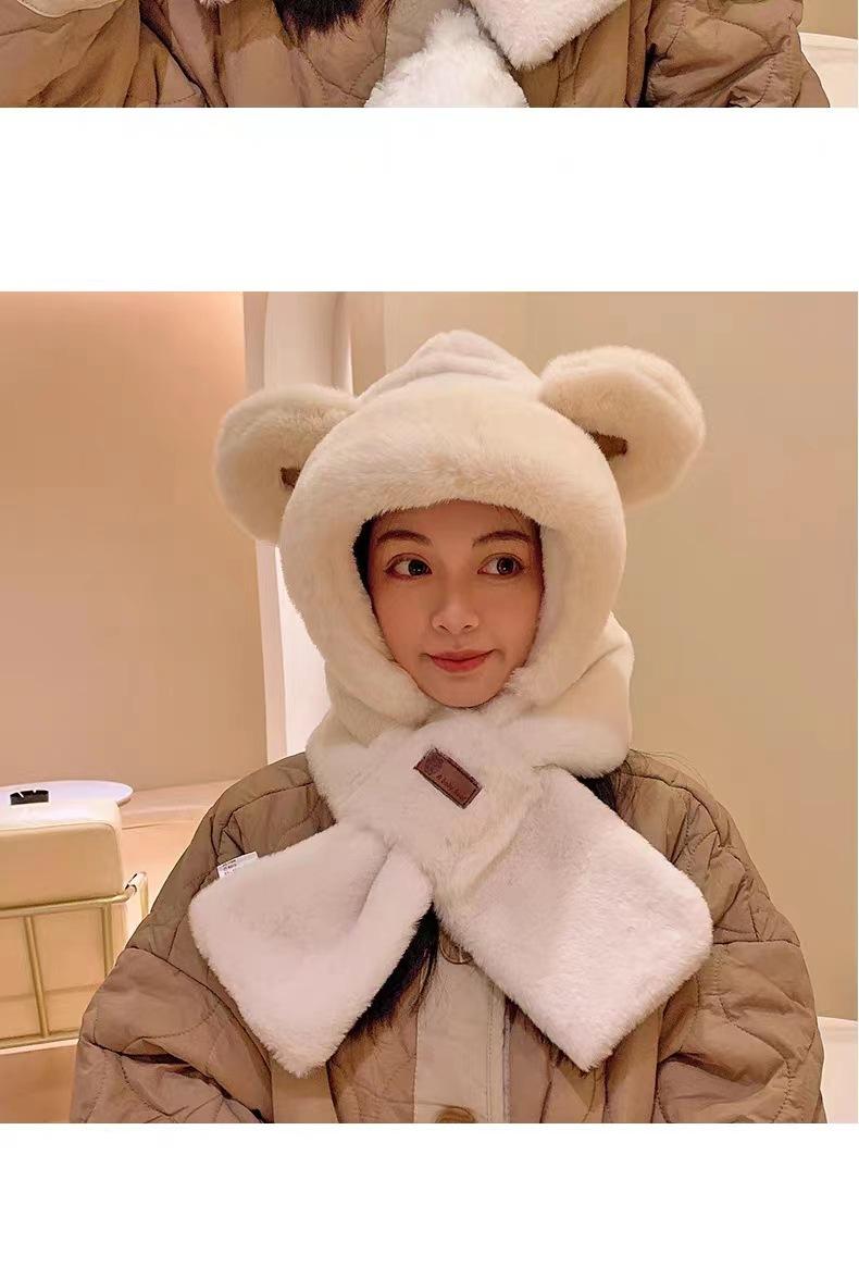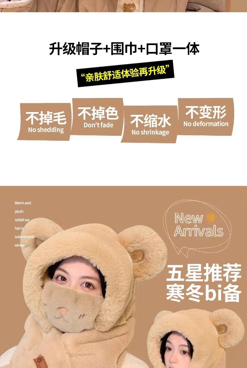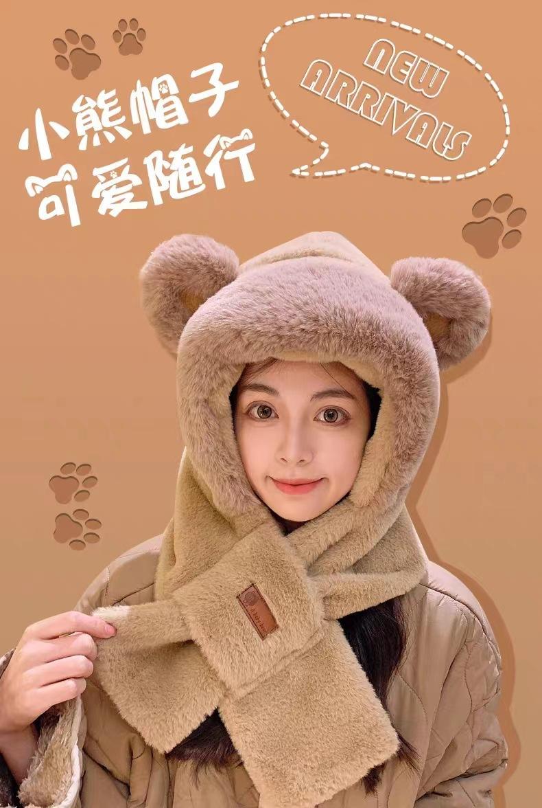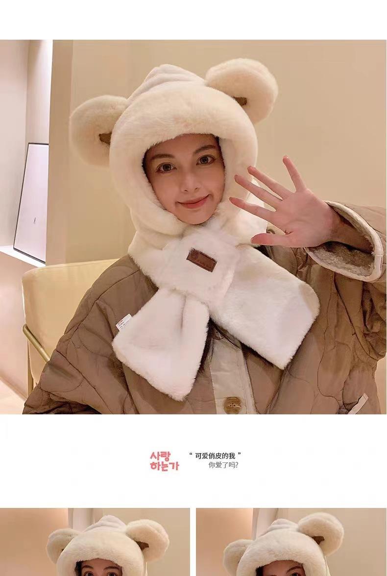 Bufanda con Gorro de Oso de Peluche para Mujer 2023 Nuevo Invierno Guantes Bufanda con Capucha Set de Dos Piezas Cálido