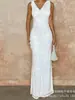 2025 Nuevo Vestido de Verano de Moda Elegante de Color Sólido con Cuello en V y Espalda Descubierta con Tirantes Finos para Comercio Exterior Europeo y Americano