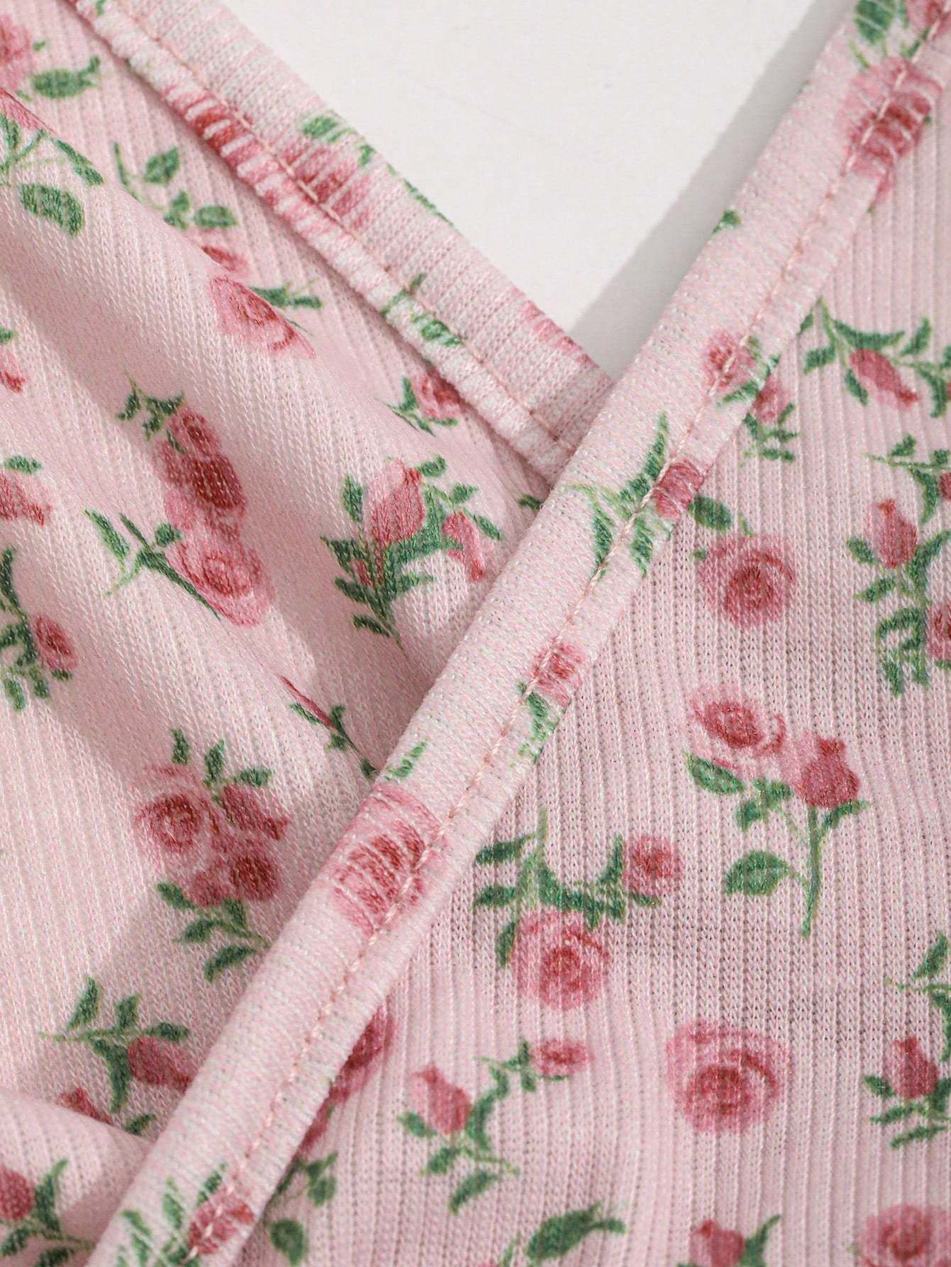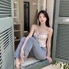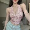 Estilo Deseo Puro Transfronterizo Cuello Floral Tirante Fino Pequeño Verano de Mujer Sexy Ajustado Corto Chaleco de Chica Caliente Top Transfronterizo
