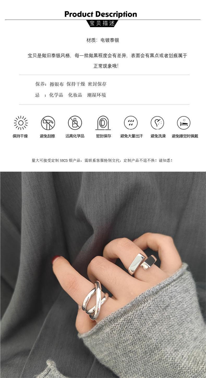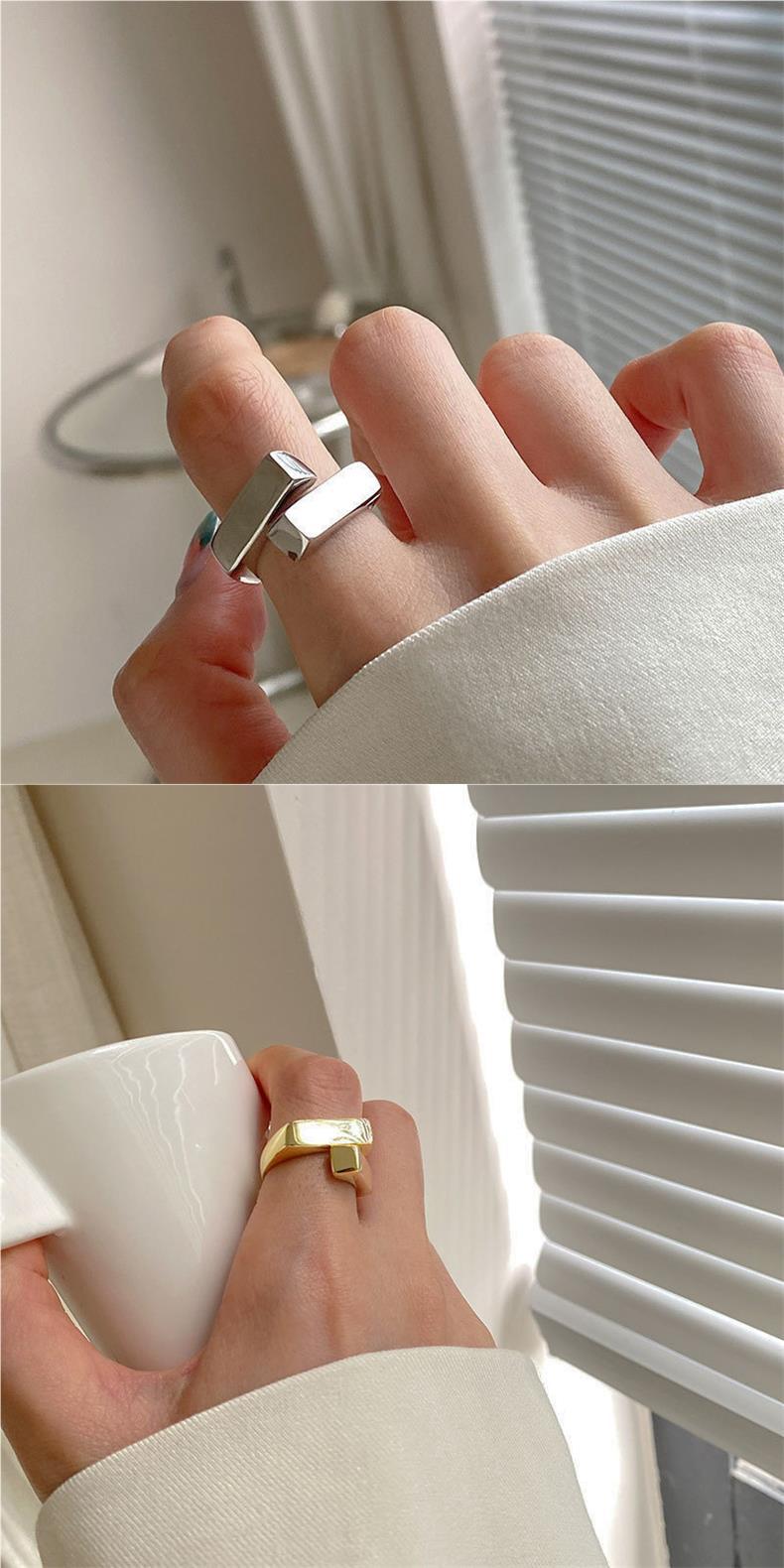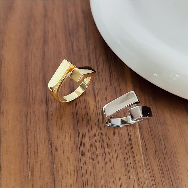 Anillo Geométrico Cuadrado Cruz para Mujer Personalidad Moda Hip Hop Versátil Plata S925 Chapado Anillo Abierto Anillo de Dedo Ins