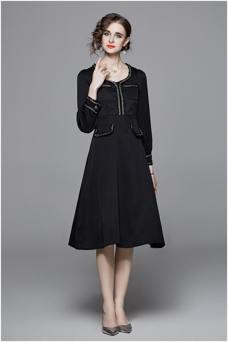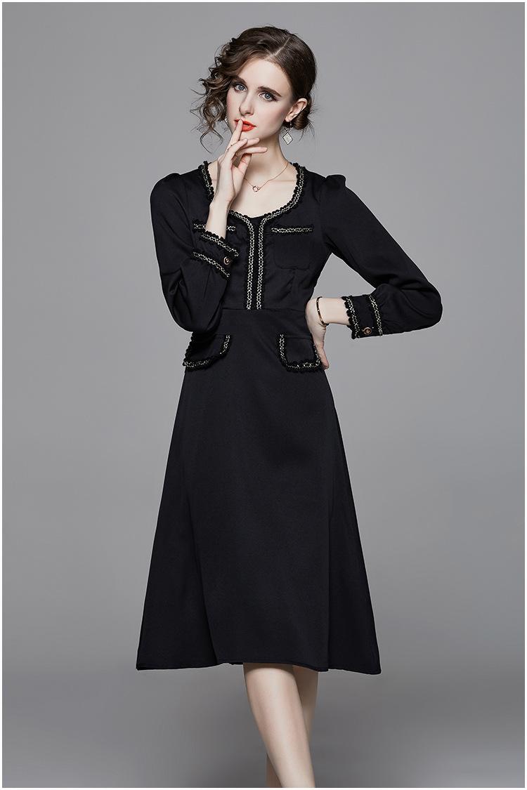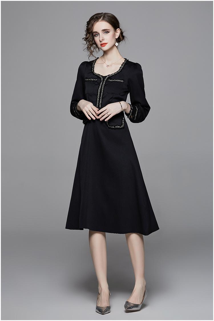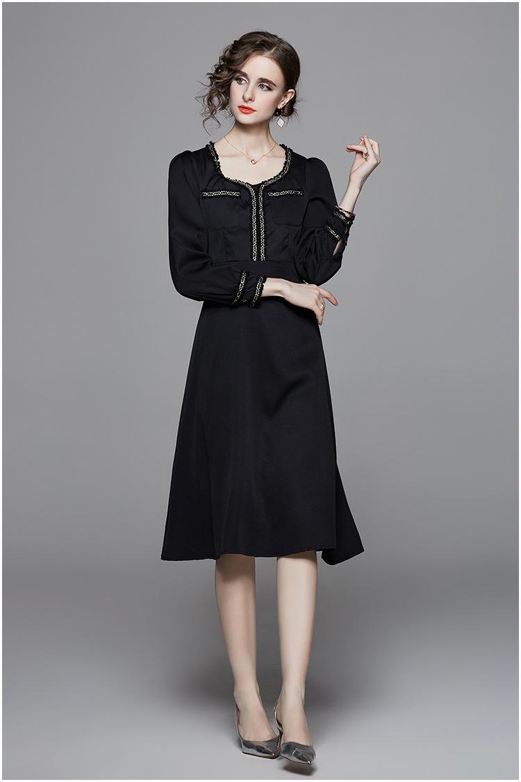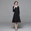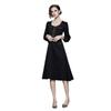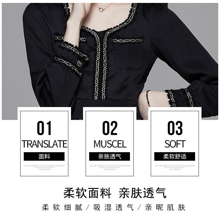 Vestido Negro Estilo Hepburn Europeo y Americano 2024 Otoño Nuevo Cuello Cuadrado Francés Retro Look Adelgazante Falda Midi