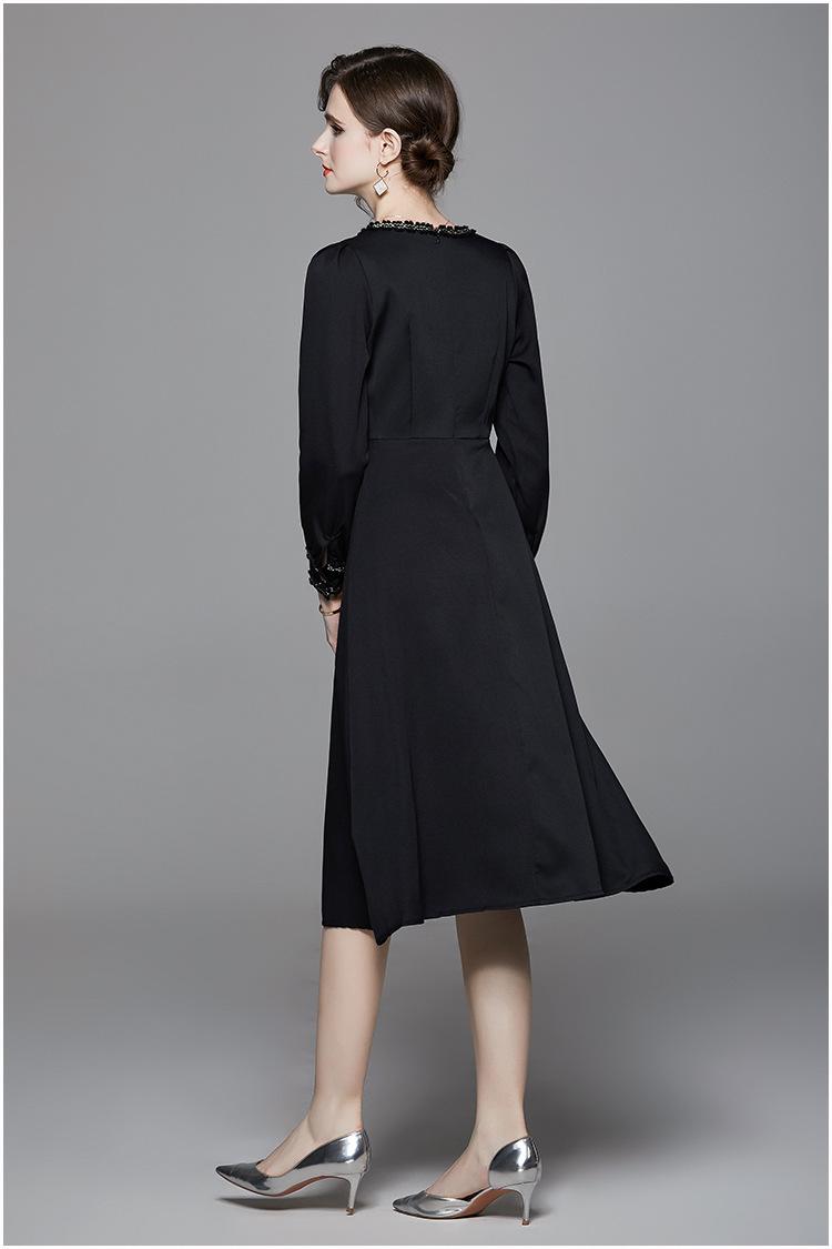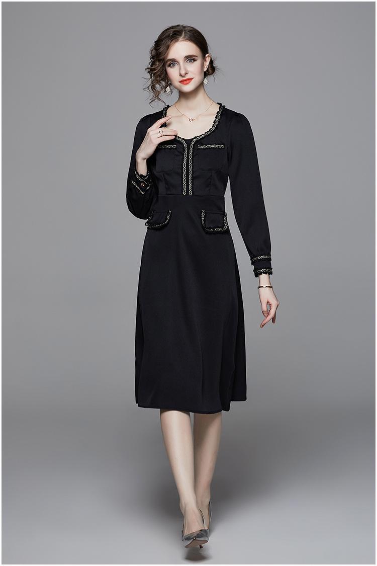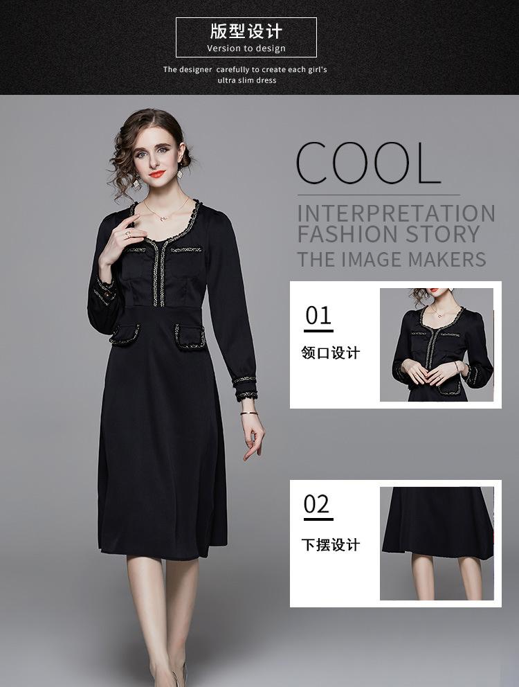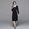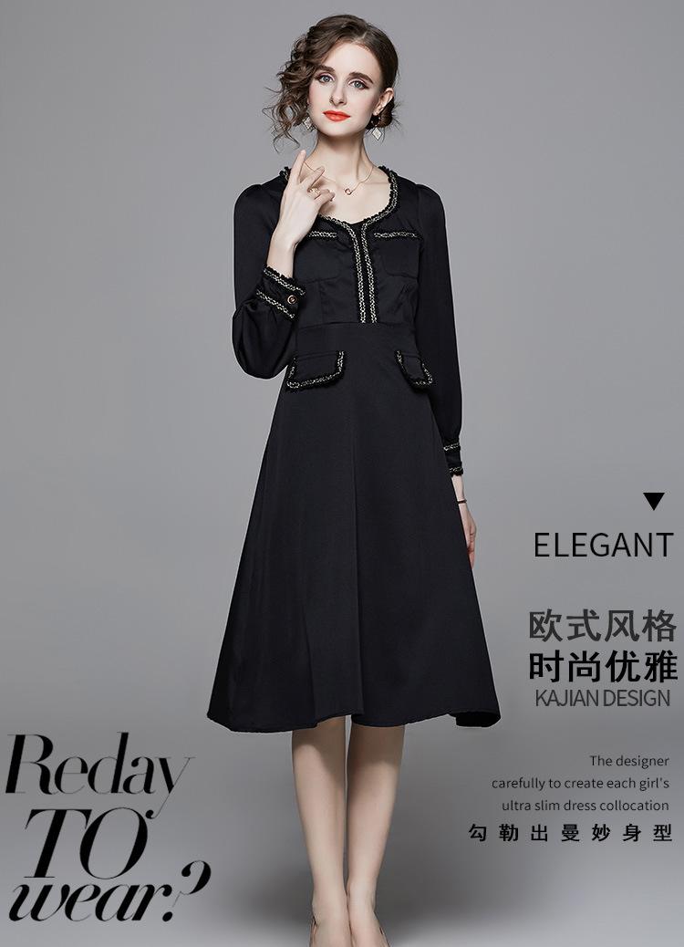 Vestido Negro Estilo Hepburn Europeo y Americano 2024 Otoño Nuevo Cuello Cuadrado Francés Retro Look Adelgazante Falda Midi