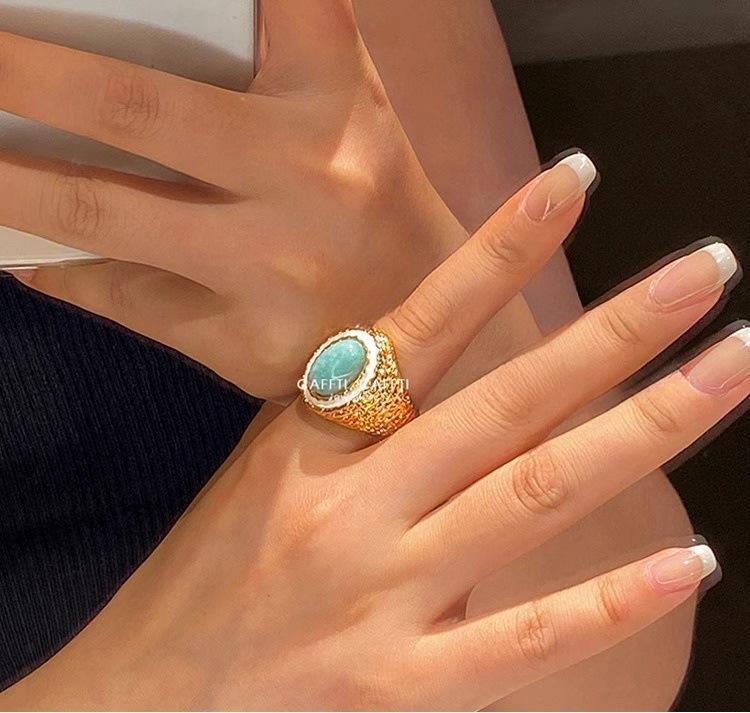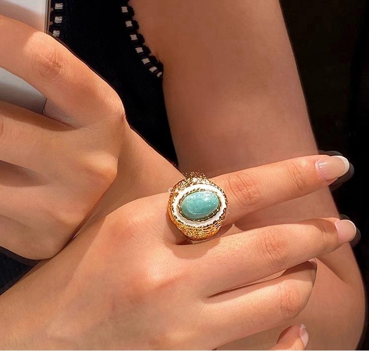 Anillo de piedra Tianhe de estilo palacio retro europeo y americano para mujer, con personalidad de nicho, a la moda, con apertura de nicho francés para todo tipo de combinaciones.