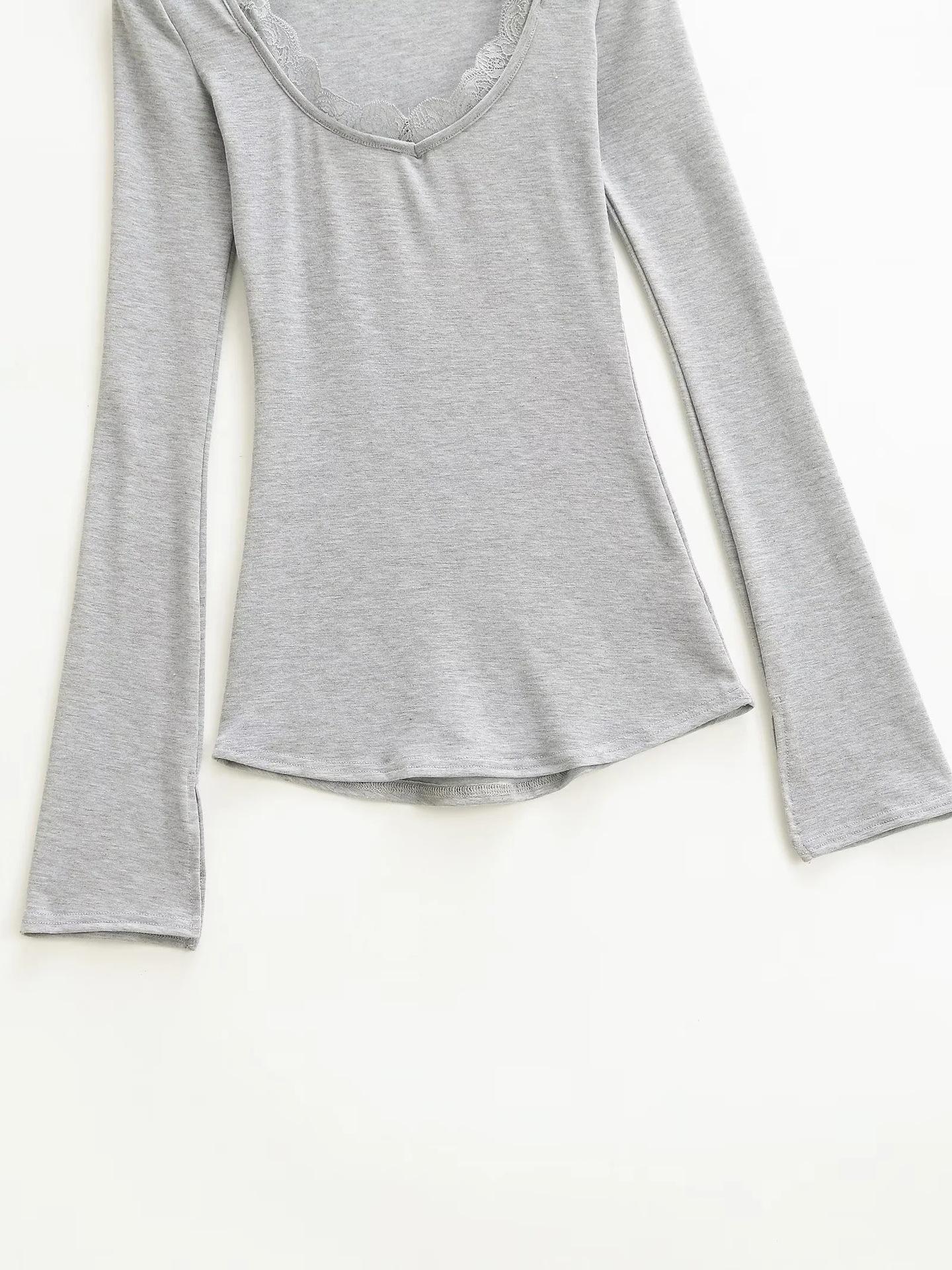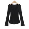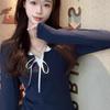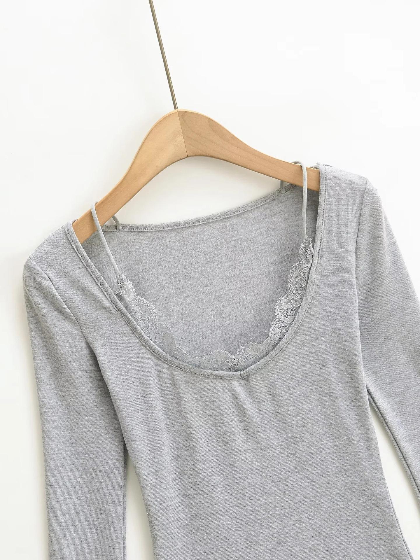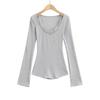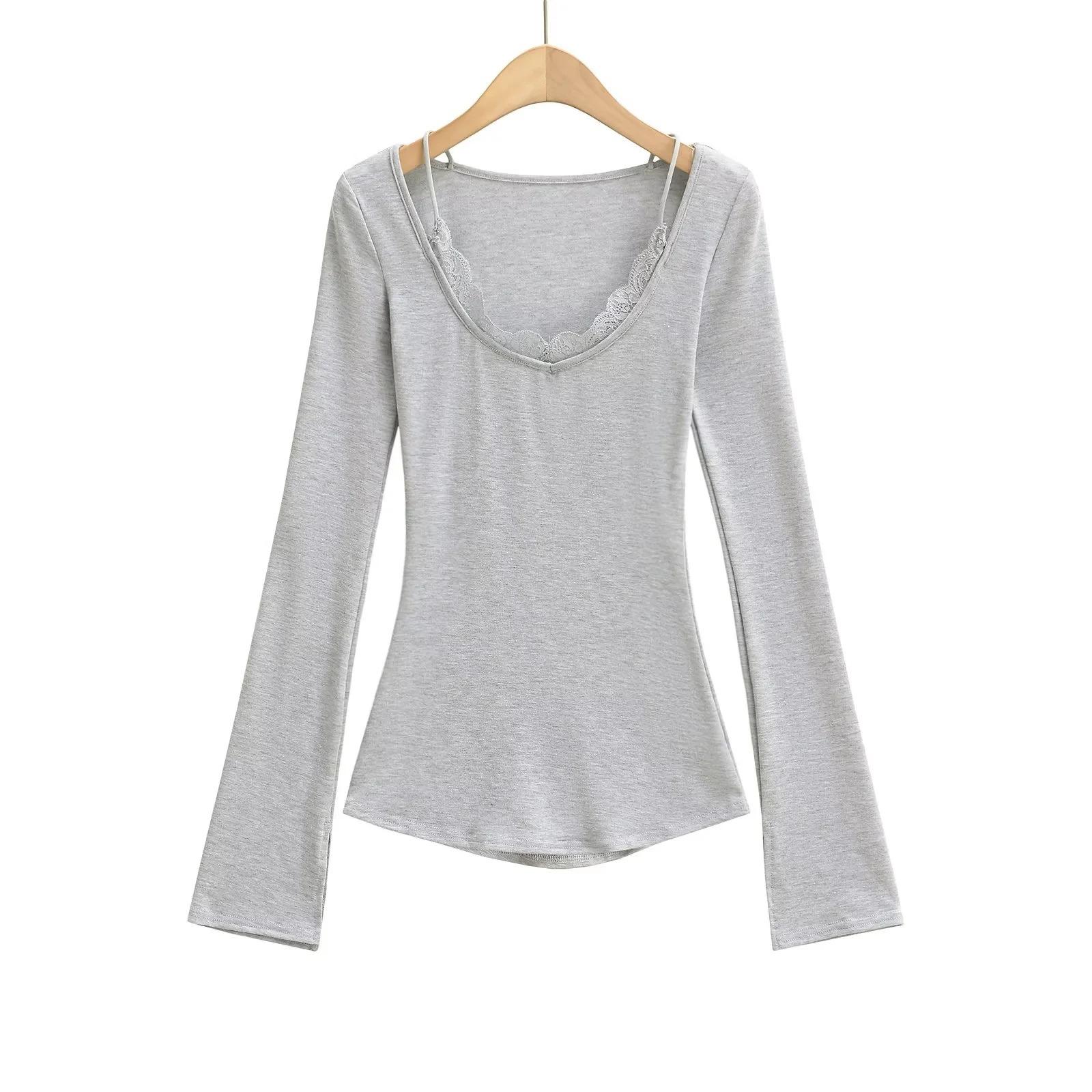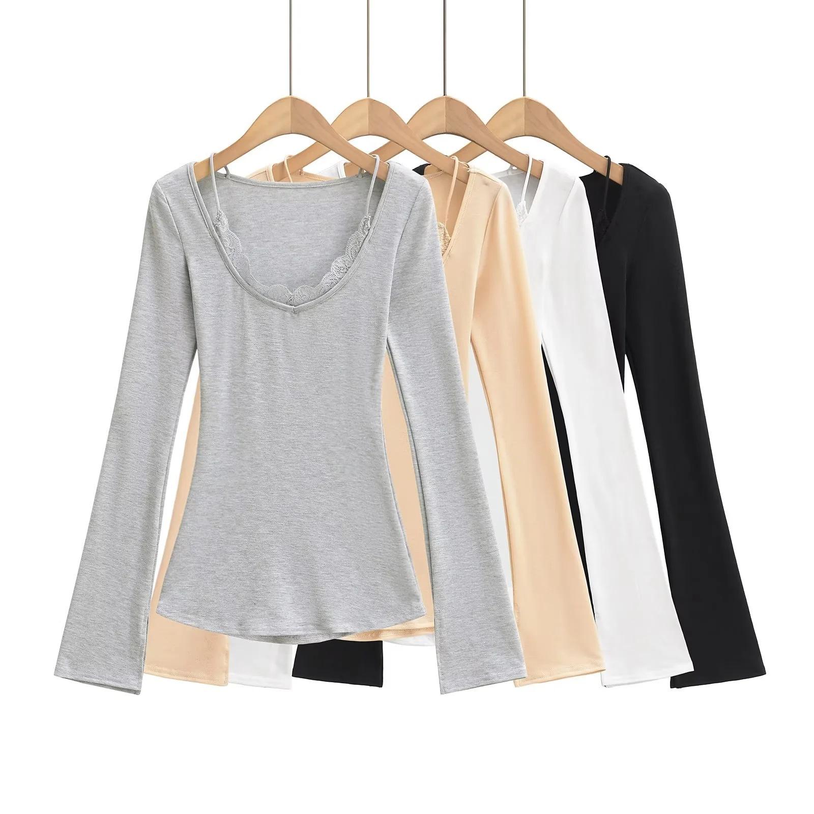 Camiseta ajustada de Spice Girl con encaje y manga larga para mujer, con cintura adelgazante, venta al por mayor