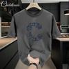 Camiseta de manga corta fresca de verano 2025, talla grande, holgada, con cuello redondo, color liso, informal, sencilla, para hombre