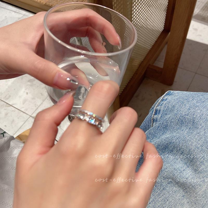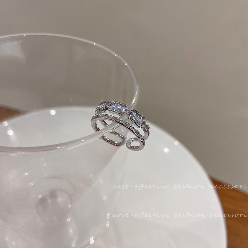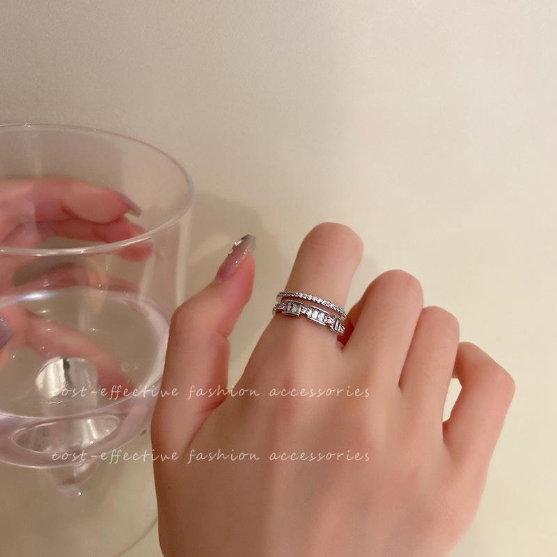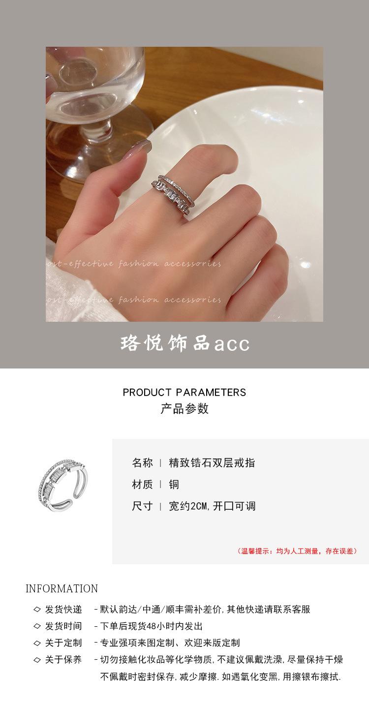 Diseño de Anillo Abierto, Dedo Índice de Diamante Moderno y Exquisito, Anillo de Piedra Hao de Doble Capa Personalizado Ins para Mujer Venta al por Mayor Zirconia