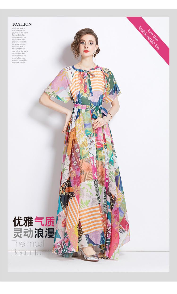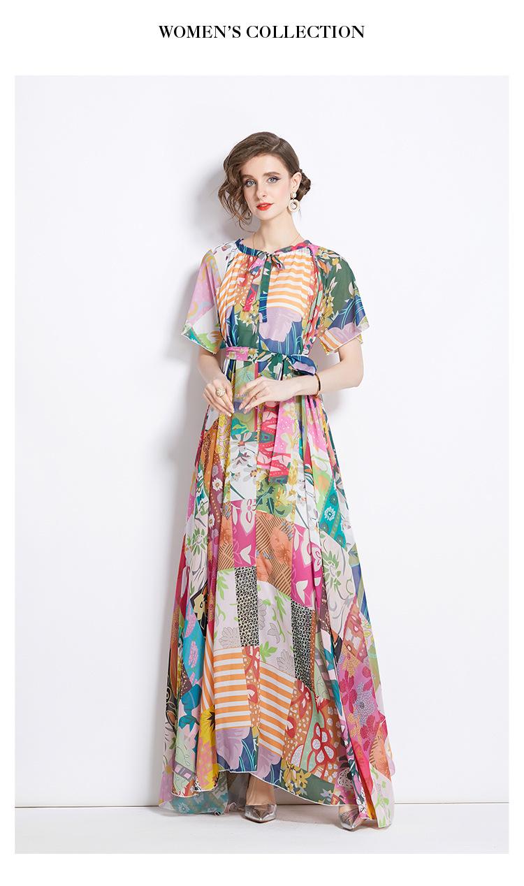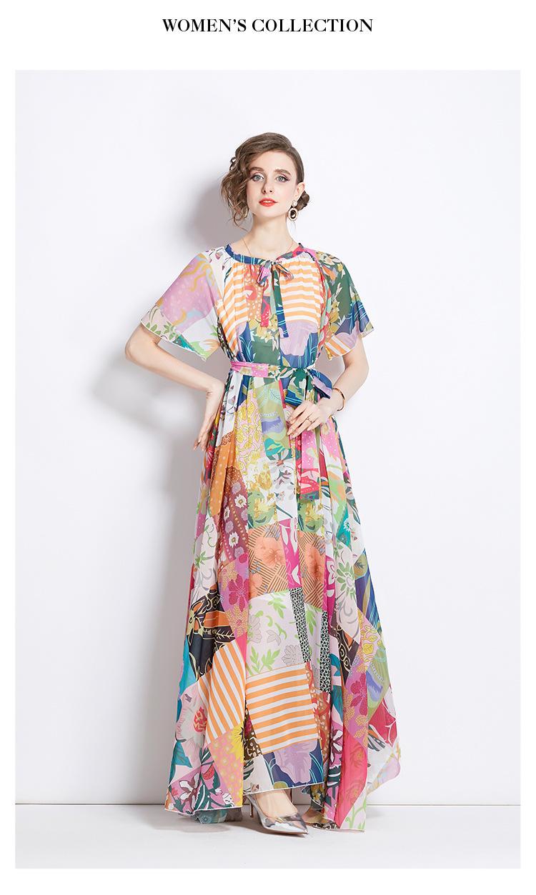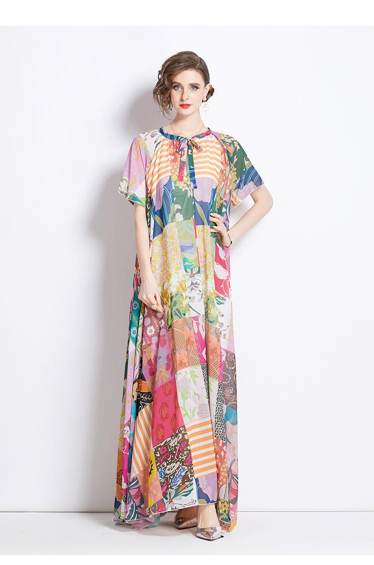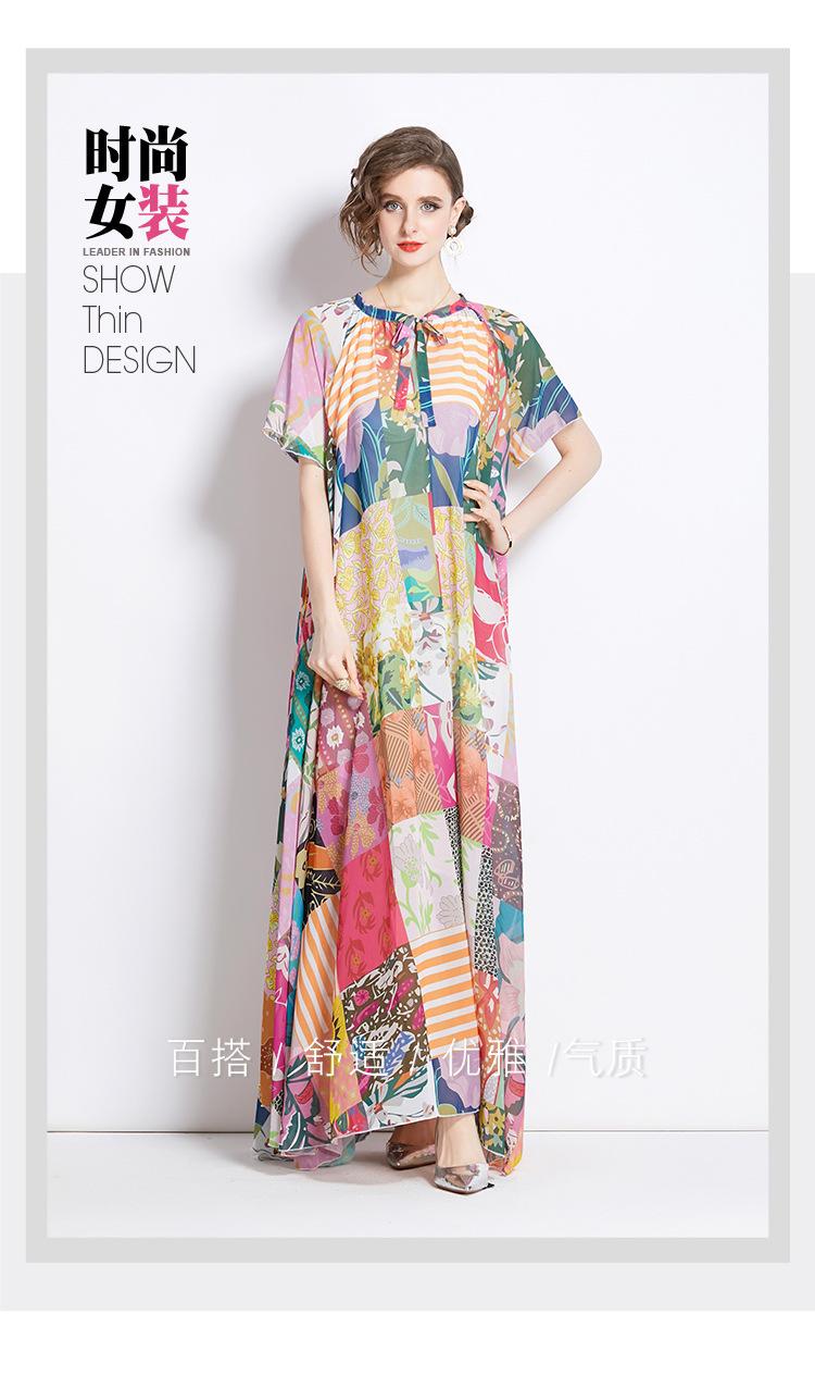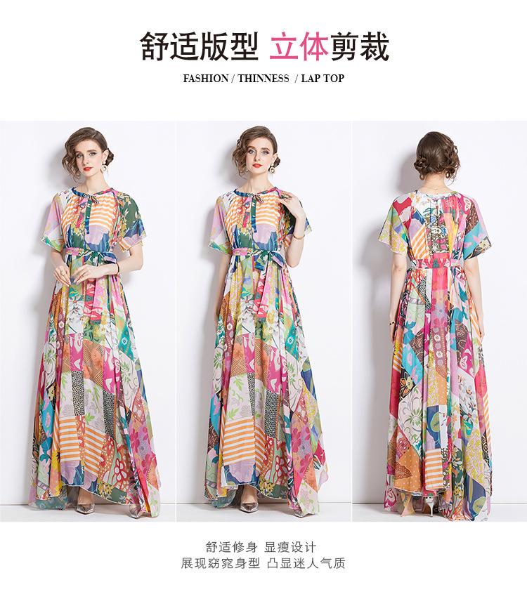 Compra Vestido de chifón de moda holgado de manga corta con estampado y bajo amplio para primavera y verano 2024, respetuoso con la piel al por mayor en Joom.pro