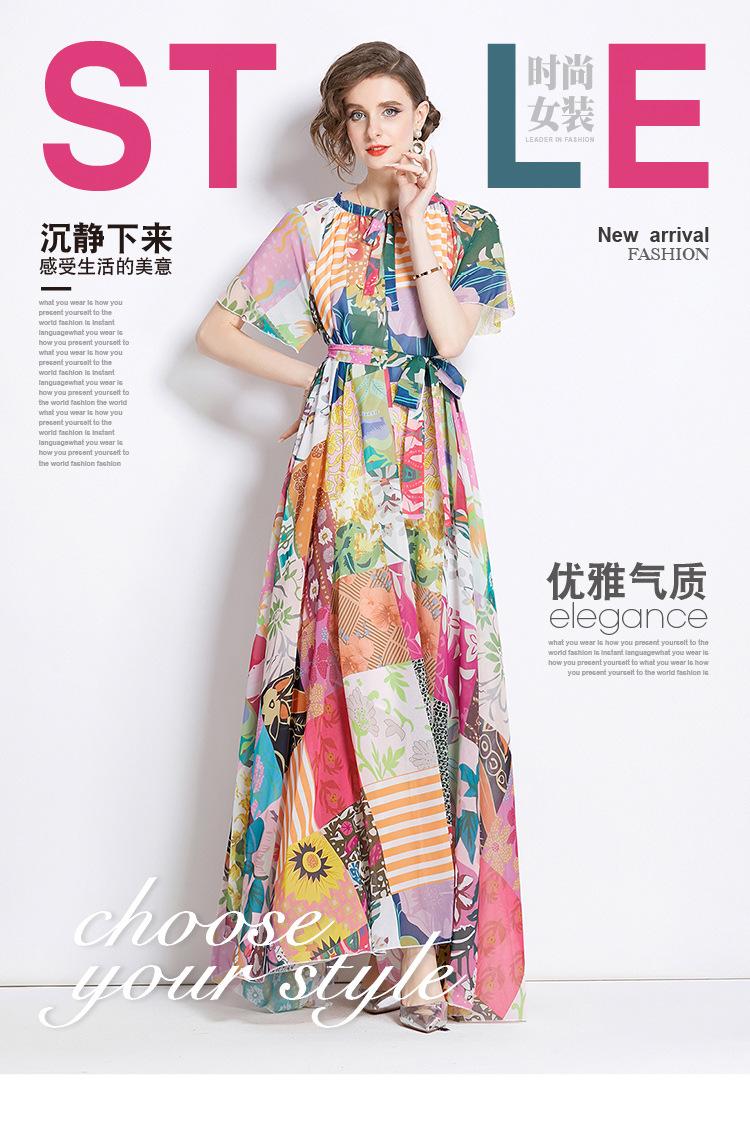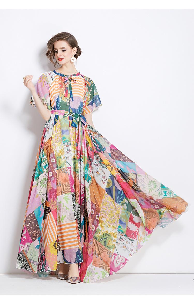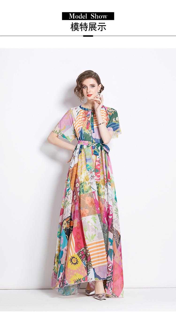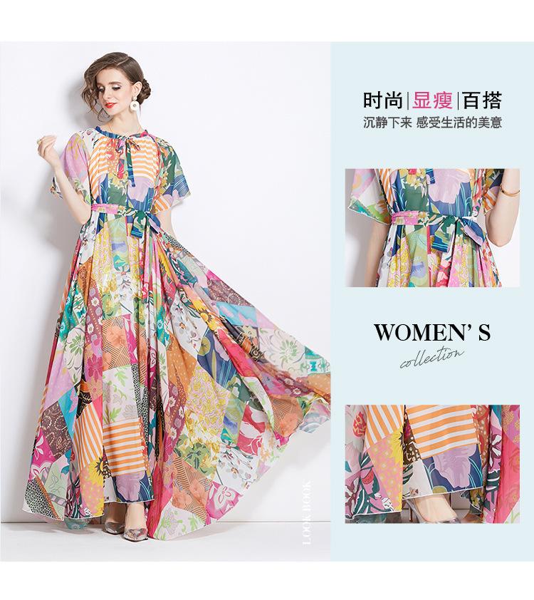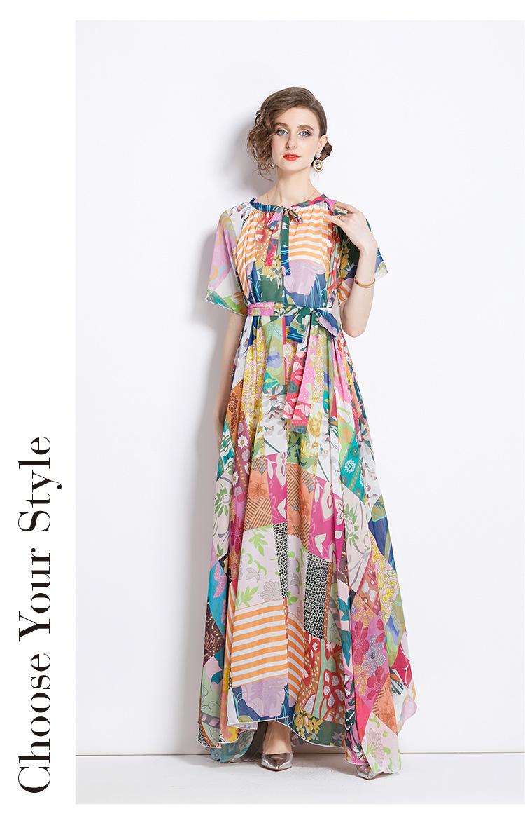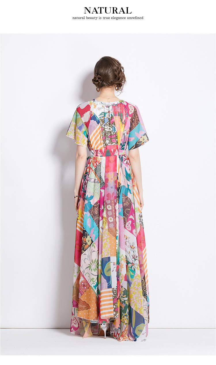 Compra Vestido de chifón de moda holgado de manga corta con estampado y bajo amplio para primavera y verano 2024, respetuoso con la piel al por mayor en Joom.pro