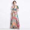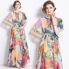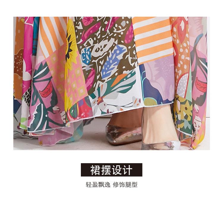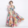 Vestido de chifón de moda holgado de manga corta con estampado y bajo amplio para primavera y verano 2024, respetuoso con la piel