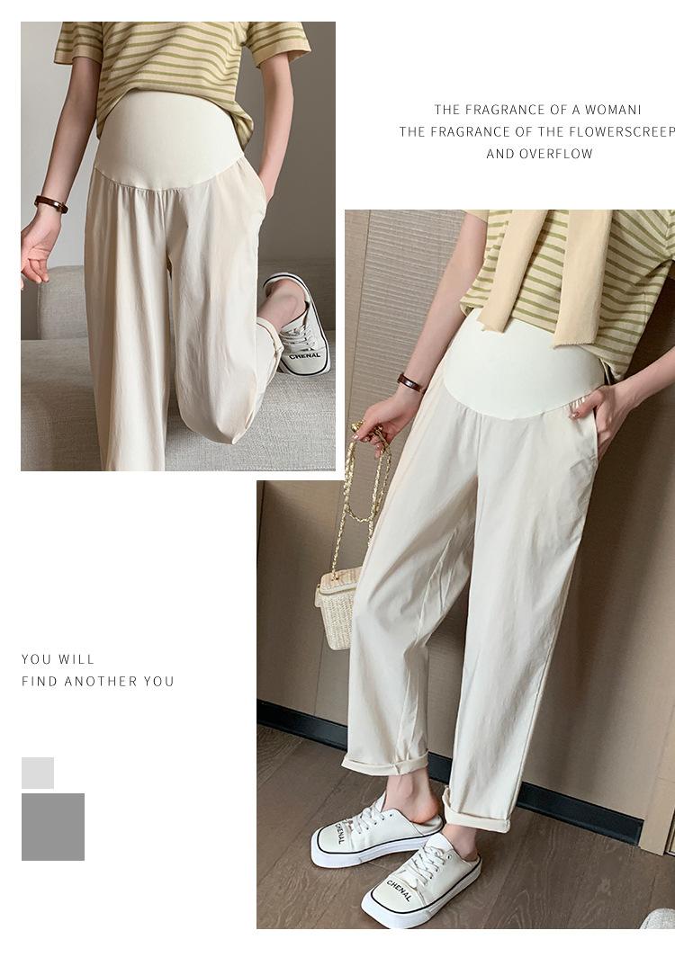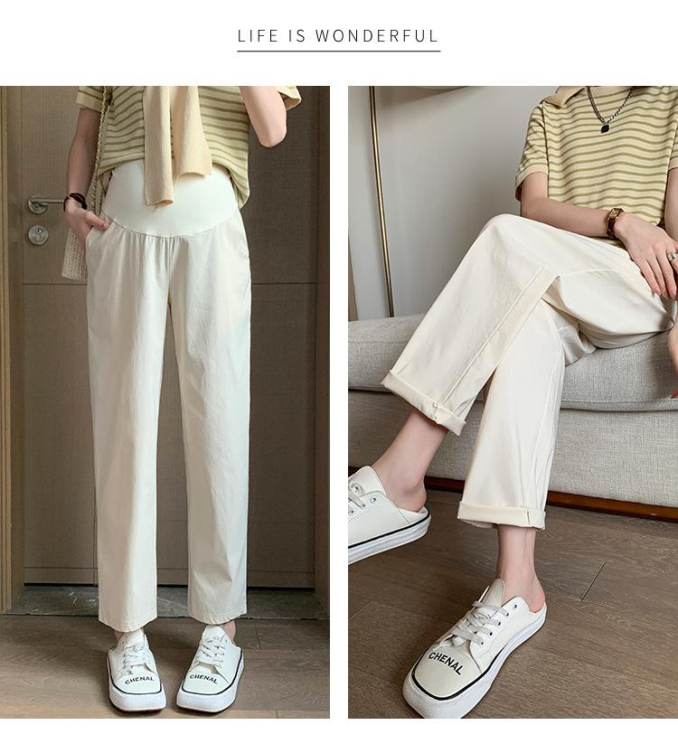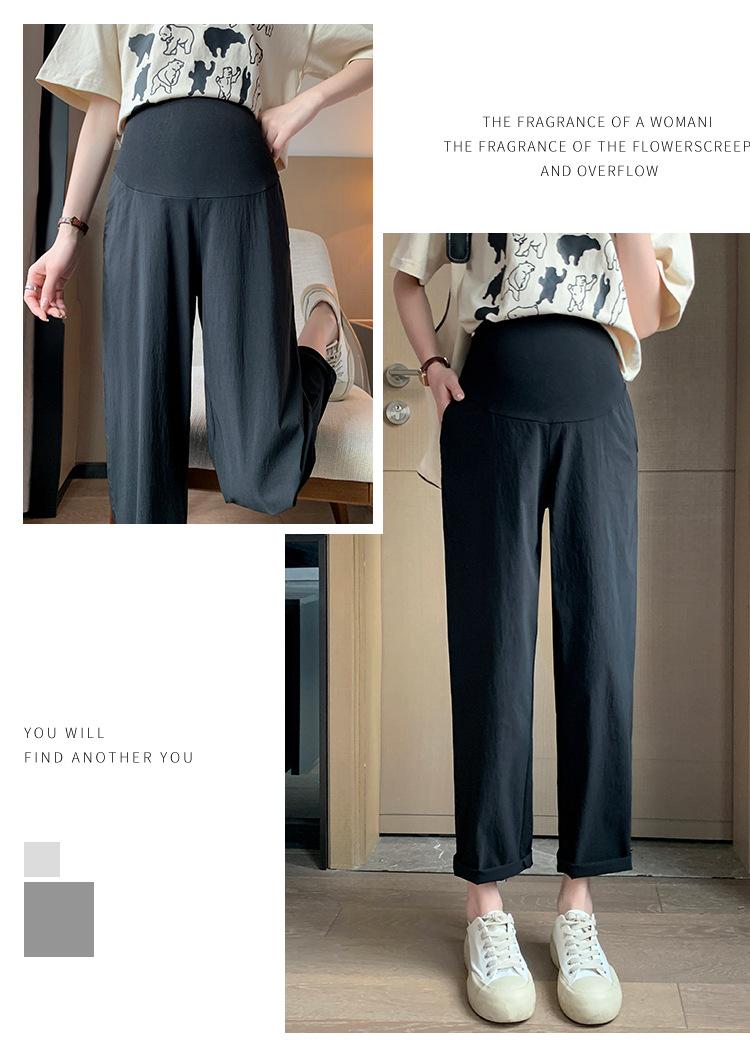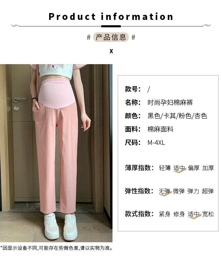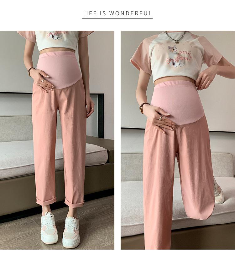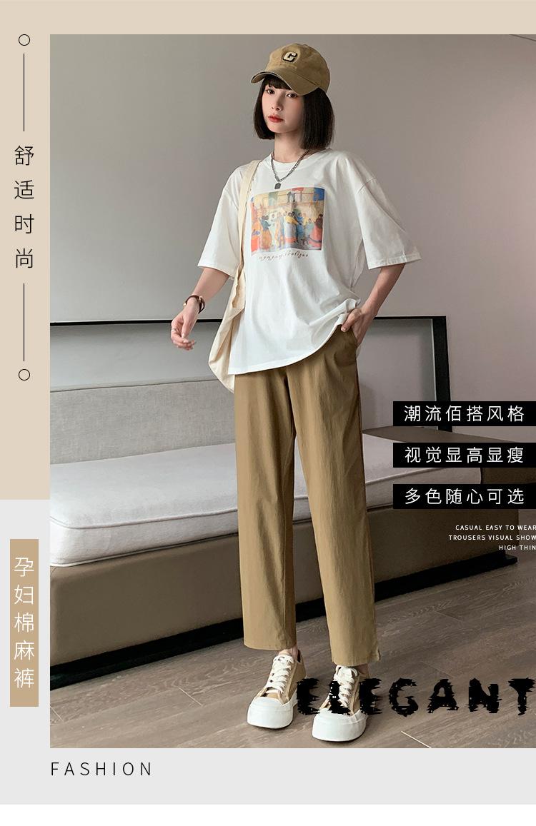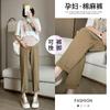 Pantalones de mujer embarazada, verano 2024, nuevos pantalones rectos elásticos de algodón y lino, ropa exterior, pantalones anchos y sueltos, pantalones hasta los tobillos, pantalones de mujer embarazada