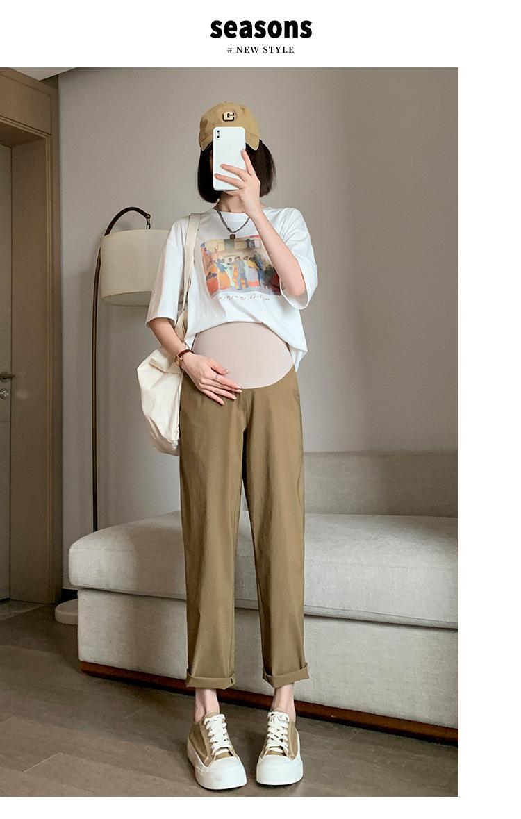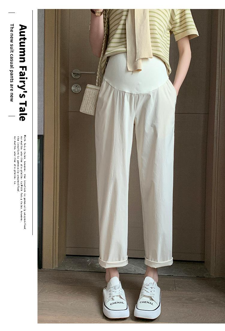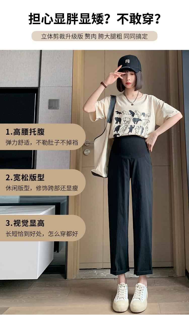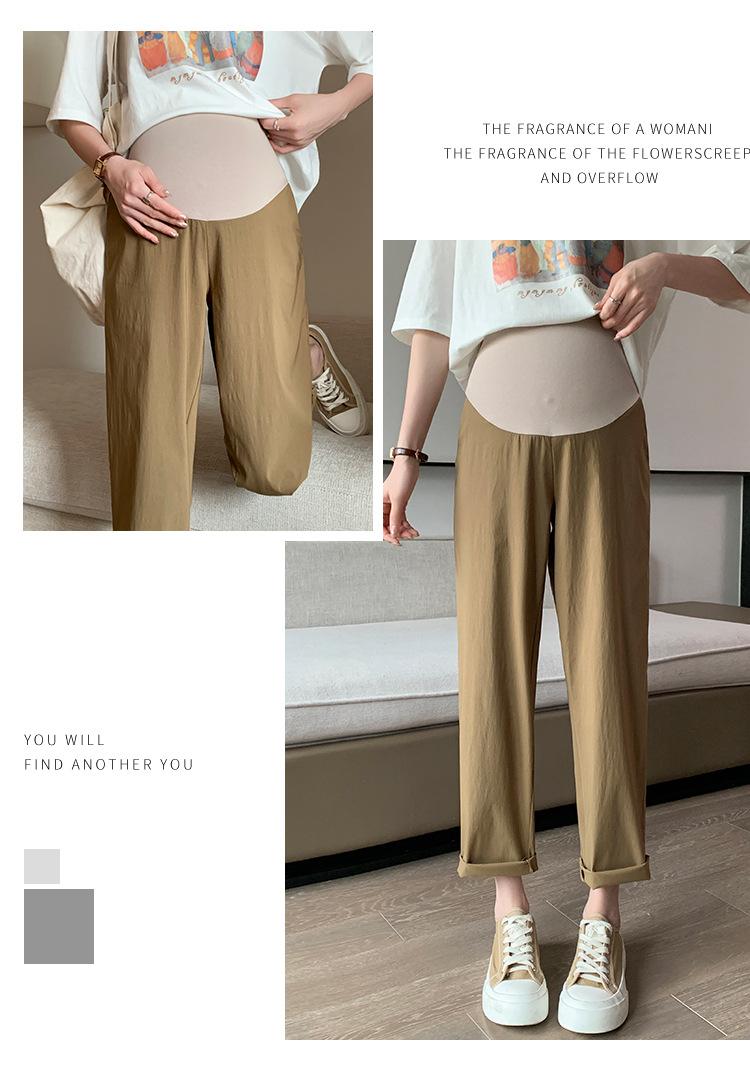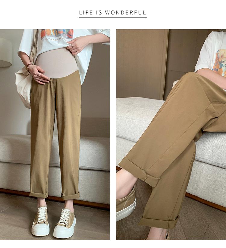 Pantalones de mujer embarazada, verano 2024, nuevos pantalones rectos elásticos de algodón y lino, ropa exterior, pantalones anchos y sueltos, pantalones hasta los tobillos, pantalones de mujer embarazada