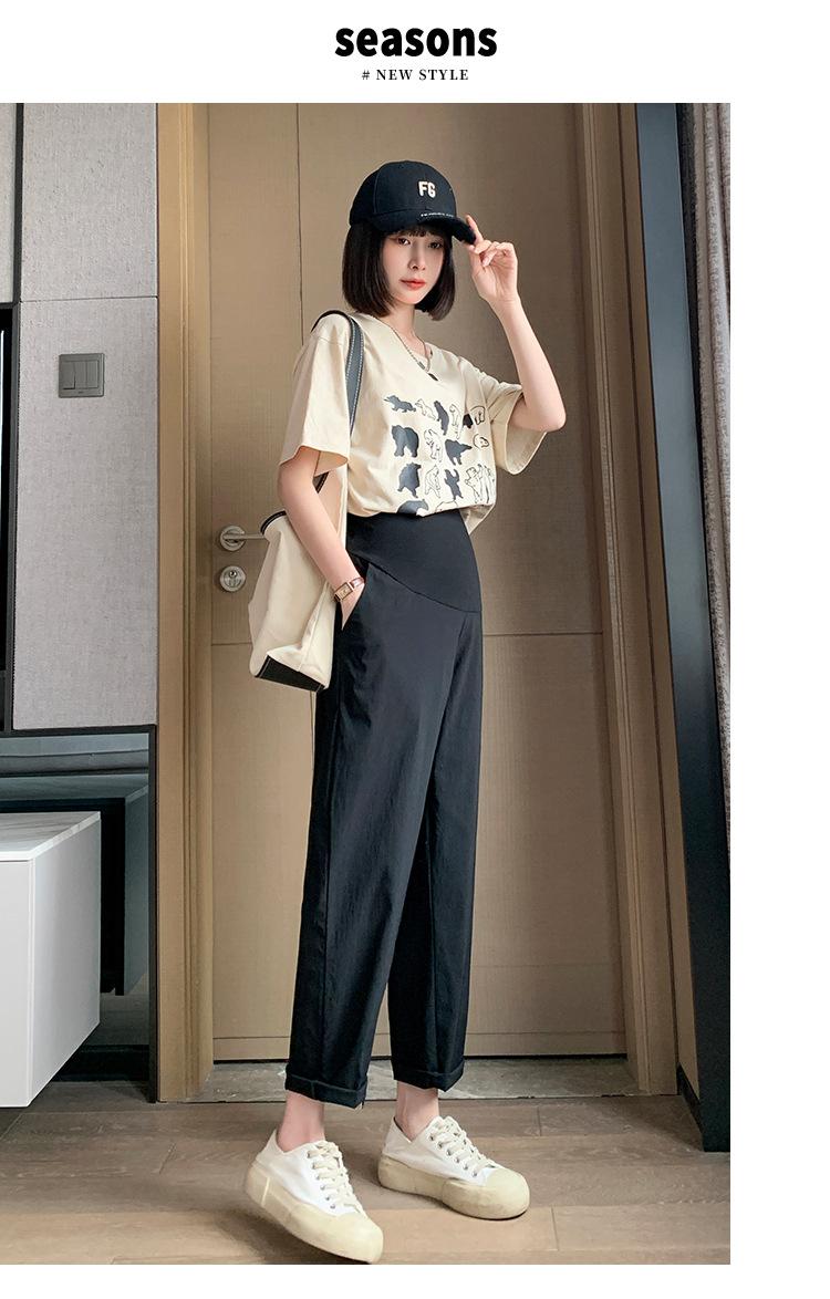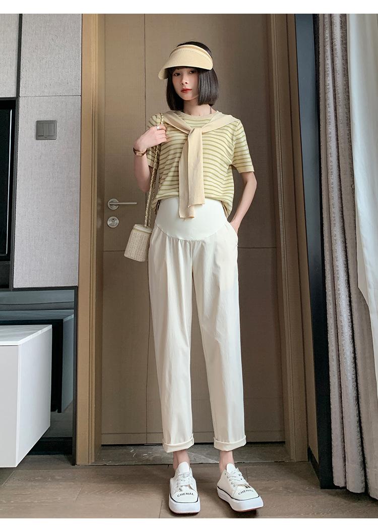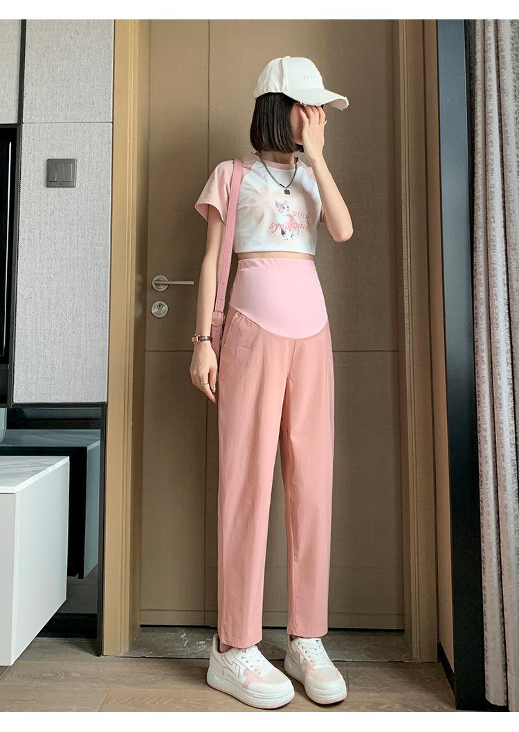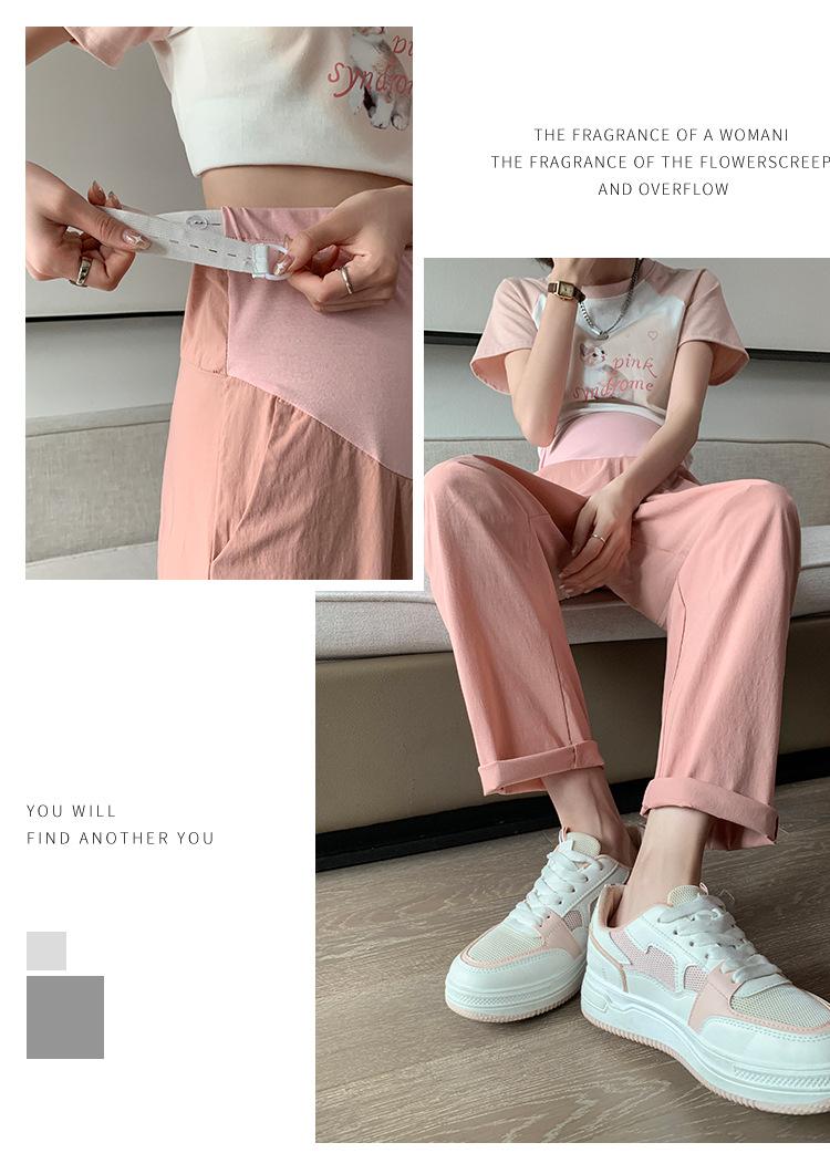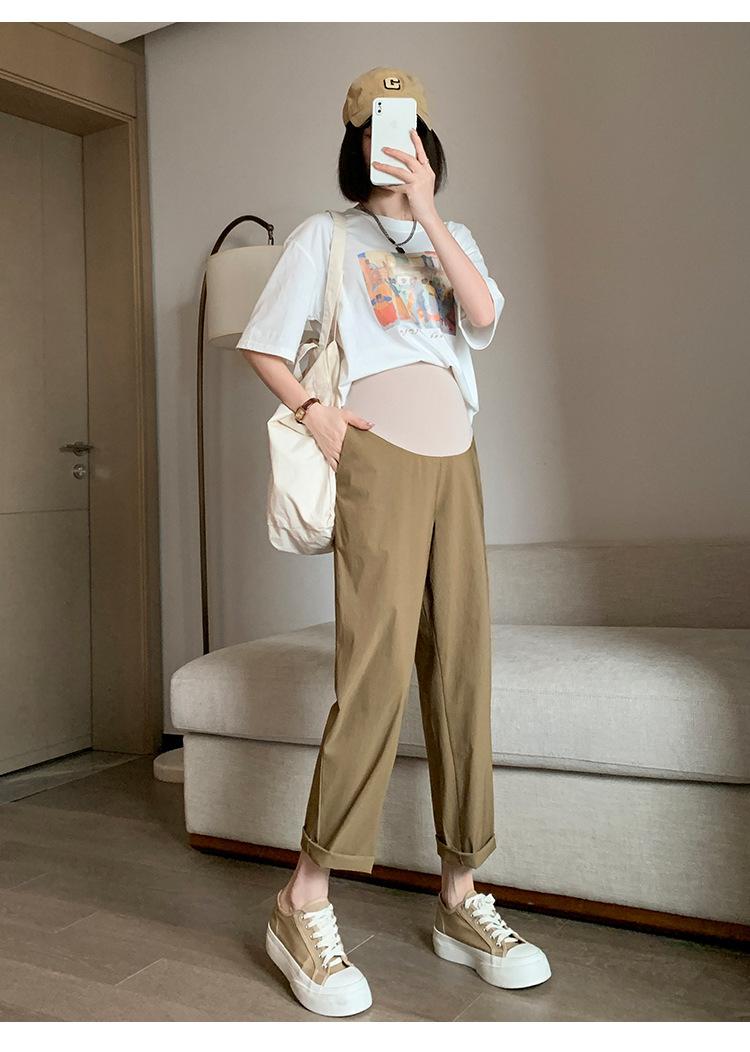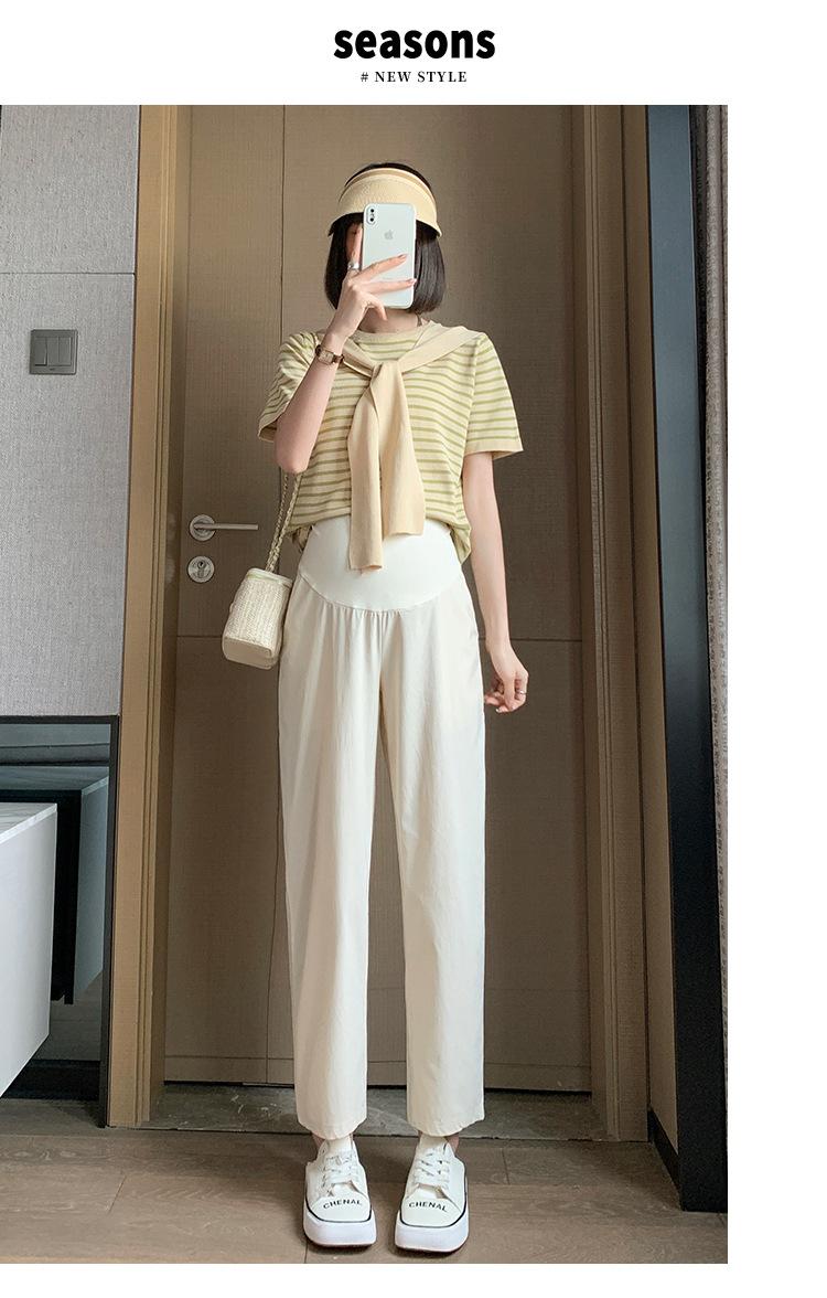 Pantalones de mujer embarazada, verano 2024, nuevos pantalones rectos elásticos de algodón y lino, ropa exterior, pantalones anchos y sueltos, pantalones hasta los tobillos, pantalones de mujer embarazada