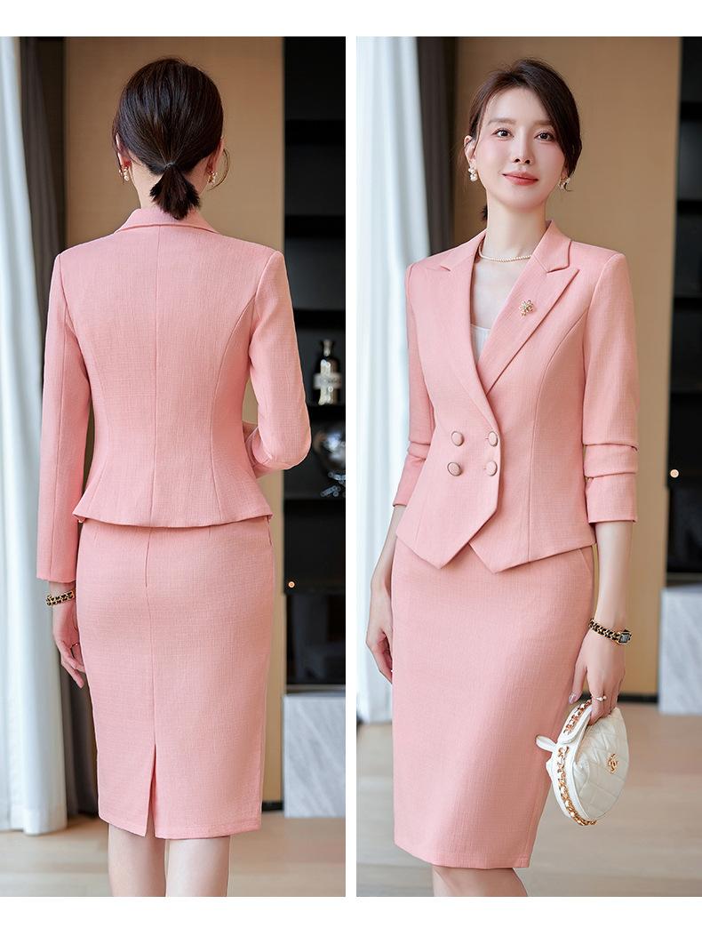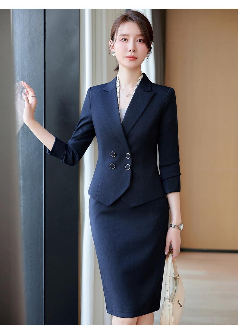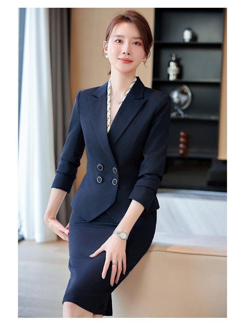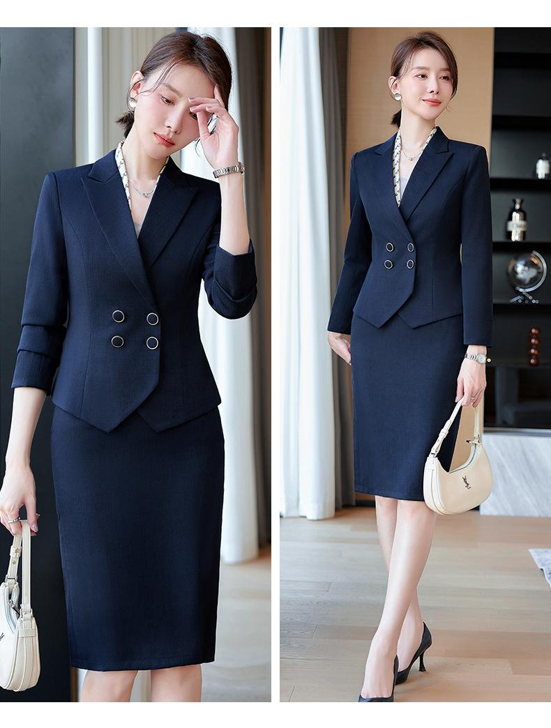 2024 Primavera y otoño nuevo azul manga larga profesional traje pequeño cuello chaqueta mujer falda traje de dos piezas moda elegante