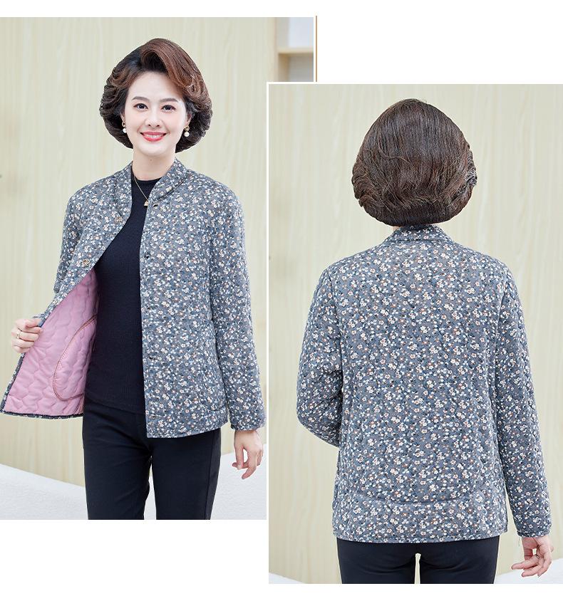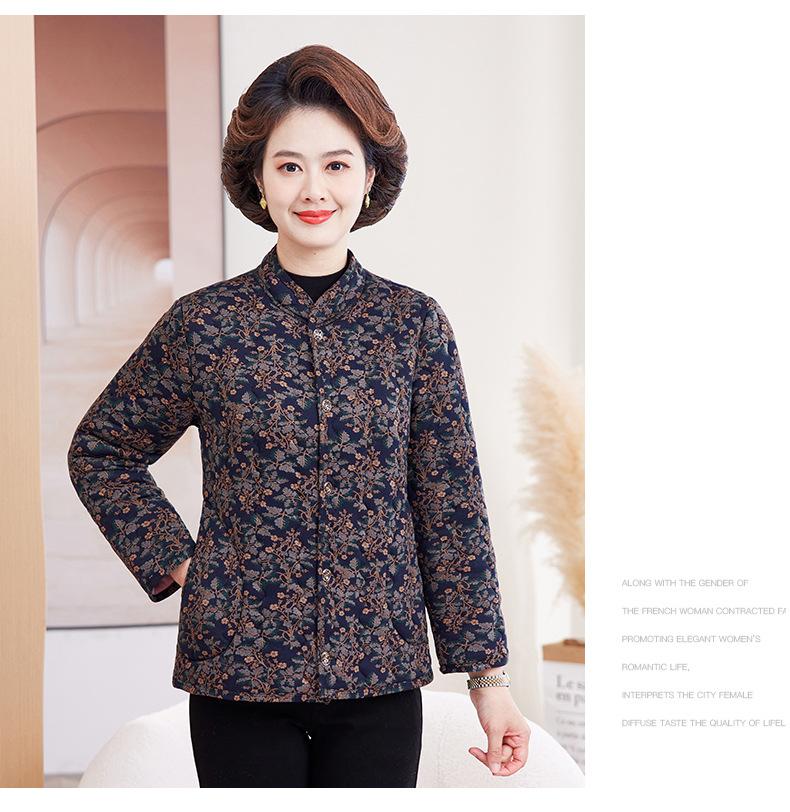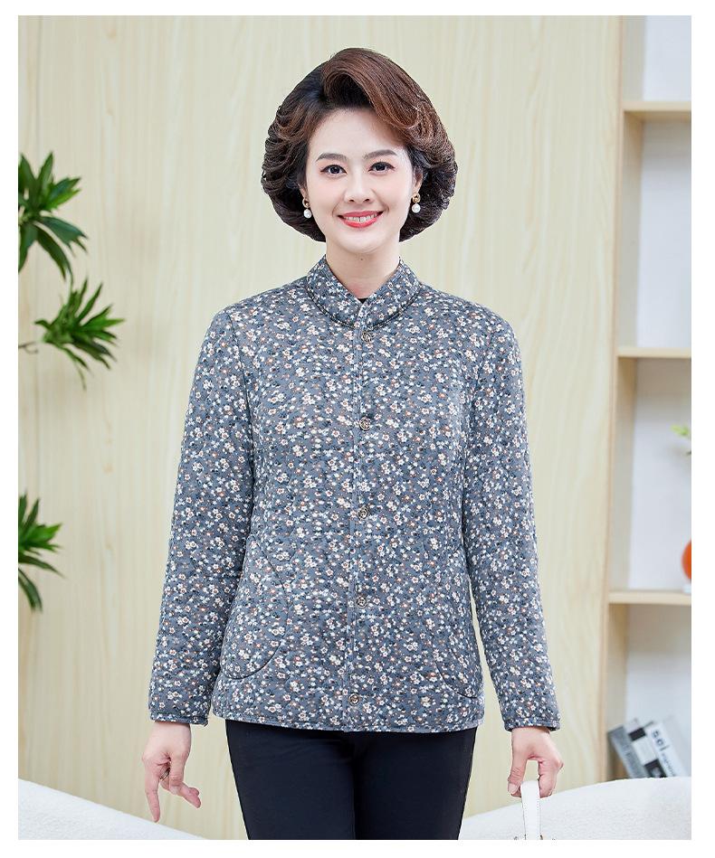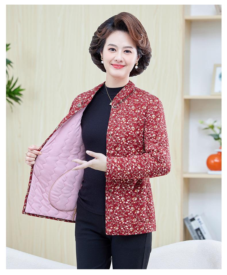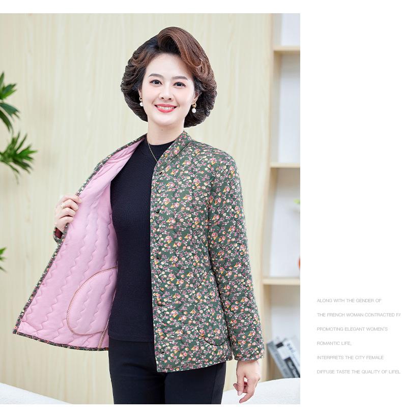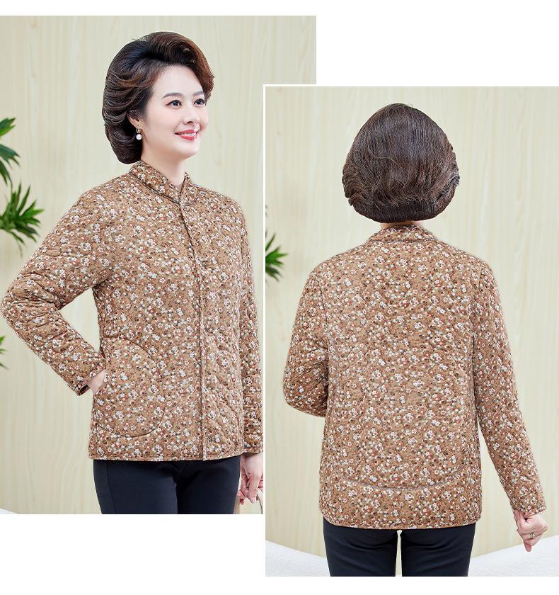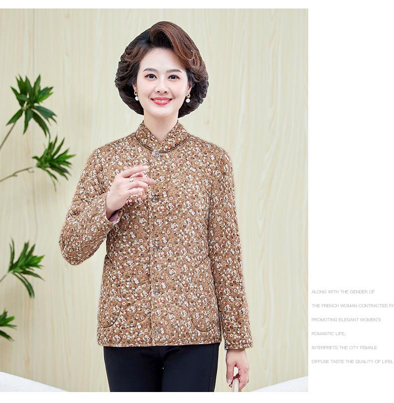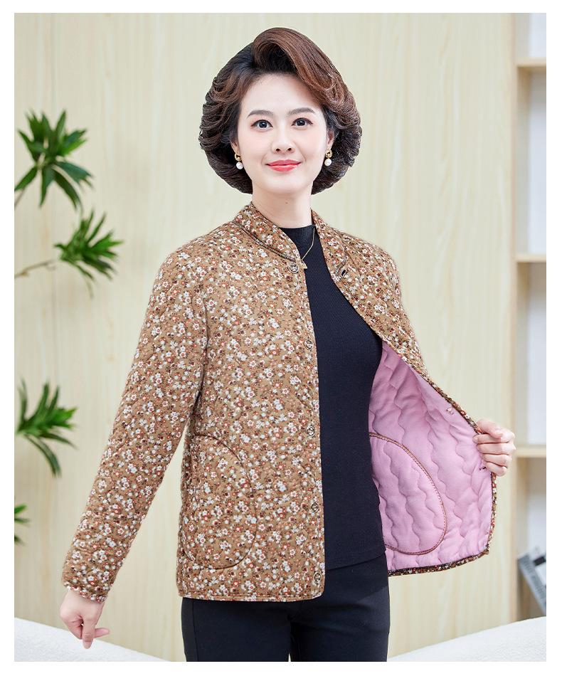 Chaqueta acolchada de algodón con estampado floral de camello para madres de mediana edad y mayores, chaqueta acolchada de algodón cálida con forro polar de invierno para mujeres mayores que usan una chaqueta acolchada de algodón.