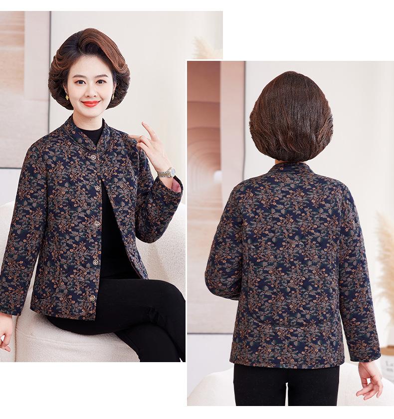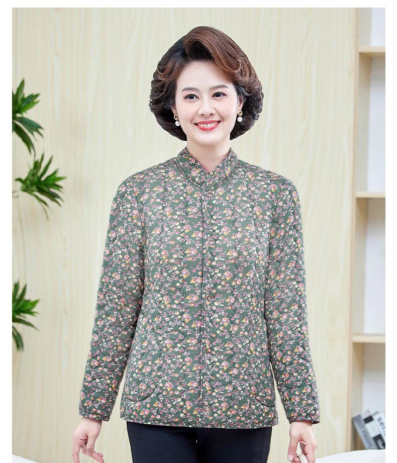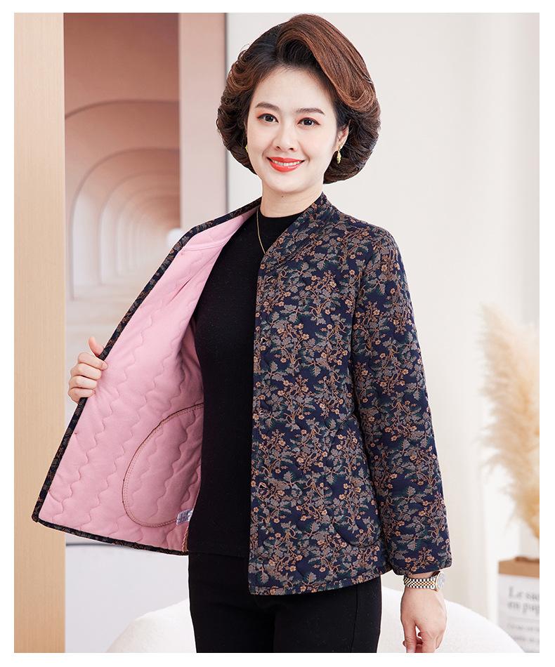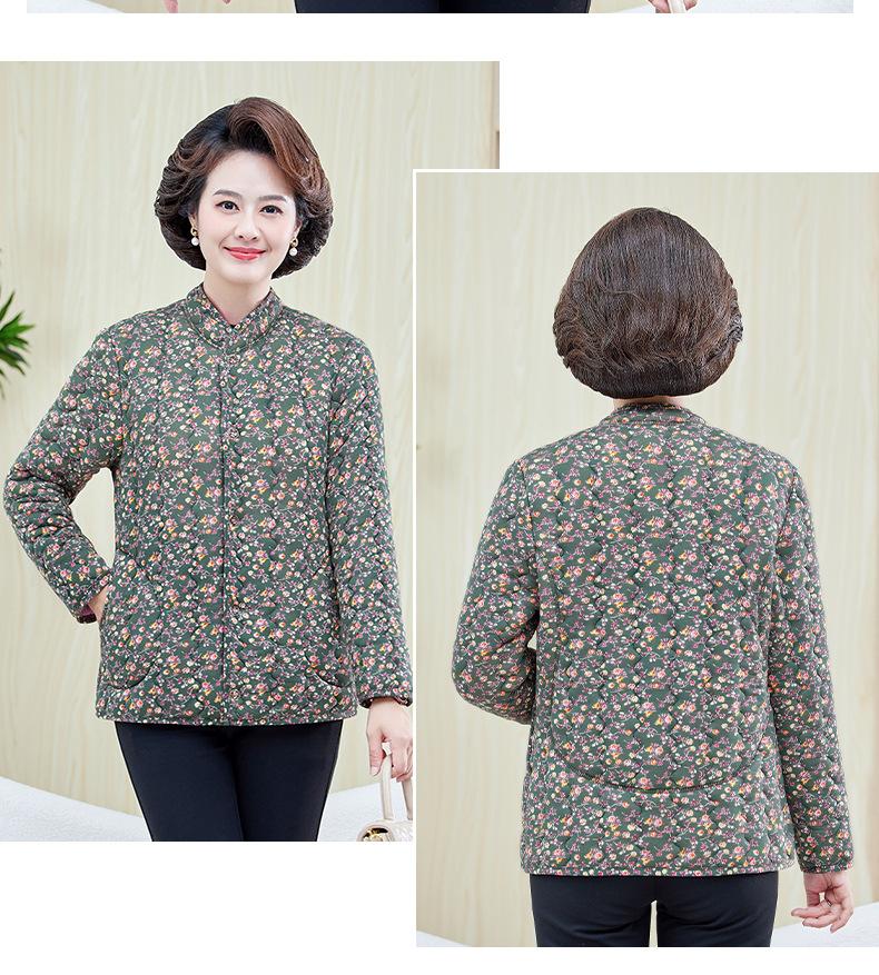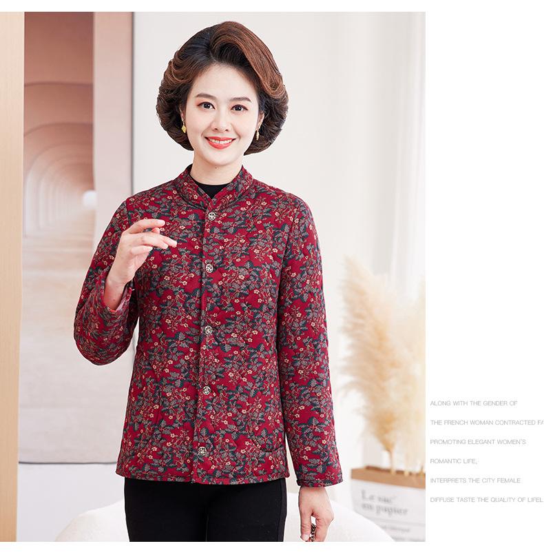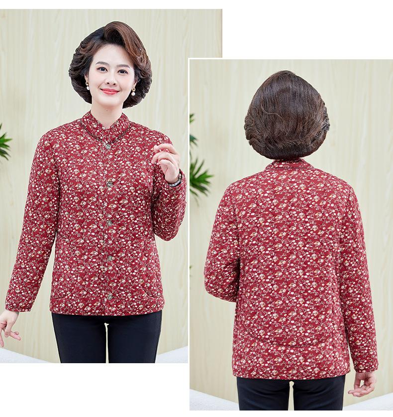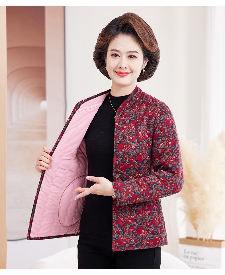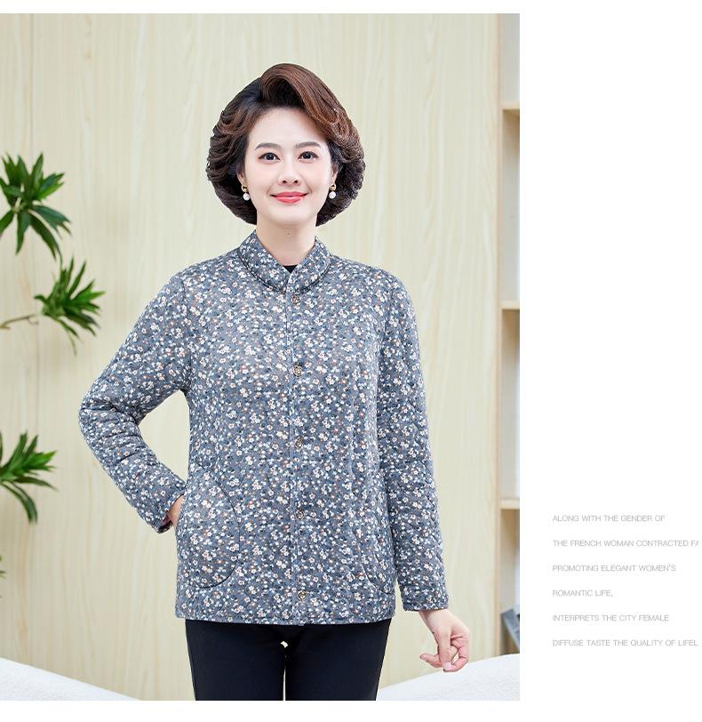 Chaqueta acolchada de algodón con estampado floral de camello para madres de mediana edad y mayores, chaqueta acolchada de algodón cálida con forro polar de invierno para mujeres mayores que usan una chaqueta acolchada de algodón.