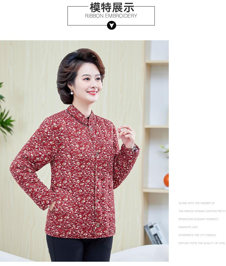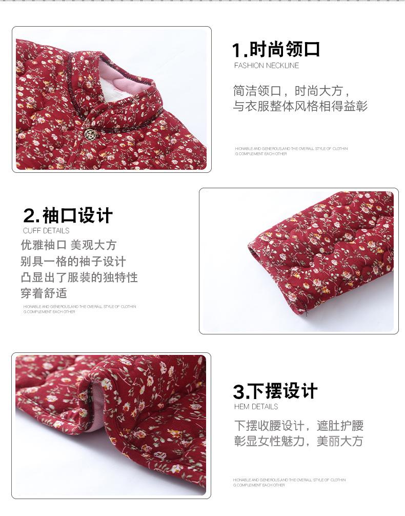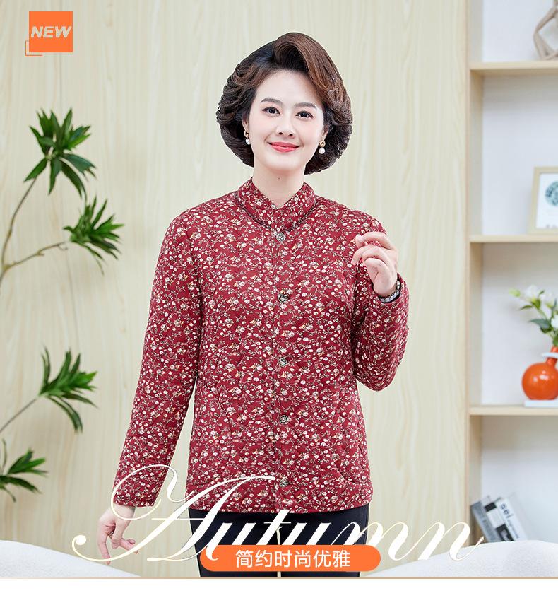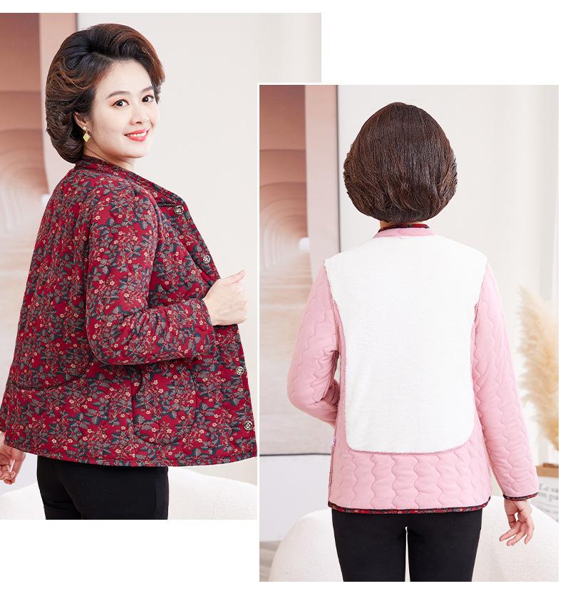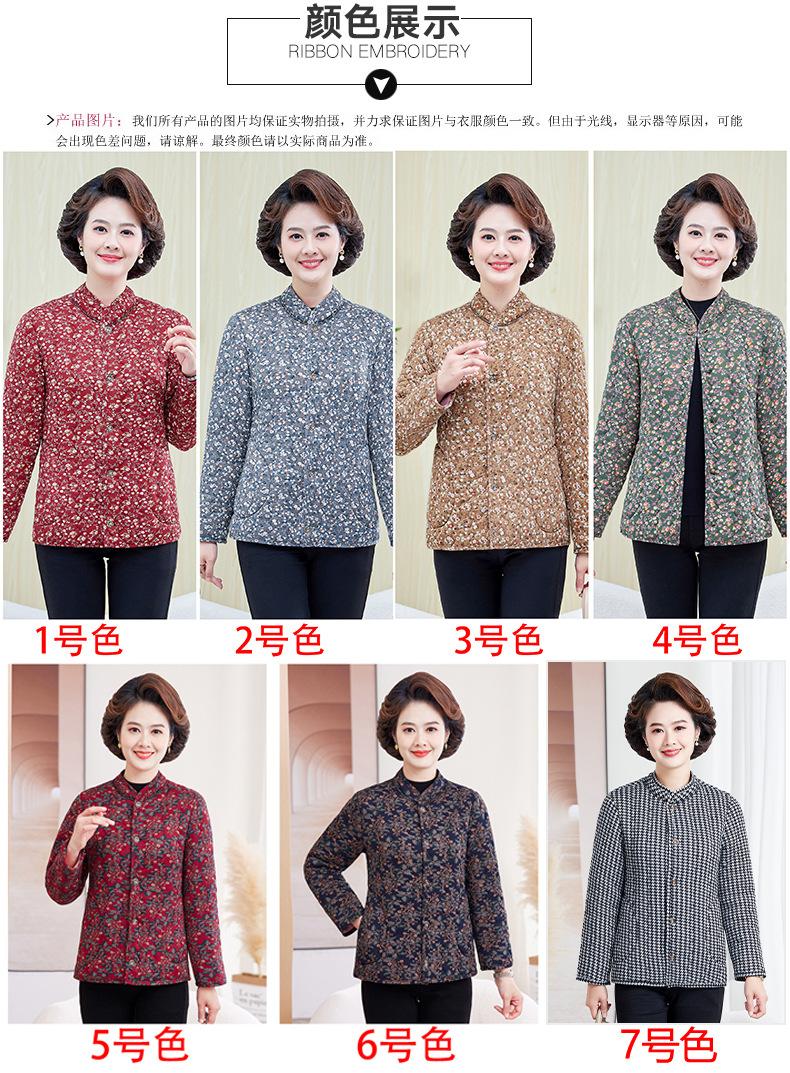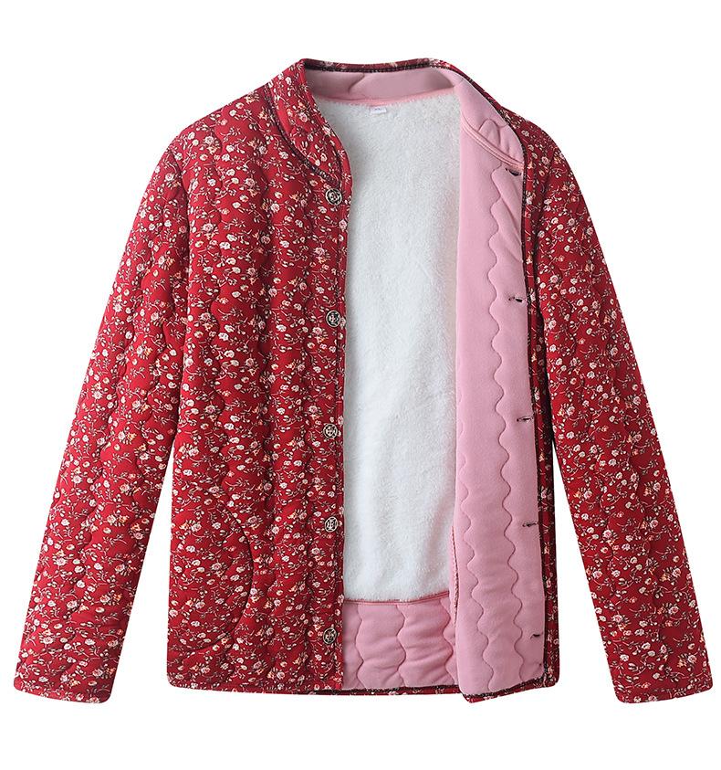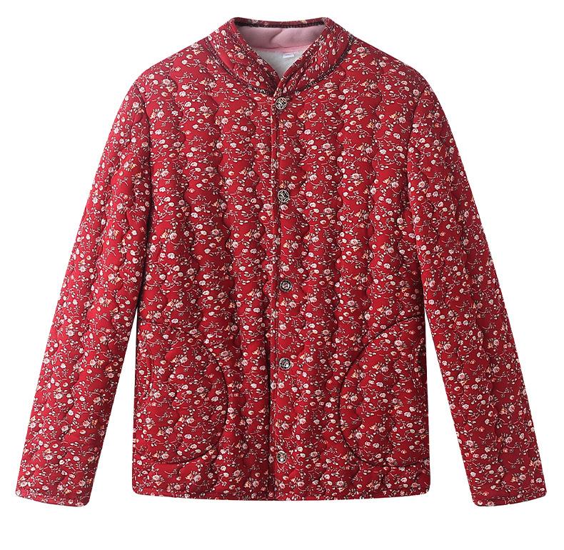 Chaqueta acolchada de algodón con estampado floral de camello para madres de mediana edad y mayores, chaqueta acolchada de algodón cálida con forro polar de invierno para mujeres mayores que usan una chaqueta acolchada de algodón.