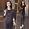 Traje deportivo adelgazante de talla grande para mujer, primavera y otoño 2025, nueva moda informal de tres piezas, ropa de correr holgada de marca de moda