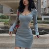 Estilo Europeo y Americano Vestido Nuevo de Otoño para Mujer Sexy Hueco con Cordones Ajustado con Abertura Manga Larga al Mayoreo