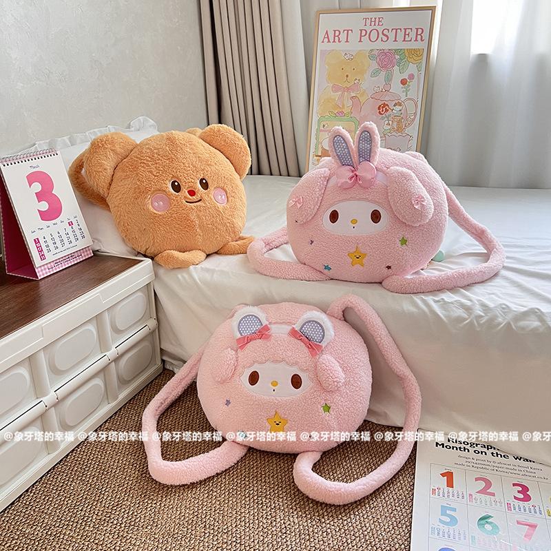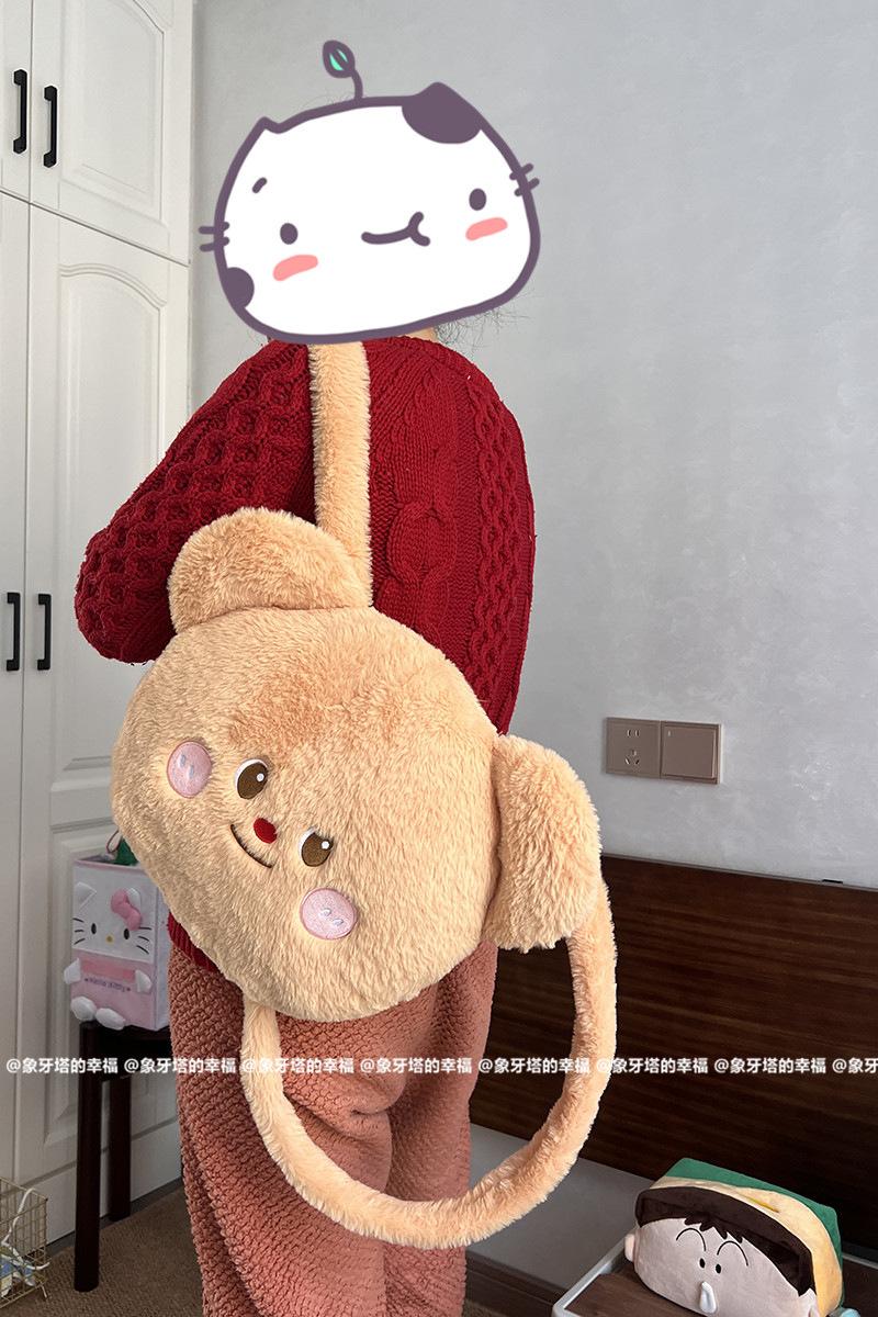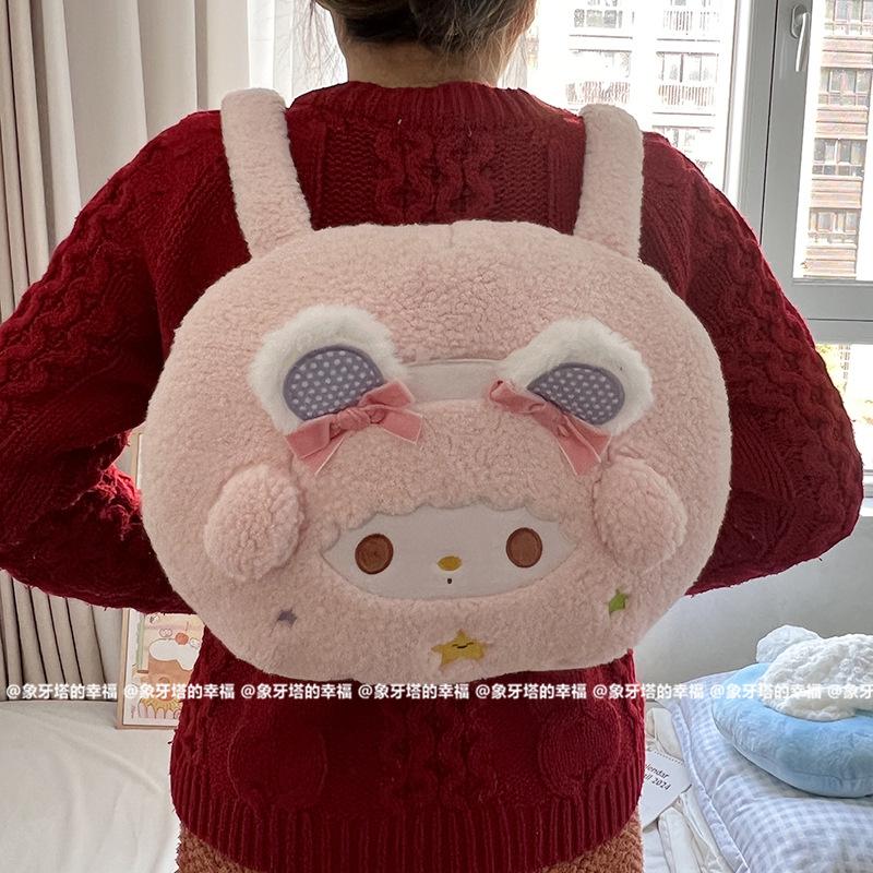 Mochila Casual para Estudiante con Lindo Peluche de Dibujos Animados Redondo de Cabeza Grande Oveja Merlot Oso Bolsa de Viaje para Muñeca