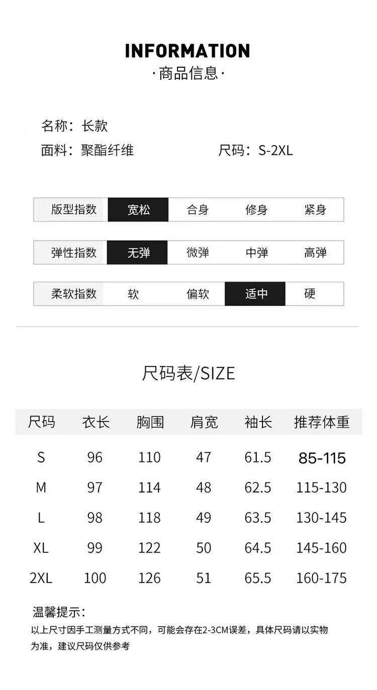 S 85-115, M 115-130, L 130-145, XL 145-160, 2XL 160-175
