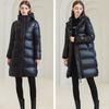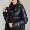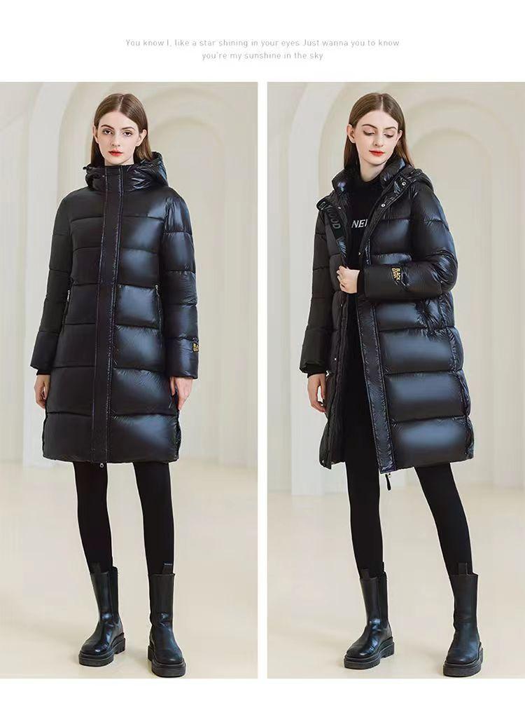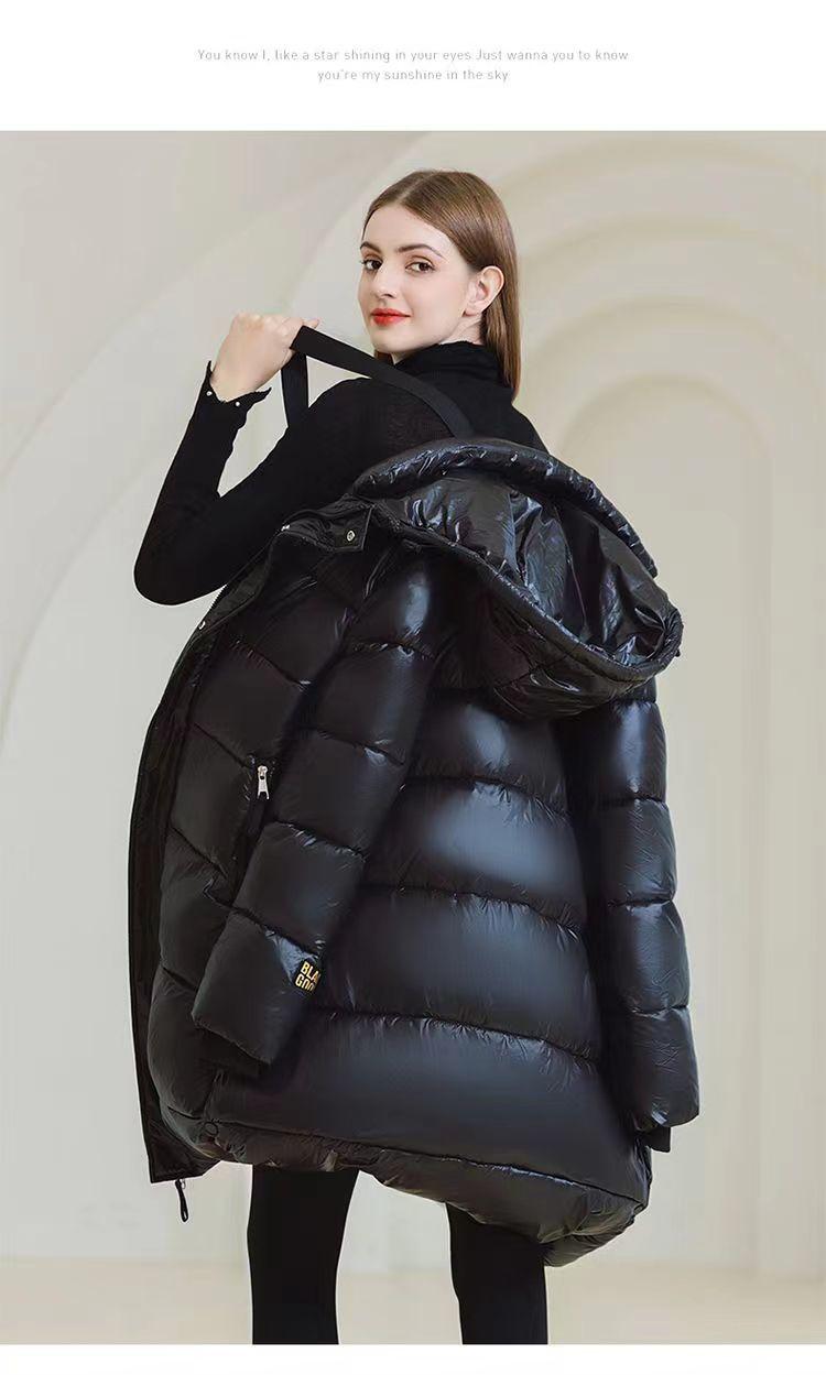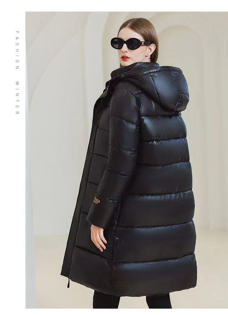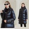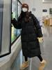 Chaqueta acolchada de algodón nueva, de longitud media hasta la rodilla, estilo coreano 2024, con capucha gruesa, abrigo cálido negro y dorado, chaqueta acolchada de algodón