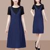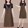 Moda de Verano 2021 Casual Falso Dos Piezas Tirantes Manga Corta Talla Grande Vestido de Mujer AliExpress Vestido Midi Trendy