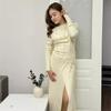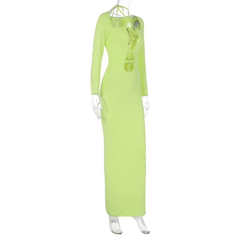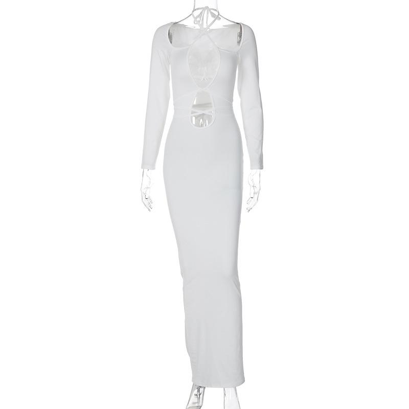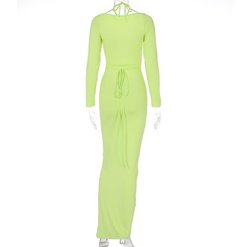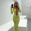 Vestido de manga larga ajustado con encaje y corte sexy para mujer, otoño e invierno 2023, con nueva moda transfronteriza europea y americana de Amazon