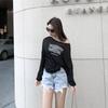 2023 versión coreana del nuevo suéter holgado con estampado de letras a juego de colores para otoño e invierno, diseño de cuello redondo, mujeres elegantes