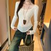 Camiseta básica blanca para mujer, otoño 2023, nueva camiseta de manga larga con diseño de hilo que combina con todo.