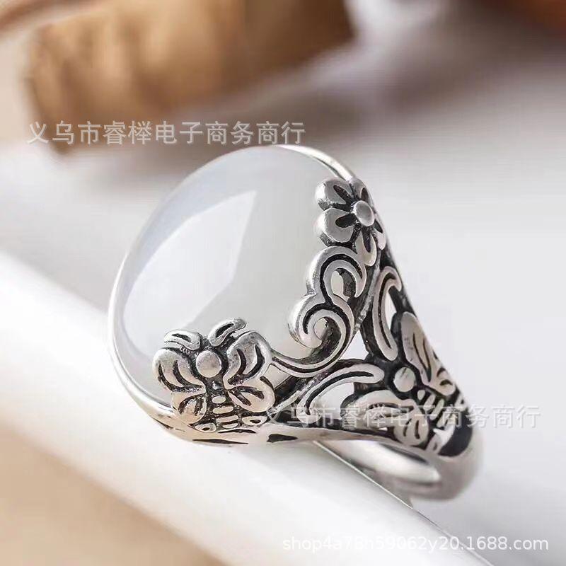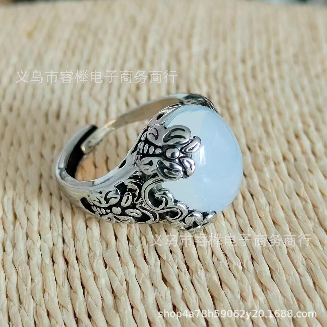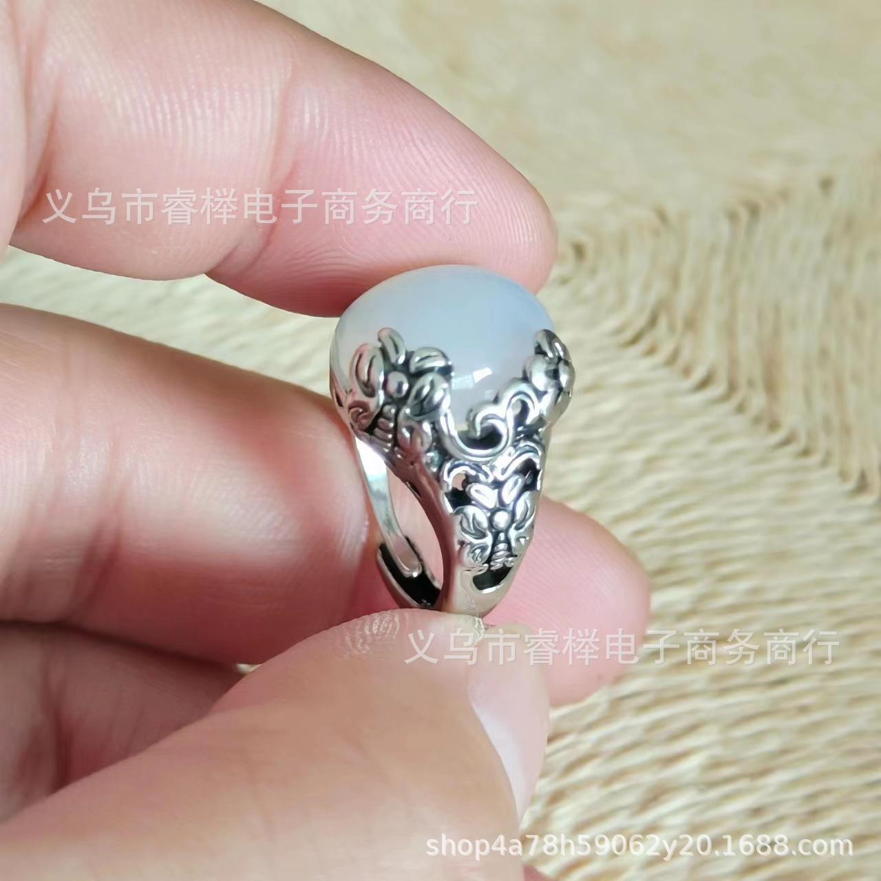 Personalidad simple moda europea y americana imitación ágata Lingteng anillo de oro para hombre calcedonia roja anillo de esmeralda anillo al por mayor