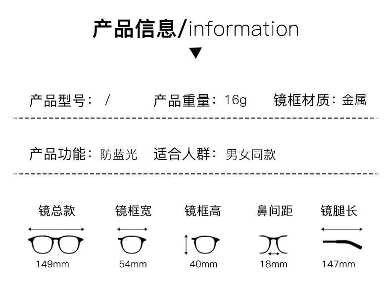 Gafas de Estilo Celebridad de Marco Cuadrado Liso Retro Futuro con Luz Anti-Azul para Hombres y Mujeres con el Mismo Estilo para Miopía Se Pueden Combinar con la Versión Coreana