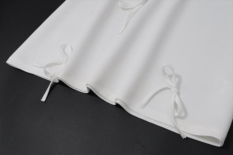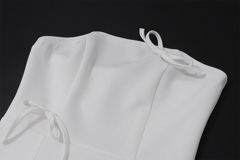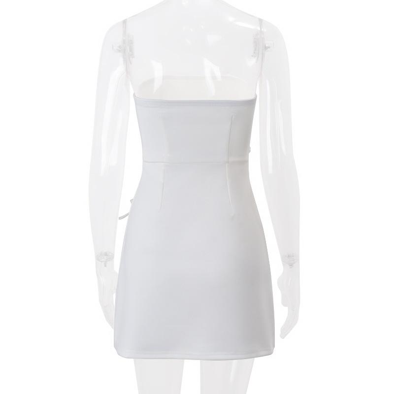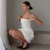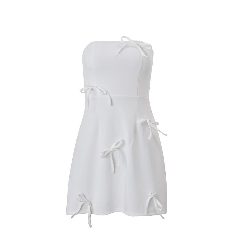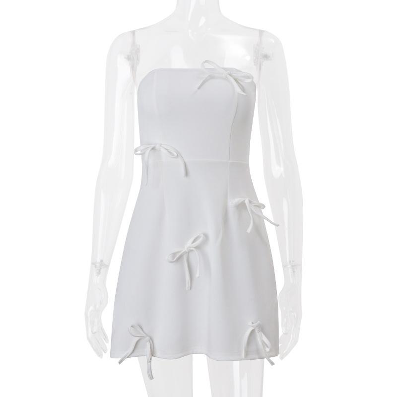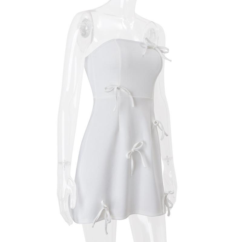 Ropa de mujer de estilo europeo y americano, primavera 2025, nuevo vestido sexy sin espalda, sin tirantes, elegante, con lazo, color sólido y sencillo para mujer