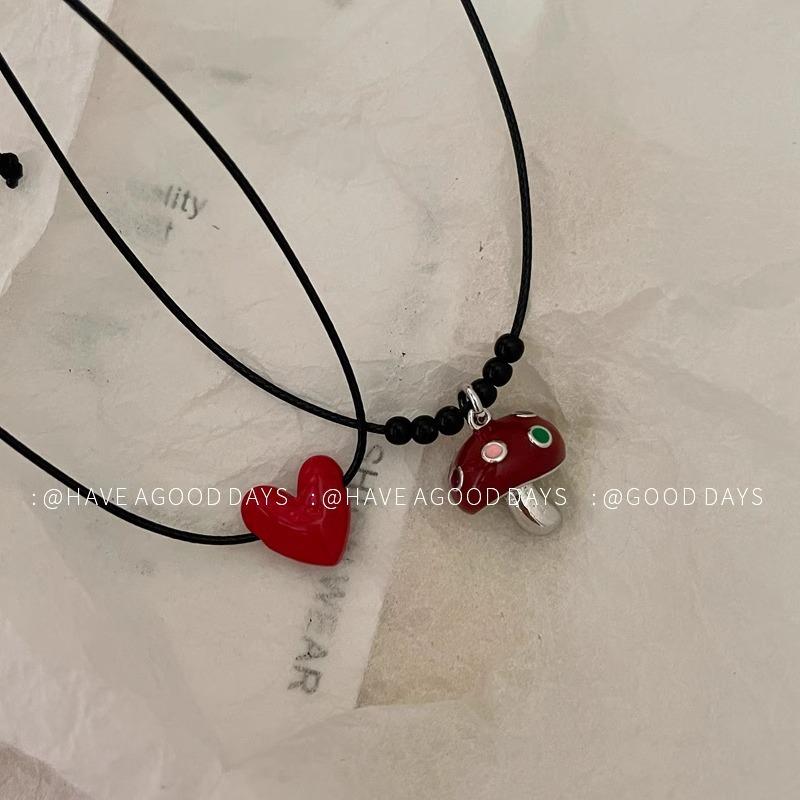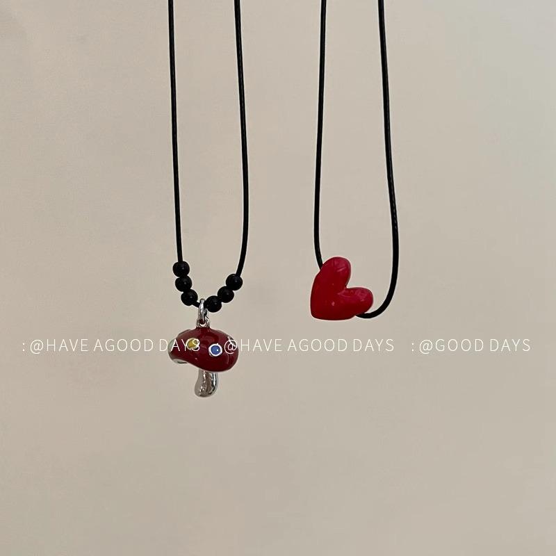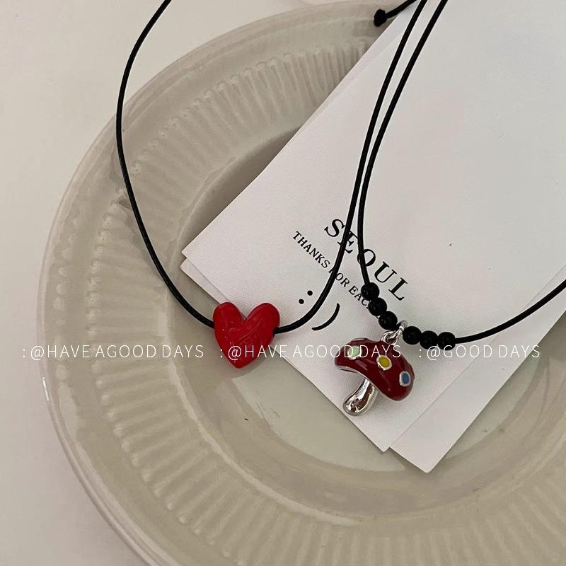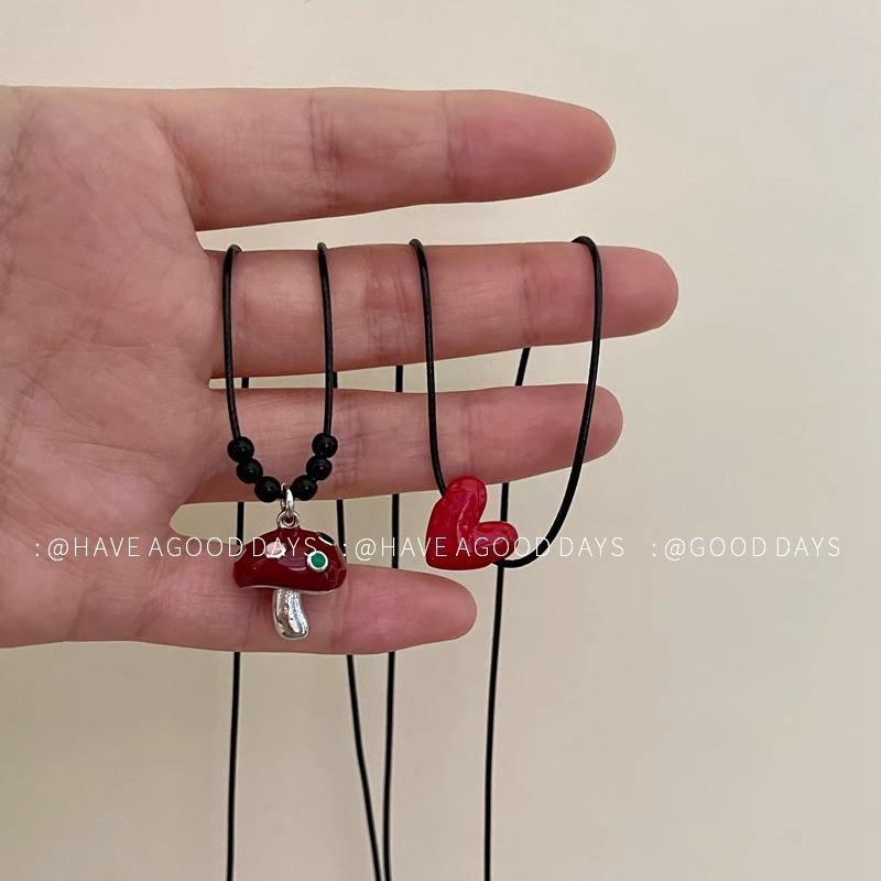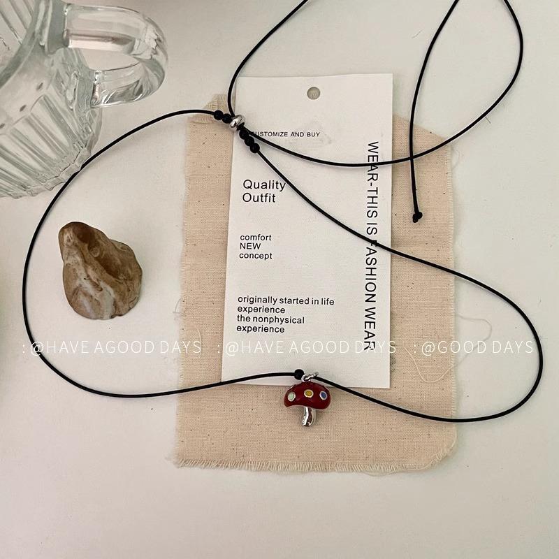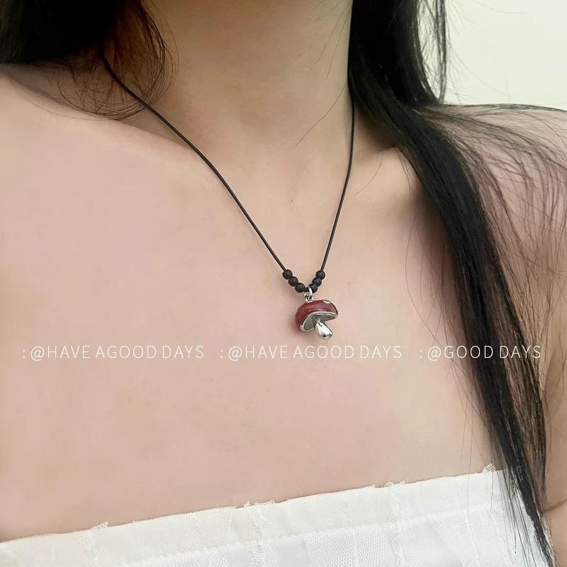 Collar con cordón ajustable con colgante de hongo con aceite rojo Design Sense, bonito y exquisito collar de moda para mujer, cadena de clavícula combinable.