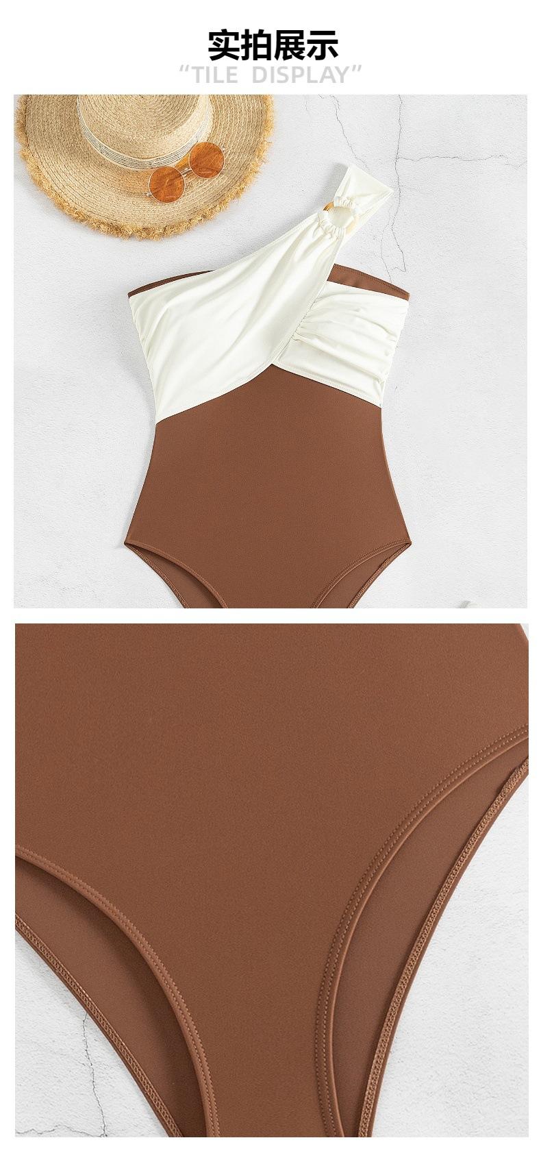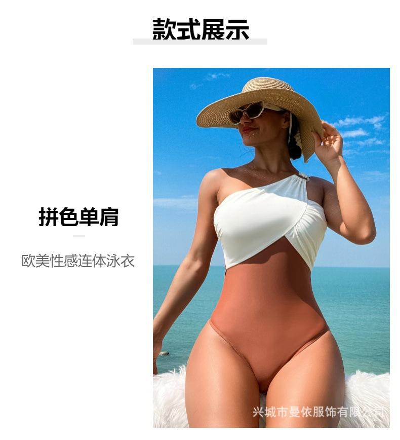 2024 Europa y Estados Unidos transfronterizo un hombro color damas traje de baño de una pieza sexy conservador Amazon exterior traje de baño para mujer al por mayor