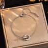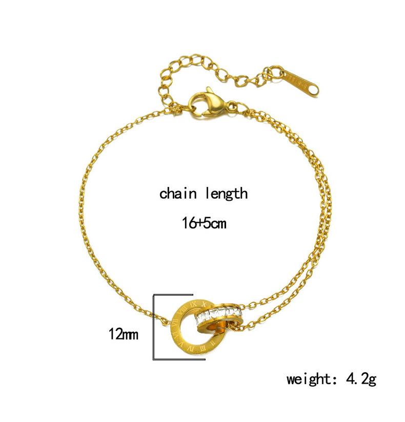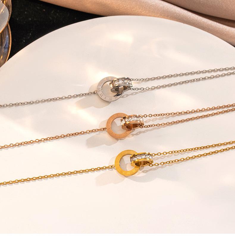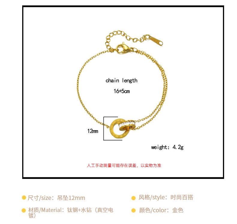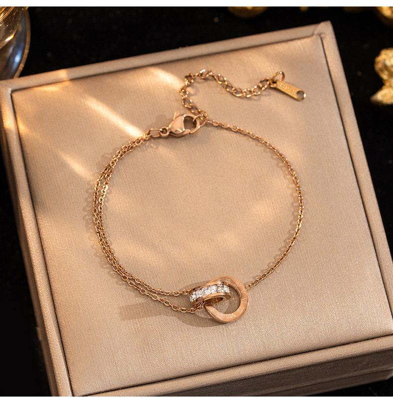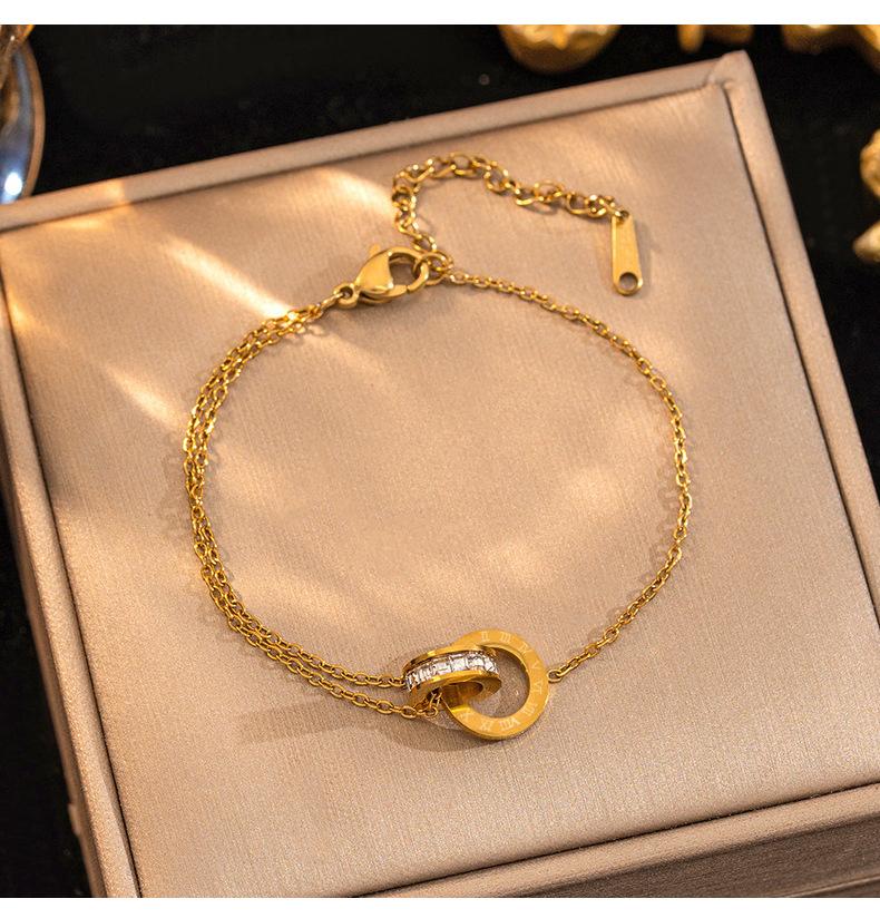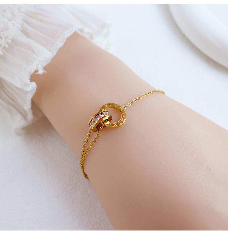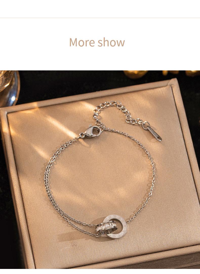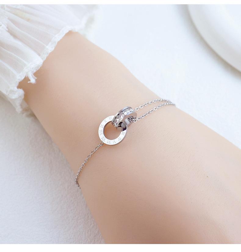 Pulsera de acero de titanio simple que no se desvanece con doble anillo de números romanos para mujer, temperamento, incrustada de diamantes, lujo ligero, comodín, joyería de celebridad de Internet al por mayor