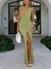 2025 Nuevo Vestido de Verano Elegante de Moda Transfronteriza Europea y Americana Color Sólido Cuello Dividido Sin Espalda Vestido Mujer