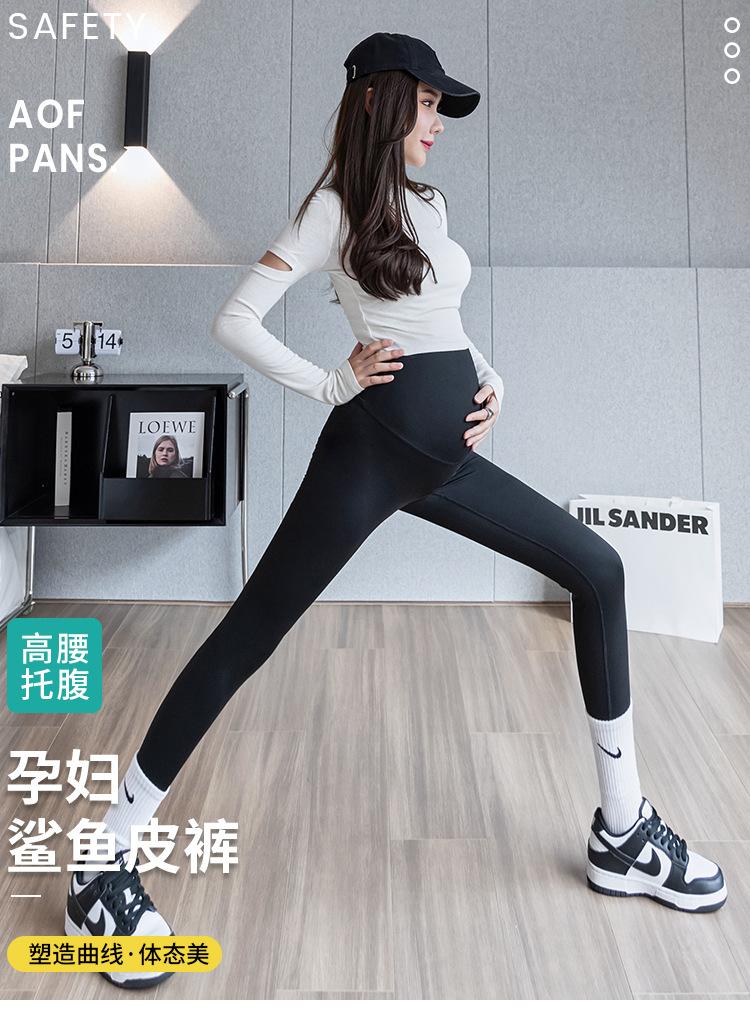 Pantalones de mujer embarazada primavera y otoño nuevos leggings de piel de tiburón ropa exterior cintura alta vientre teñido cadera Barbie pantalones de yoga pantalones de mujer embarazada