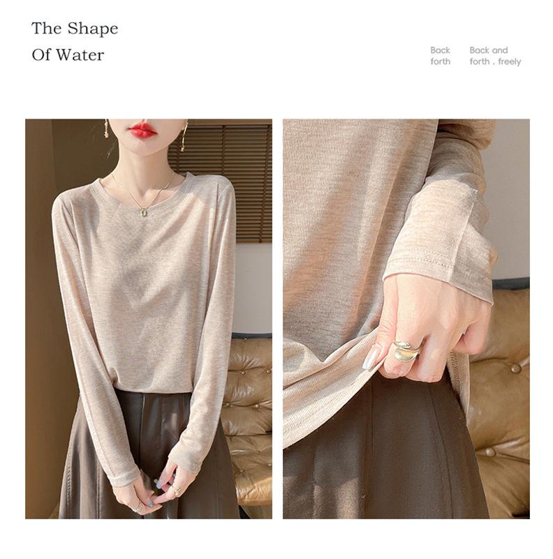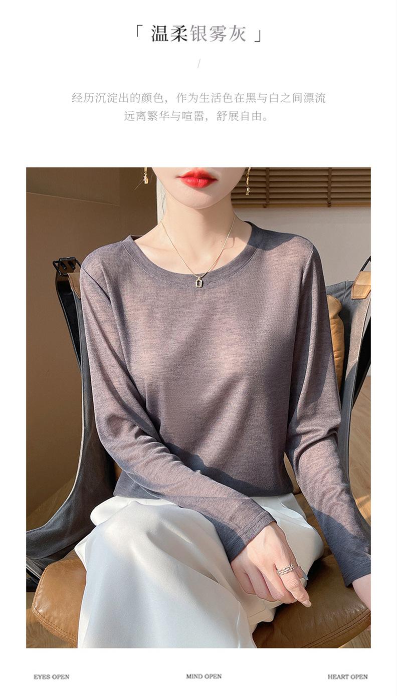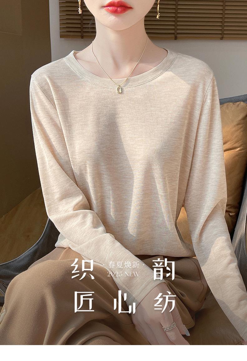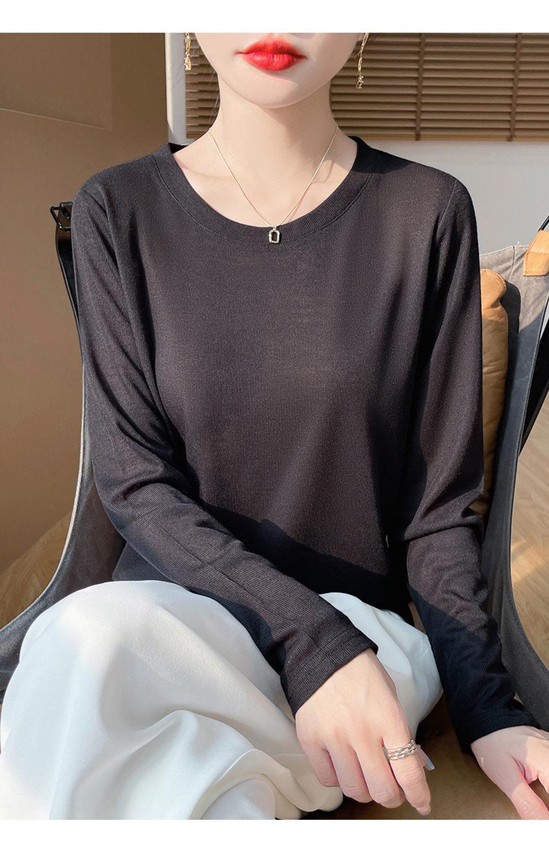 Suéter de lana de nueva generación para primavera y verano de 2025, cuello redondo, manga larga, temperamento Joker, camisa de base fina, venta al por mayor