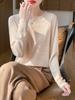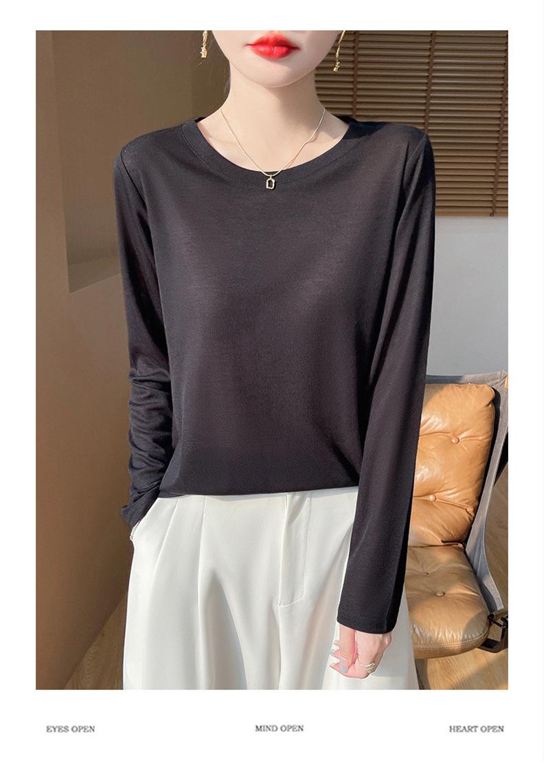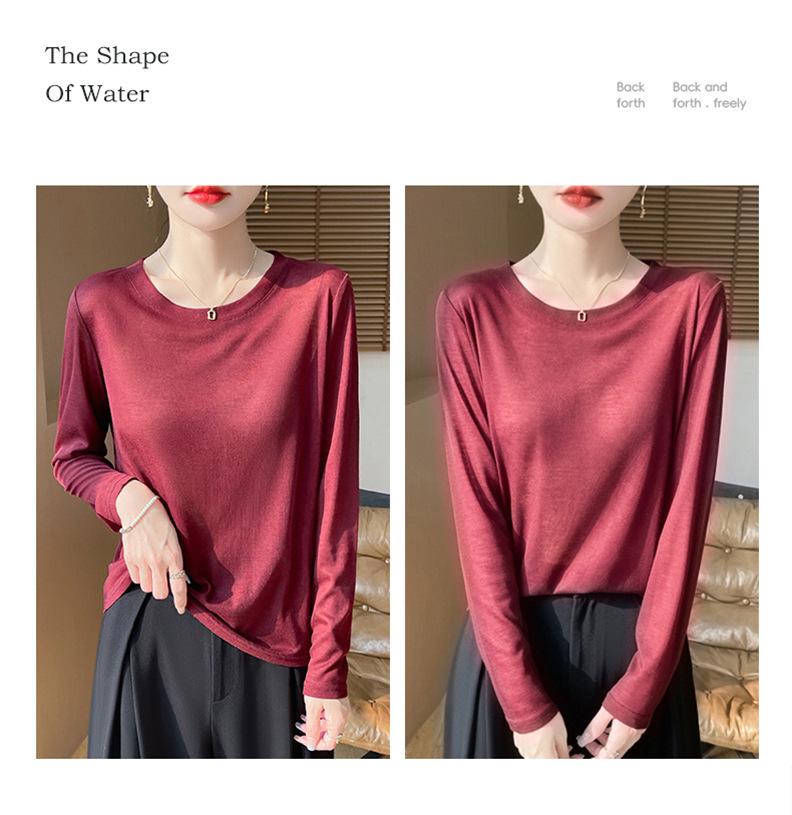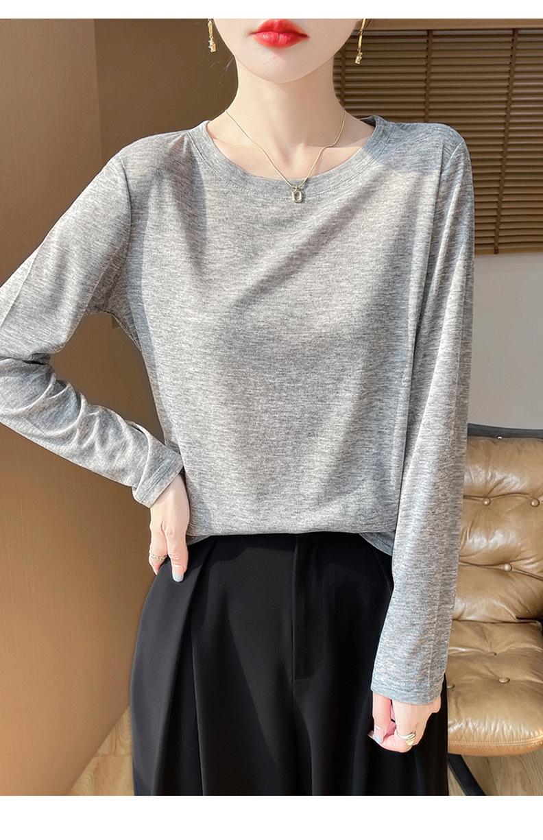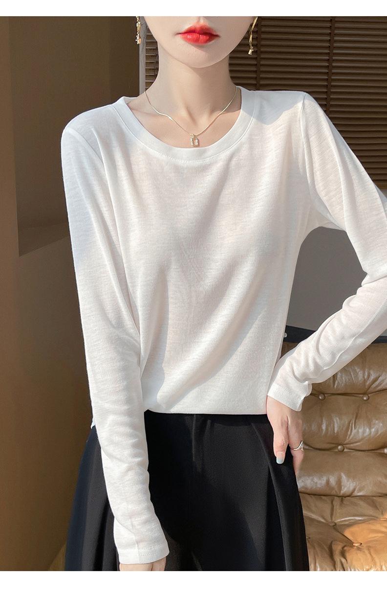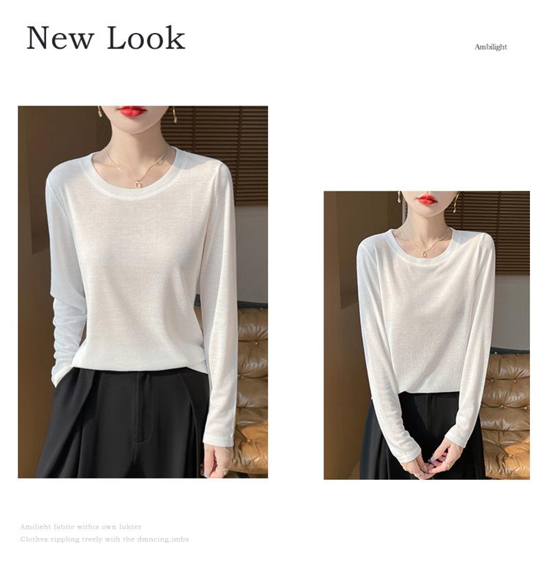 Suéter de lana de nueva generación para primavera y verano de 2025, cuello redondo, manga larga, temperamento Joker, camisa de base fina, venta al por mayor